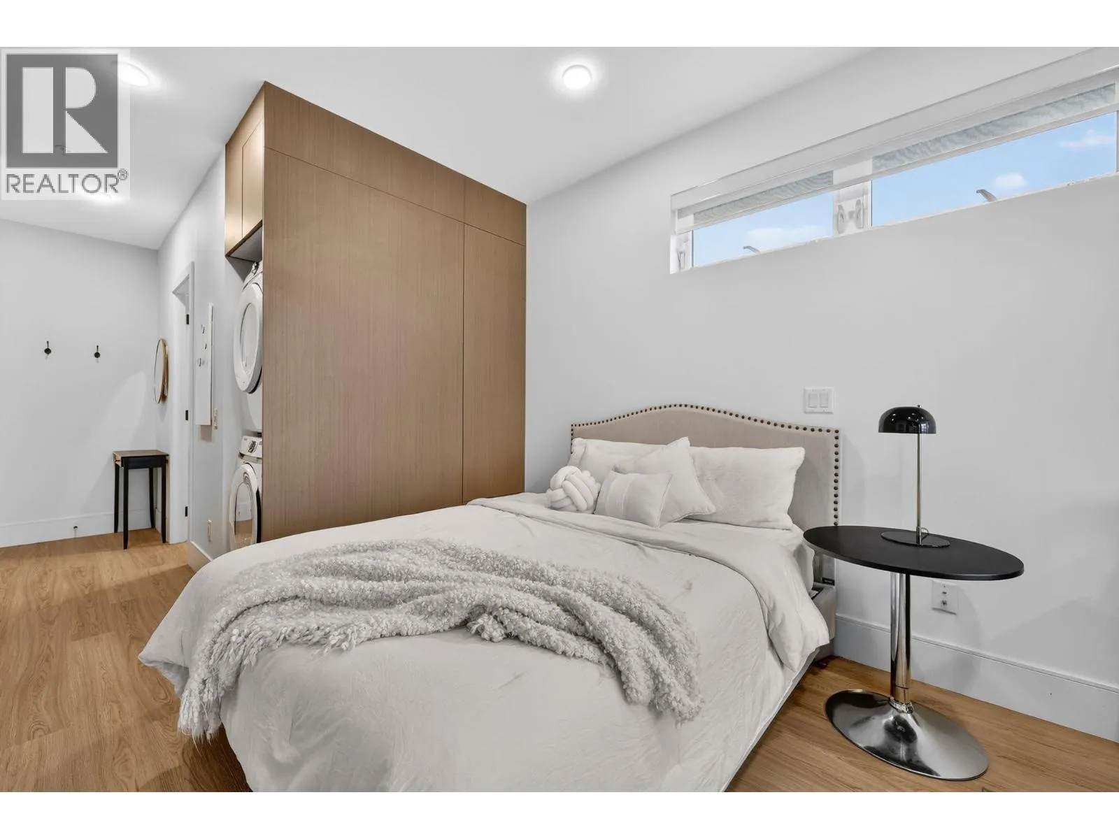 Fully furnished, No GST and vacant!! Welcome to this beautifully appointed fully furnished corner studio condo in one of the most sought-after locations in the Lower Missionâsteps from the college, hospital, beach, and lake. Surrounded by popular shops, restaurants, coffee spots, yoga studios, and everyday conveniences, this is urban lakeside living at its best. This bright and airy corner unit features a private patio and large windows that flood the space with natural light. The home is fully turnkey and fully furnished, making it ideal for first-time buyers, investors, students, or professionals. Included are a 42 inch smart TV, bed and mattress with designer bedding, couch, table and chairs, coffee table, rug, and even a vacuum and most kitchenwareâjust bring your suitcase! The unit offers full-size appliances, including a fridge, stove, microwave, and dishwasher, plus in-suite laundry for everyday convenience. A dedicated parking stall located right next to the elevator adds exceptional ease and accessibility. This pet-friendly building allows up to two medium-sized dogs, two cats, or one of each, and also has an outdoor common lounge area. With NO GST and pricing below assessed value, this move-in-ready condo represents outstanding value in an unbeatable Lower Mission location. (id:27476)