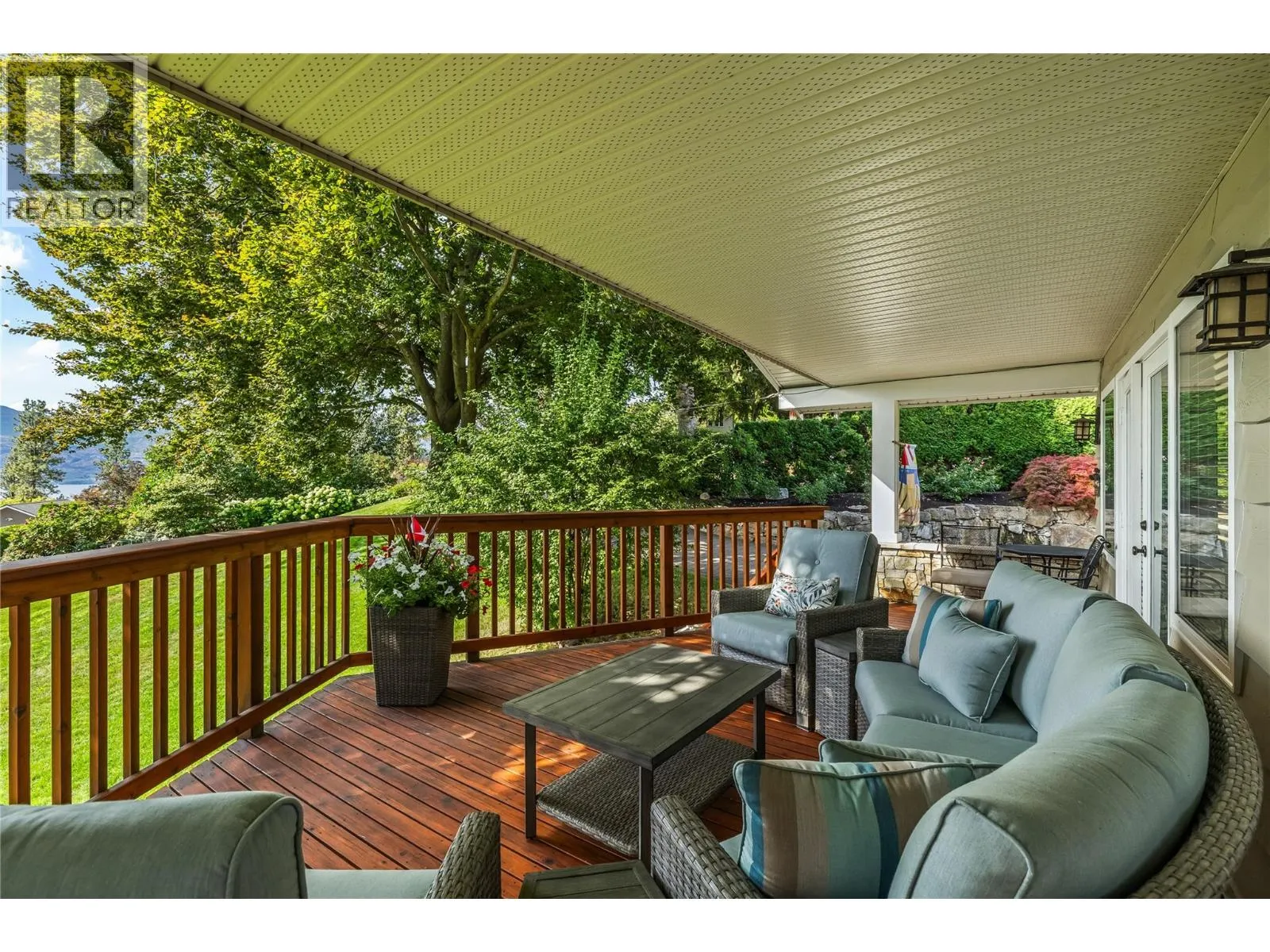 *OPEN HOUSE SUNDAY MAY 3, 12-2* Nature lovers will be drawn to this welcoming home, with its outstanding lake and mountain views, located in the sought after neighbourhood of Lakeview Heights. This walk out rancher, showcasing true pride of ownership with thoughtful updates, set on .37 acres, with room for a pool, and surrounded by mature landscaping. The inviting entrance leads to a bright living room anchored by a gas fireplace and sight-finished hardwood floors. The redesigned eat-in kitchen by Caroline Walsh combines style and function. The large, wrap around, covered deck off the kitchen and living room is perfect to enjoy morning coffee and entertain guests overlooking Lake Okanagan. The main floor features a spacious primary suite with 3pc ensuite and walk-in closet, a 2nd bedroom, and full bath. The lower level provides a 3rd bedroom, full bath, office, hobby room, plus a family room with pool table, and gas fireplace. Walk out to the lower deck to the spacious yard, ideal for gatherings. Outdoor enthusiasts will love the close proximity to Kalamoir Park, with access to walking, hiking, and biking trails and the beach for swimming and water sports. Enjoy an oversized 2 car garage with ample space for a 3rd small vehicle. Located near the new Lakeview Heights Village, The Westside Wine Trail, and boutique dining options all within easy walking distance, the perfect blend of nature, lifestyle, comfort, and convenience await you in this neighbourhood you will love to call home. (id:27476)