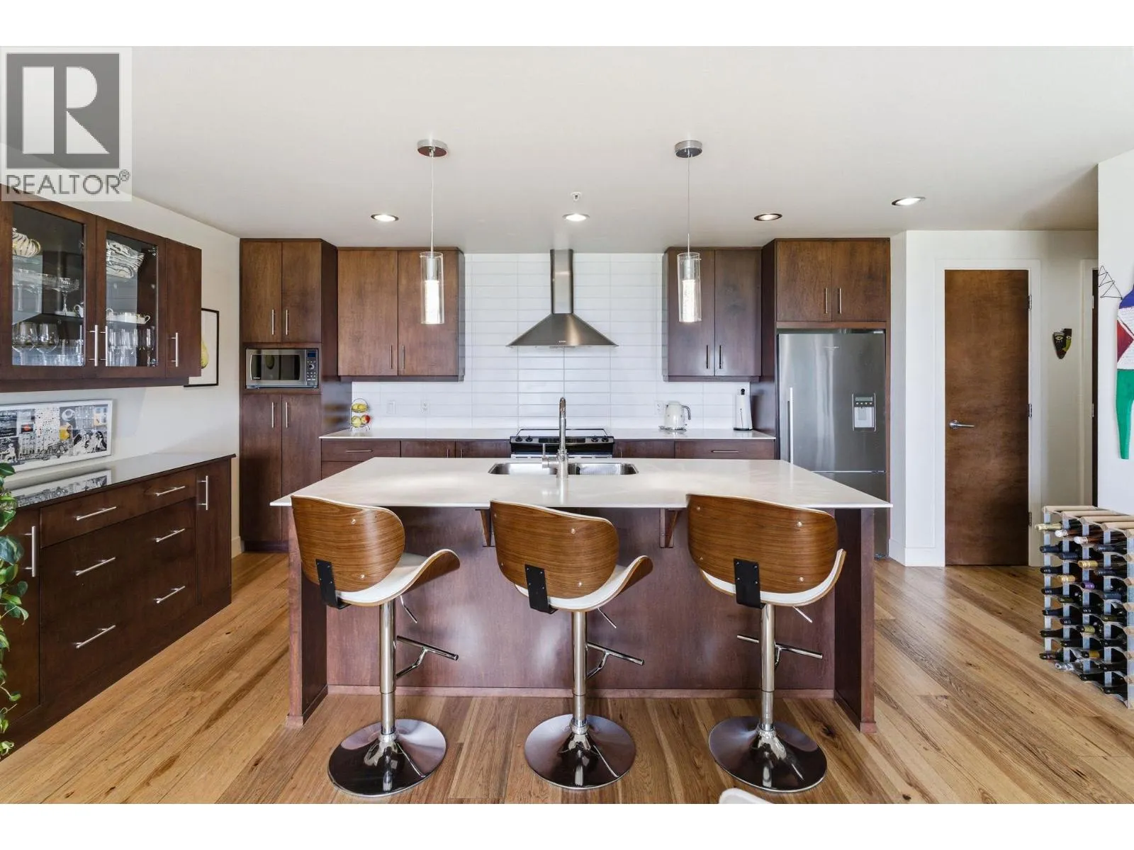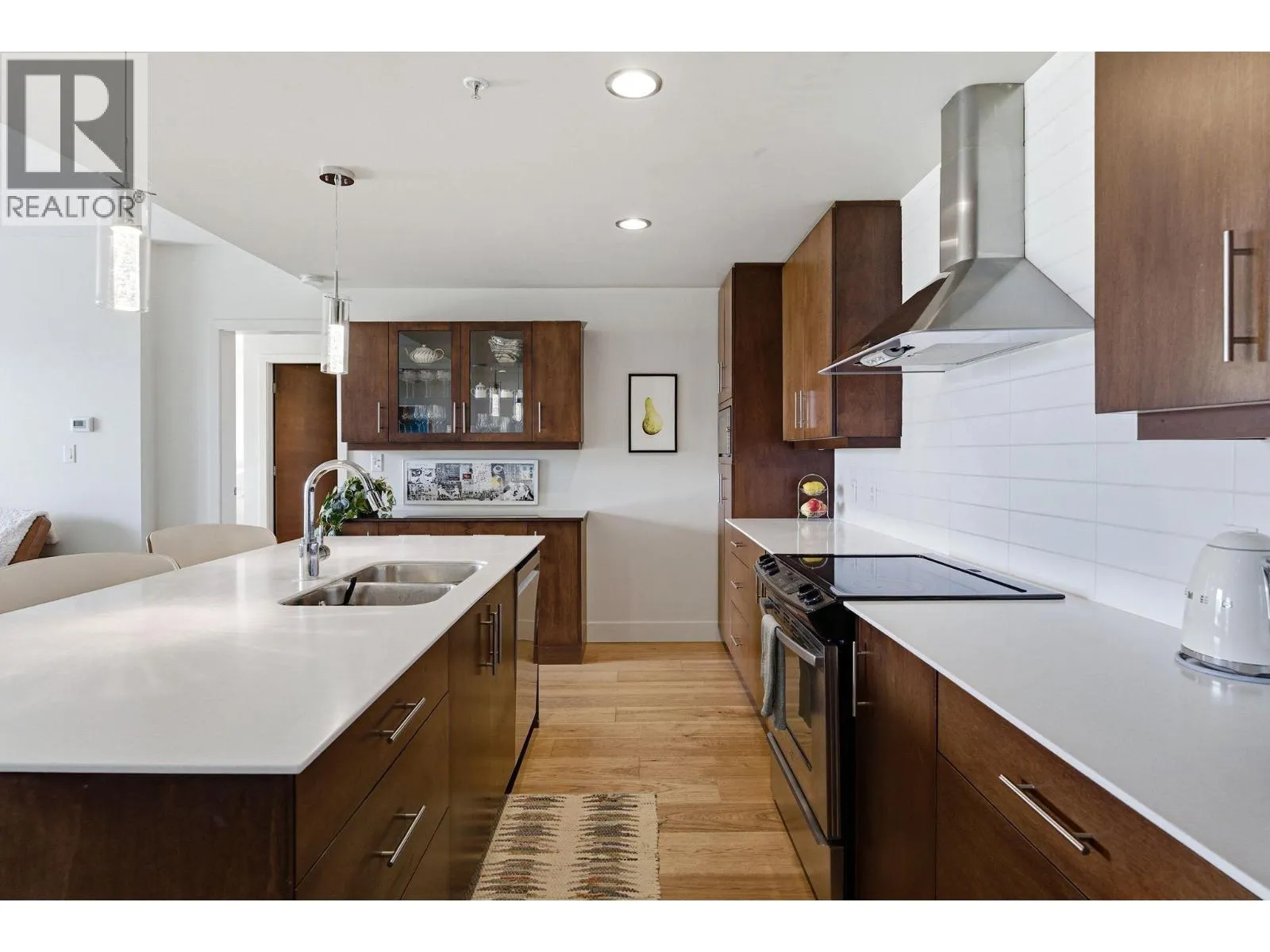 This south-facing 2-bed, 2-bath apartment runs just over 1,100 sq ft and checks the boxes that actually matter: the island kitchen layout everyone asks for, light pouring in all day, and a balcony with a gas BBQ hookup & views out over the orchards & valley. Well-appointed throughout, move-in ready, and the kind of space that works whether you're working from home or heading out the door at 6am. Secure underground parking & storage included. Here's where InVue earns its reputation â the Rooftop - pool, loungers, and a gathering area perfect for catching the sunset over Okanagan Lake. Bring a bottle of something local, invite a few friends up, and you've got the best patio in the city without leaving home. The gym is legit â not a token treadmill â plus a dog wash station, games room, and guest suites you can book when family rolls into town. The location seals it. Orchard Park Mall is a 2-minute walk. Transit at your door. Mission Creek Greenway around the corner for the evening run or weekend ride. Downtown, the lake, and the wineries are all a short hop. The bottom line? Priced under $550K, this is how Kelowna's young professionals actually want to live â central, turn-key, and with a rooftop you'll brag about. Get your favorite agent to book you a viewing. (id:27476)