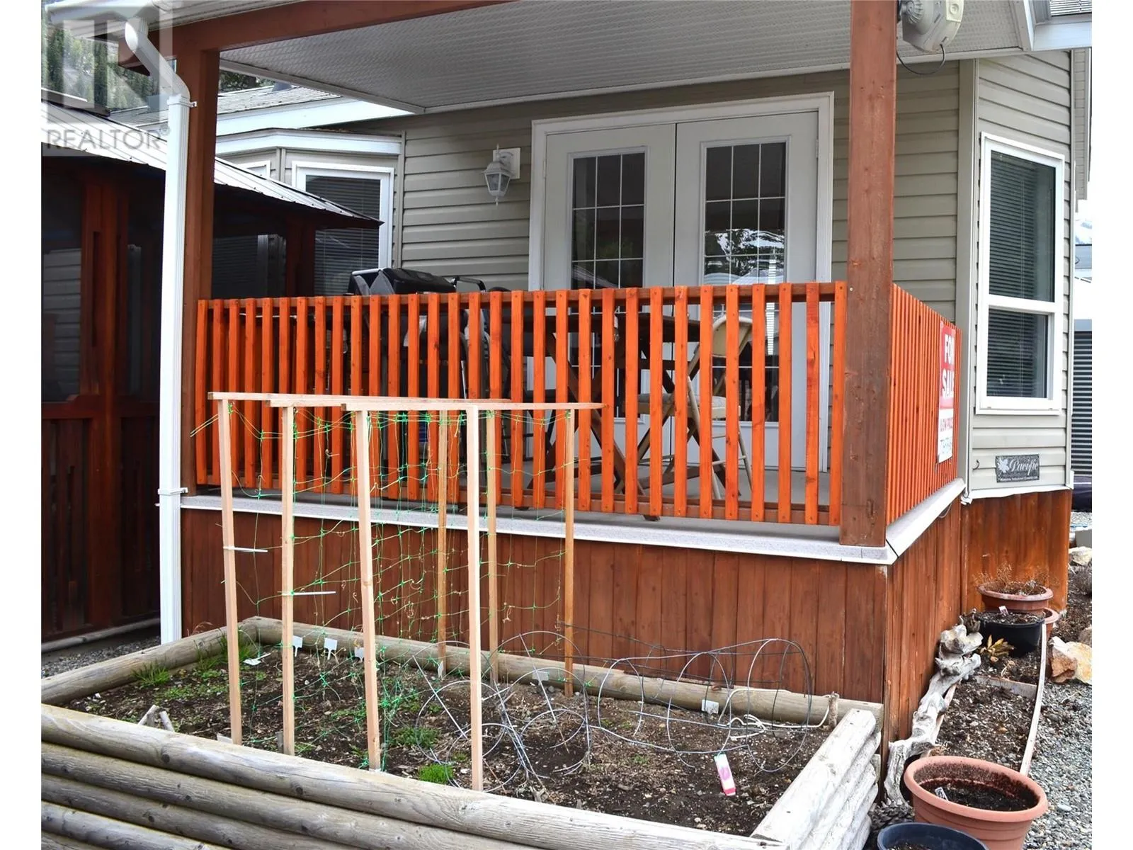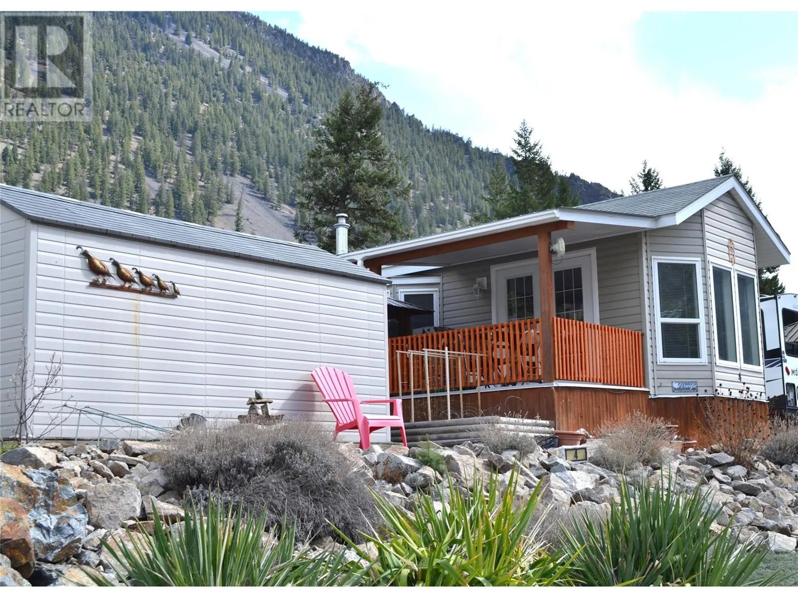 Wow, AFFORDABLE living!! Come and enjoy easy living in this friendly gated community located just 10 minutes from Keremeos bordering the Similkameen River. Riverside Resort has no age restrictions and allows 2 pets with approval. This immaculate 531 sq. ft home is perfect for those that crave the popular tiny home living featuring a lifestyle for freedom to travel & to explore. The home has a nice size kitchen plus a bright living room area leading onto a great barbecue deck boasting mountain views. The 50 x 60 lot has a fantastic gazebo, storage shed, garden area plus room for two vehicles. Riverside Resort offers a beautiful Indoor Swimming Pool, Hot Tub, Gym, Laundry Room, Clubhouse, Games room, RV parking, Workshop, Yoga/Pottery area, Wine making room, Low fee guest accommodations available, Dog park area and don't forget the River frontage! Monthly fee of $310.21 includes sewer, garbage and all the amazing park amenities. This is a Freehold Fractional 1/134 Ownership, (not a Pad Rental). Year round living or seasonal. You will LOVE it here!! Measurements are taken from the plan provided. (id:27476)