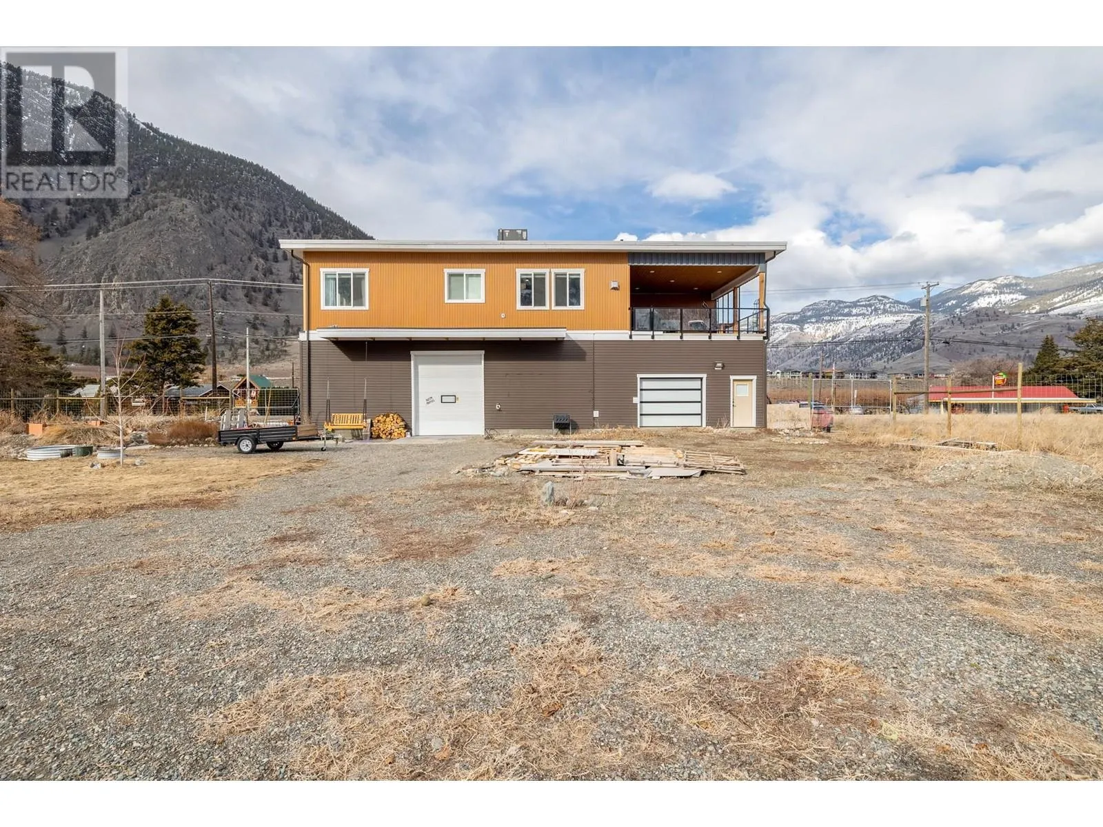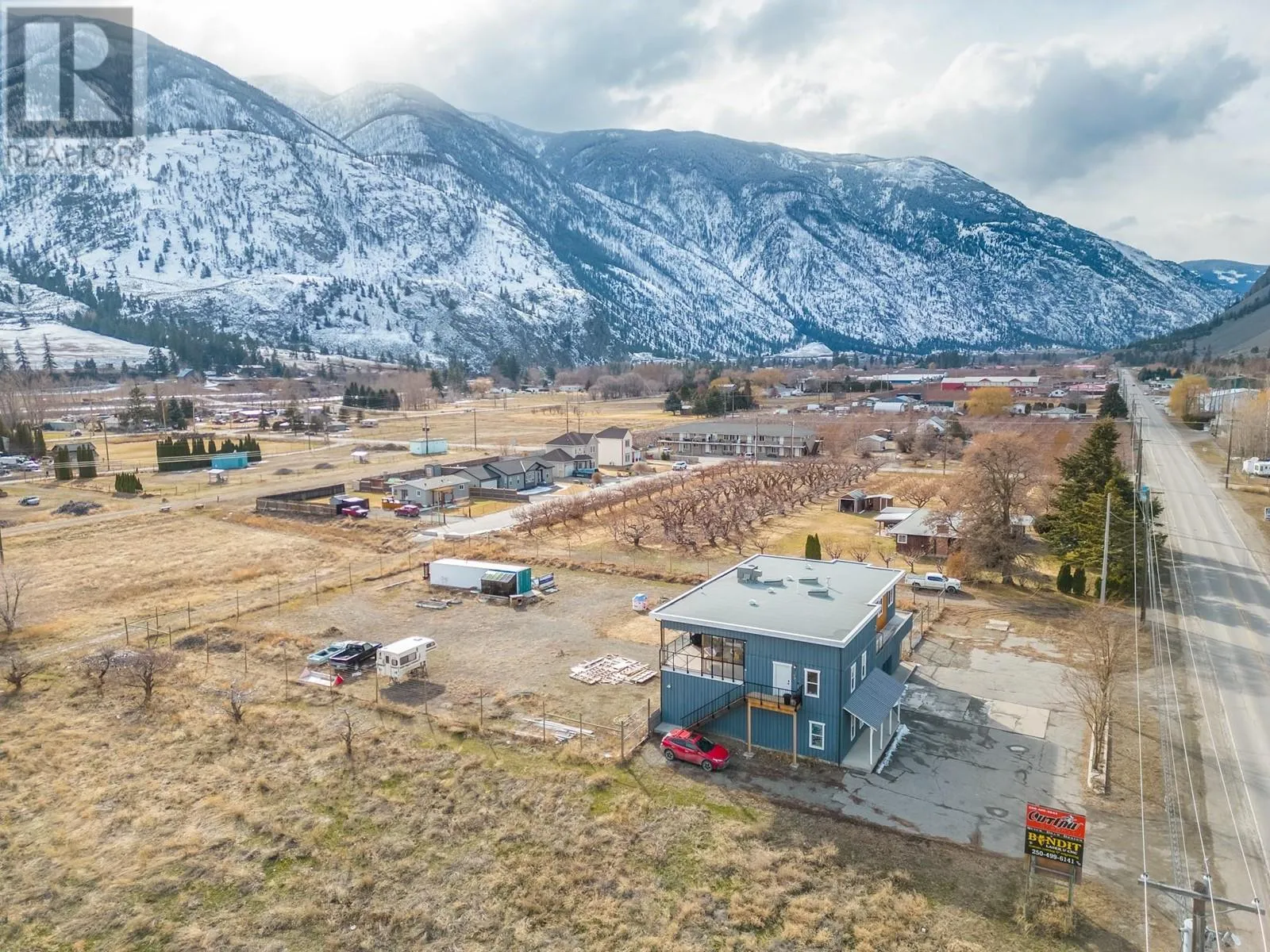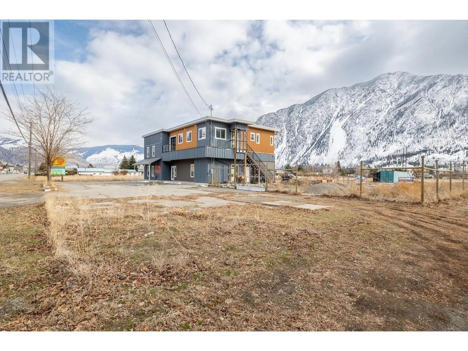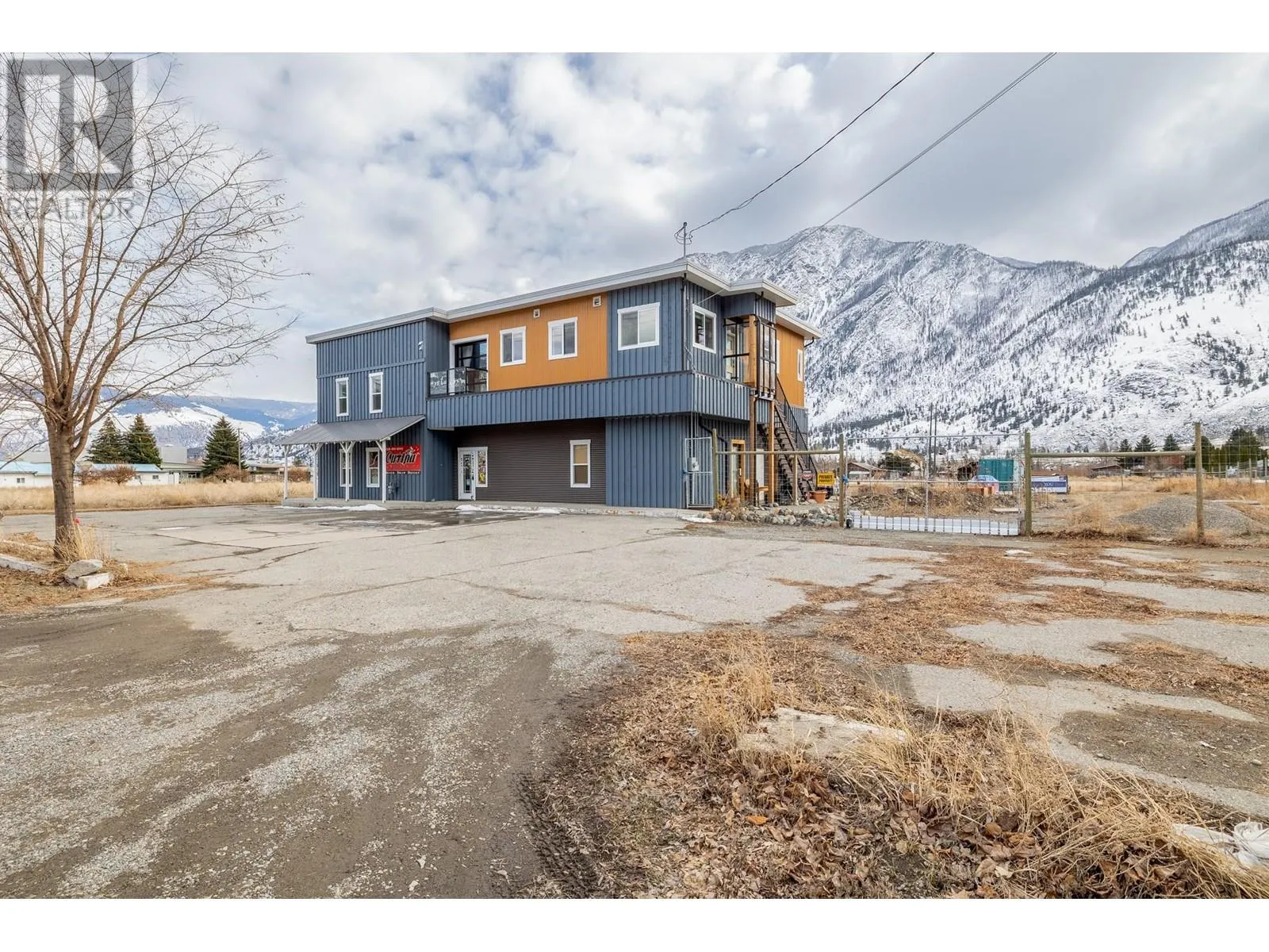Incredibly unique and versatile Commercial/Residential opportunity. Updates galore. Newly built (2019) trendy 3 bed, 2 bath home, and an additional 1 bedroom suite situated on top of highway-fronting commercial space. Home includes 9' ceilings, skylights and custom finishings, making this artist-designed space bright and cheerful. Upstairs also features a fully-contained private 1 bed suite. Enjoy the warm Similkameen on your back patio or roll up the garage door in the flex room at the front of the building for a change of scenery. The king-sized master bedroom has 2 closets (one a walk-in), large ensuite bathroom with 2 sinks, soaker tub, and roomy, glass-walled shower. The space also features a home office with built-in desk + ample shelving. There is a large chef's kitchen w/custom cabinets and a sizeable island for socializing. Cozy up by the warm gas fireplace in the winter! Large main floor commercial space with a shop at the rear. Separate overhead doors access both the commercial and the shop. All mechanical upgraded at time of recent renovation. Brand new commercial rooftop HVAC, Boiler for in-floor heat, HWTs, upgraded electrical, fire separation etc. No corners cut. Excellent exposure located off Highway 3 with ample parking for your business/tenants out front. the property is walking distance to downtown Keremeos. The back of the property is a large, flat, blank slate with double frontage on Veterans. (id:27476)
