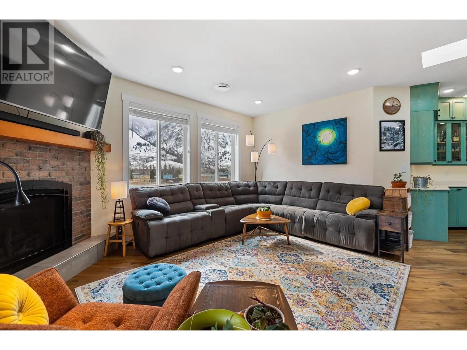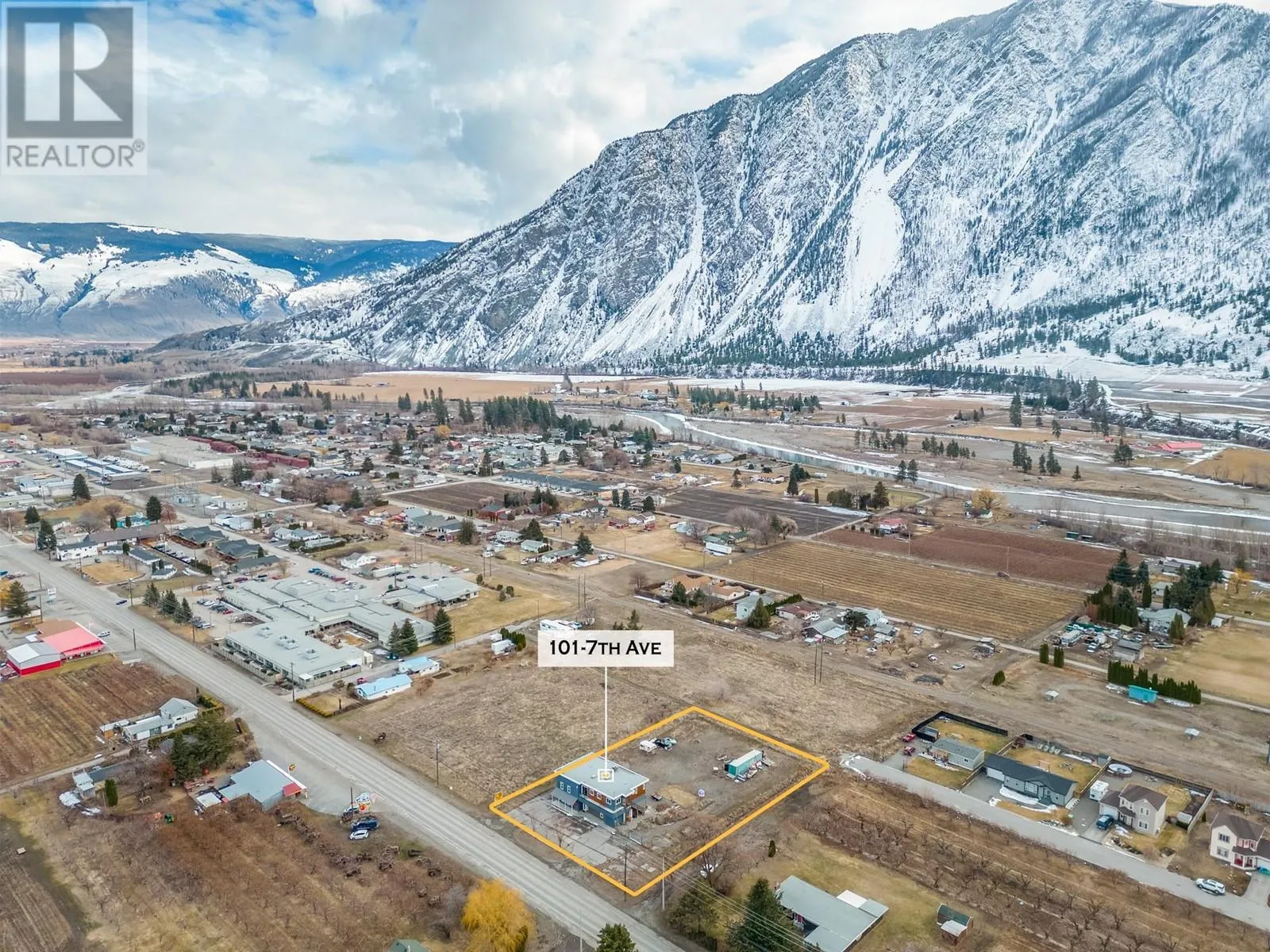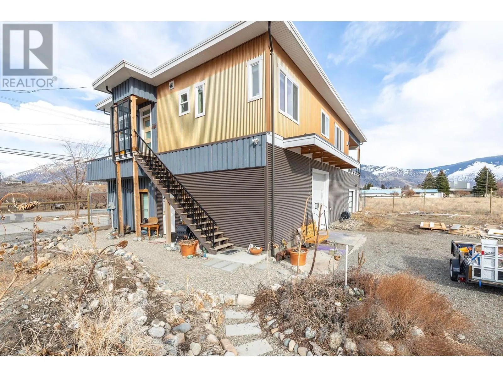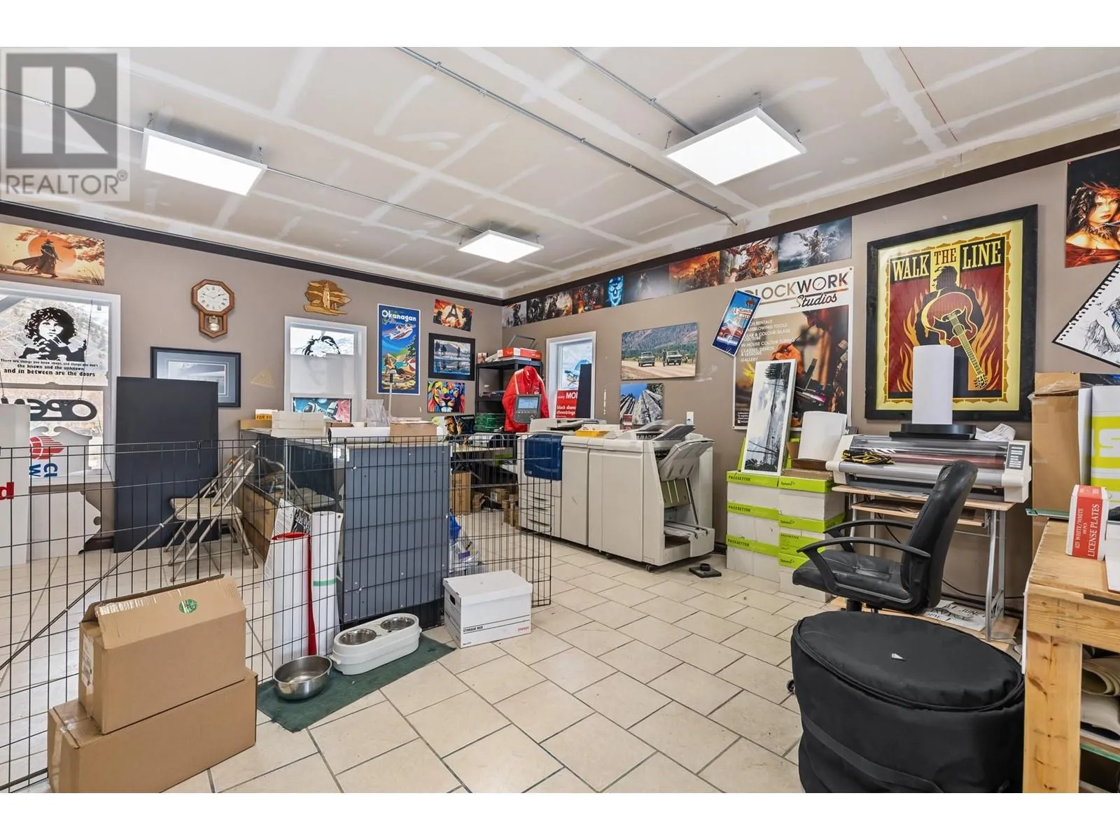 Incredibly unique and versatile Commercial/Residential opportunity. Updates galore. Newly built (2019) trendy 3 bed, 2 bath home, and an additional 1 bedroom suite situated on top of highway-fronting commercial space. Home includes 9' ceilings, skylights and custom finishings, making this artist-designed space bright and cheerful. Upstairs also features a fully-contained private 1 bed suite. Enjoy the warm Similkameen on your back patio or roll up the garage door in the flex room at the front of the building for a change of scenery. The king-sized master bedroom has 2 closets (one a walk-in), large ensuite bathroom with 2 sinks, soaker tub, and roomy, glass-walled shower. The space also features a home office with built-in desk + ample shelving. There is a large chef's kitchen w/custom cabinets and a sizeable island for socializing. Cozy up by the warm gas fireplace in the winter! Large main floor commercial space with a shop at the rear. Separate overhead doors access both the commercial and the shop. All mechanical upgraded at time of recent renovation. Brand new commercial rooftop HVAC, Boiler for in-floor heat, HWTs, upgraded electrical, fire separation etc. No corners cut. Excellent exposure located off Highway 3 with ample parking for your business/tenants out front. the property is walking distance to downtown Keremeos. The back of the property is a large, flat, blank slate with double frontage on Veterans. (id:27476)
