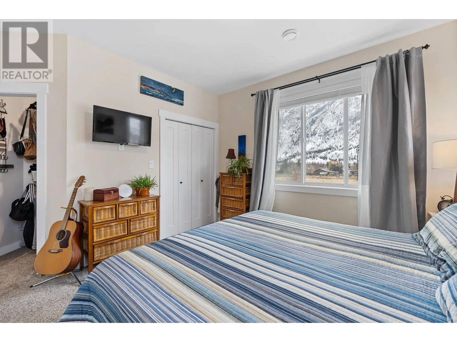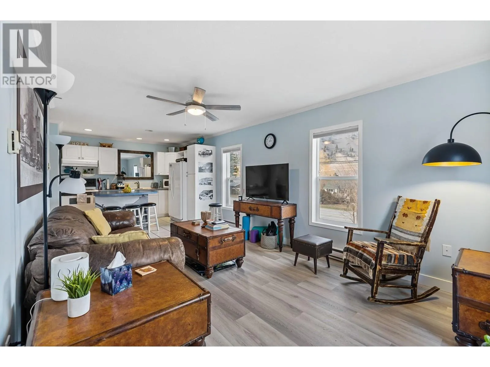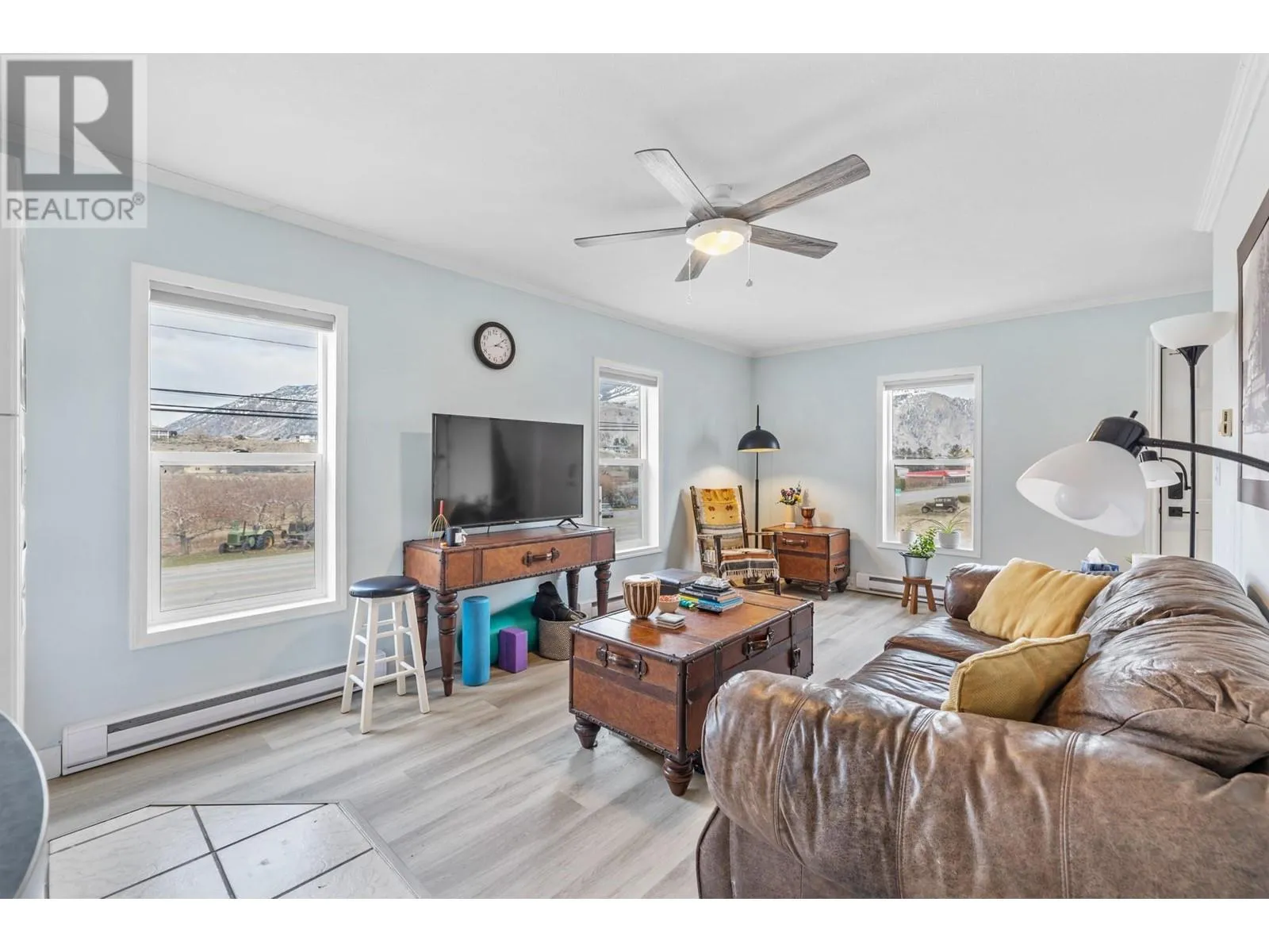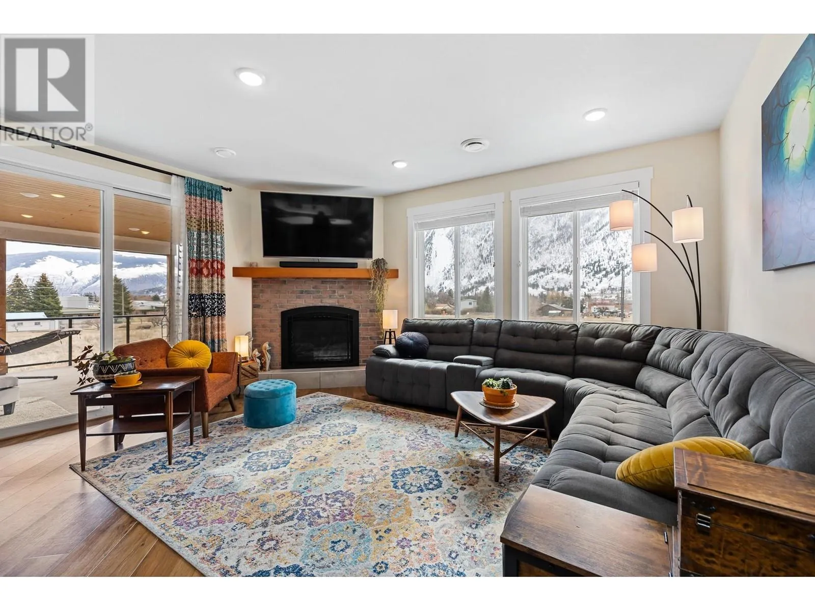 Incredibly unique and versatile Commercial/Residential opportunity. Updates galore. Newly built (2019) trendy 3 bed, 2 bath home, and an additional 1 bedroom suite situated on top of highway-fronting commercial space. Home includes 9' ceilings, skylights and custom finishings, making this artist-designed space bright and cheerful. Upstairs also features a fully-contained private 1 bed suite. Enjoy the warm Similkameen on your back patio or roll up the garage door in the flex room at the front of the building for a change of scenery. The king-sized master bedroom has 2 closets (one a walk-in), large ensuite bathroom with 2 sinks, soaker tub, and roomy, glass-walled shower. The space also features a home office with built-in desk + ample shelving. There is a large chef's kitchen w/custom cabinets and a sizeable island for socializing. Cozy up by the warm gas fireplace in the winter! Large main floor commercial space with a shop at the rear. Separate overhead doors access both the commercial and the shop. All mechanical upgraded at time of recent renovation. Brand new commercial rooftop HVAC, Boiler for in-floor heat, HWTs, upgraded electrical, fire separation etc. No corners cut. Excellent exposure located off Highway 3 with ample parking for your business/tenants out front. the property is walking distance to downtown Keremeos. The back of the property is a large, flat, blank slate with double frontage on Veterans. (id:27476)