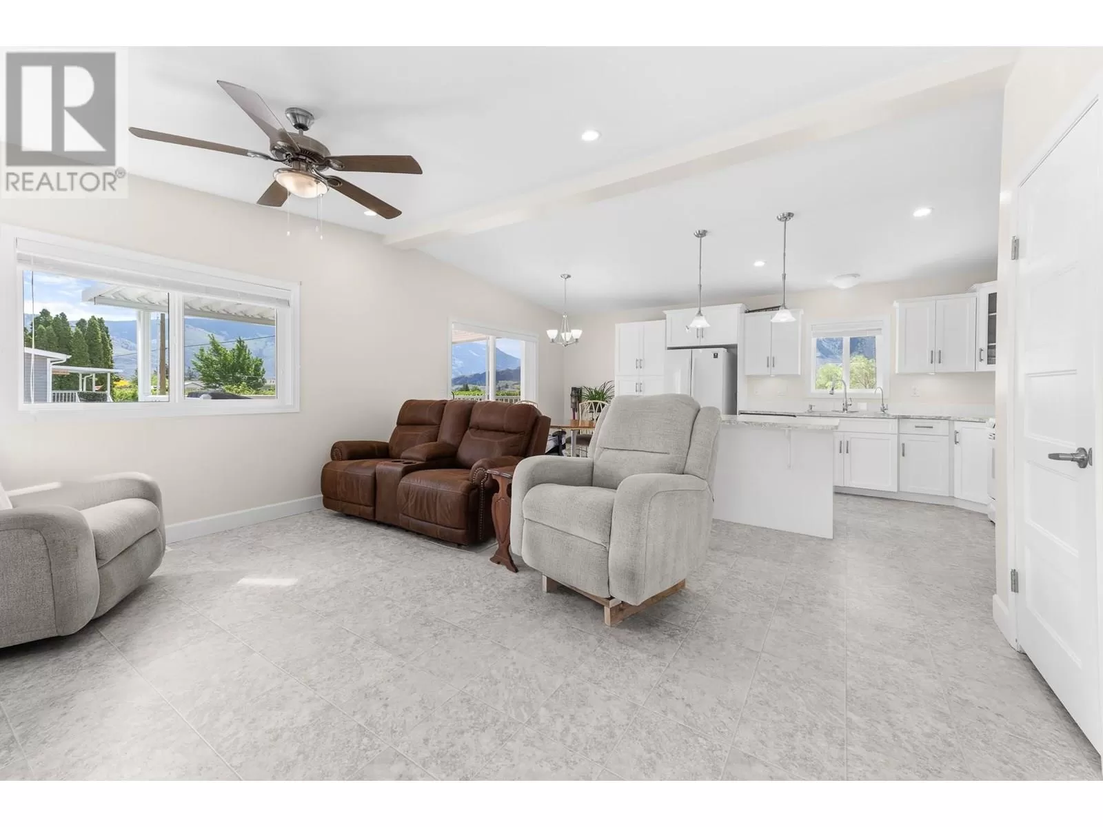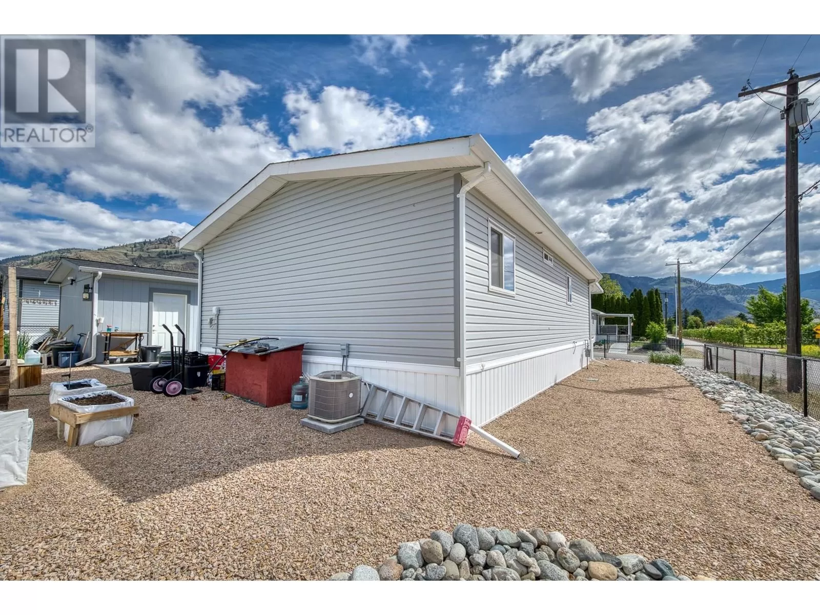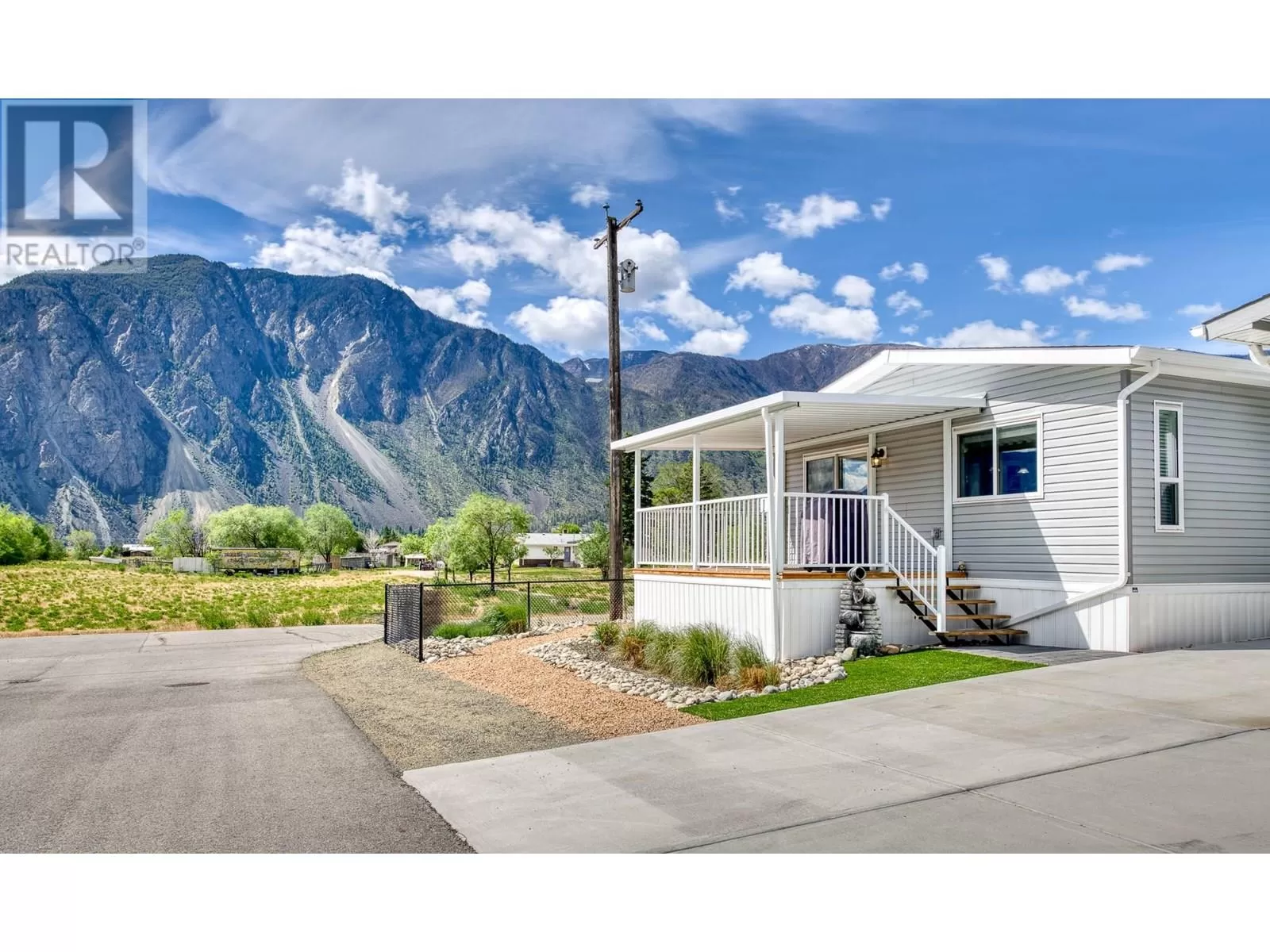 Welcome to this bright and spacious 2021-built corner unit in the beautiful Bench Park in Keremeos, BC. This beautifully maintained double-wide home offers 2 bedrooms and 2 bathrooms with an open-concept layout ideal for entertaining. The kitchen features a large island, perfect for gatherings, and flows seamlessly into the living and dining areas. Step outside to a covered patio and soak in the breathtaking mountain and vineyard views. This home also includes a spacious garage with a cold storage room, plus a covered carport for additional parking and protection from the elements. Located in a quiet, well-kept park with no age restrictions, pets welcome and just 30 minutes from Pentictonâs beaches and close to Apex Mountain Ski Resort, for year-round outdoor fun. A fantastic opportunity to enjoy modern living in a peaceful, scenic setting! (id:27476)
