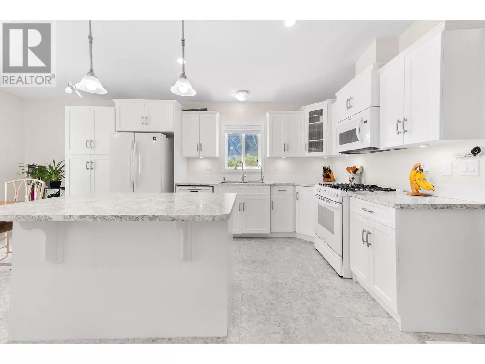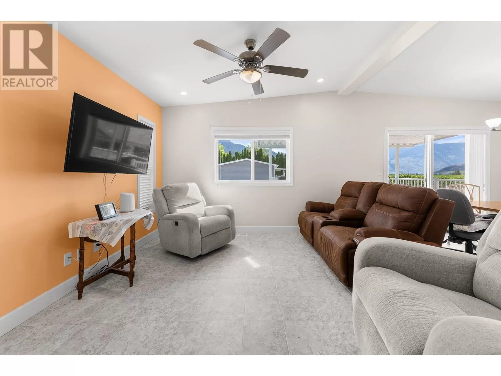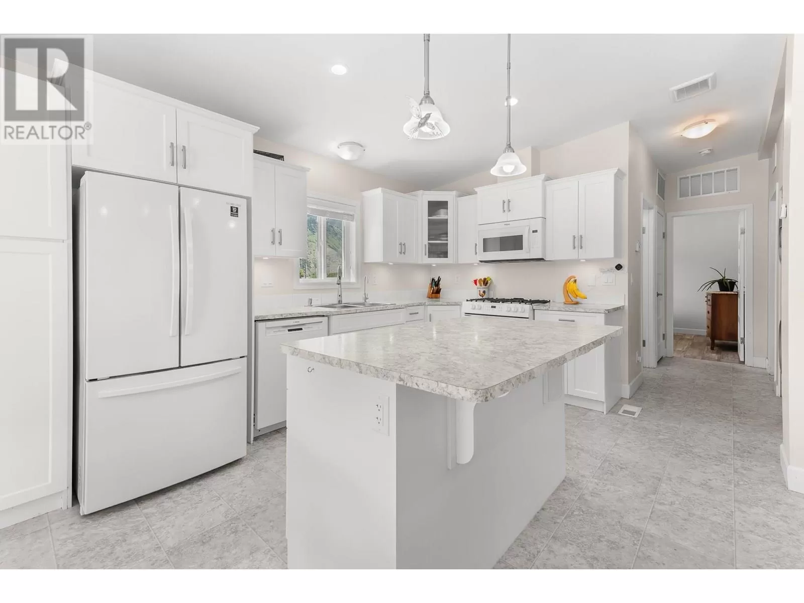 Welcome to this bright and spacious 2021-built corner unit in the beautiful Bench Park in Keremeos, BC. This beautifully maintained double-wide home offers 2 bedrooms and 2 bathrooms with an open-concept layout ideal for entertaining. The kitchen features a large island, perfect for gatherings, and flows seamlessly into the living and dining areas. Step outside to a covered patio and soak in the breathtaking mountain and vineyard views. This home also includes a spacious garage with a cold storage room, plus a covered carport for additional parking and protection from the elements. Located in a quiet, well-kept park with no age restrictions, pets welcome and just 30 minutes from Pentictonâs beaches and close to Apex Mountain Ski Resort, for year-round outdoor fun. A fantastic opportunity to enjoy modern living in a peaceful, scenic setting! (id:27476)