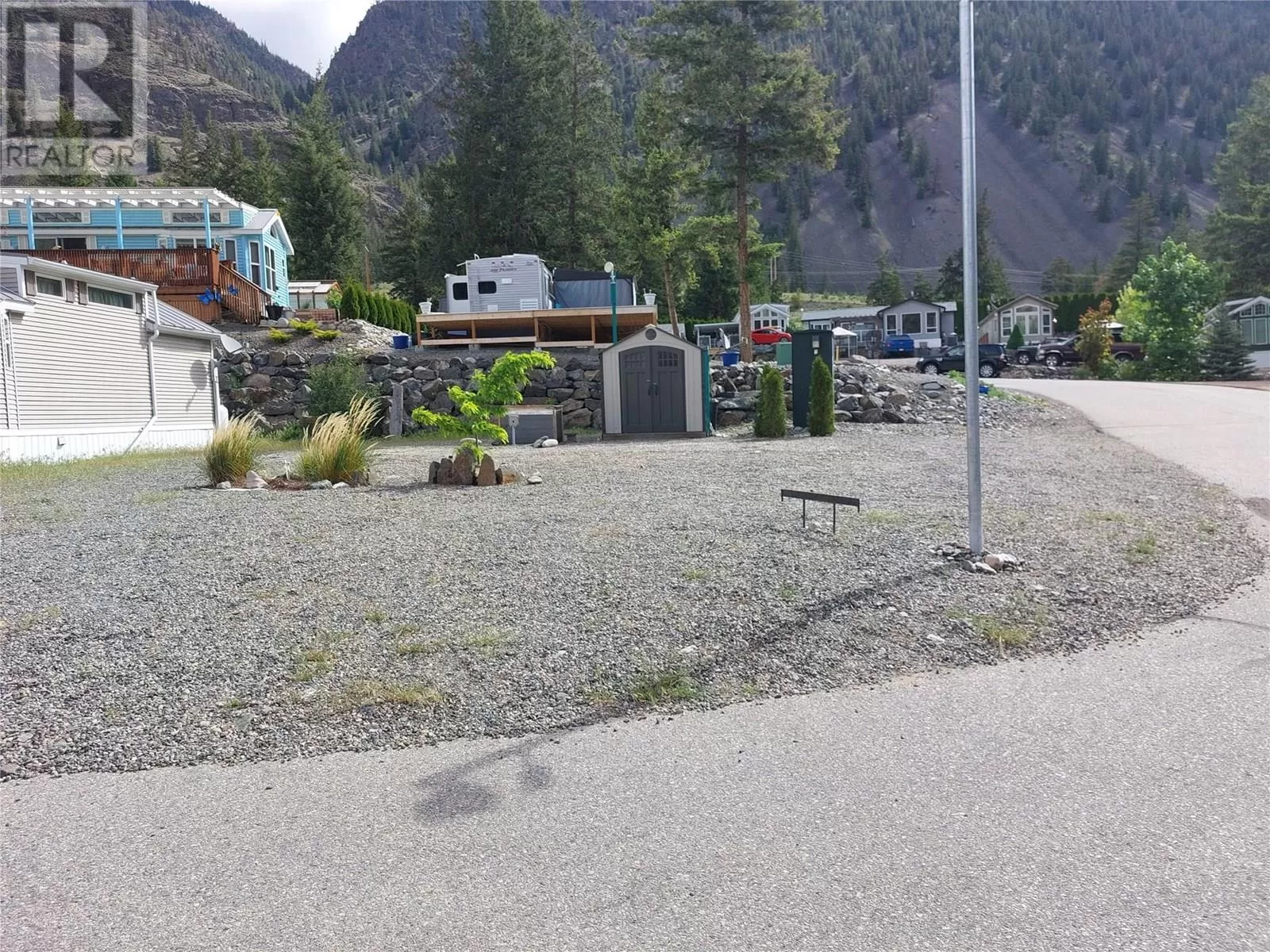 Resort Living that you can enjoy year round! Gated community has an indoor pool with coin laundry / gym / shower and is bordering the Similkameen River with walking trails and swimming access. There are guest suites, a clubhouse with games room, meeting areas, library and so much more. Workshops, orchard, and lots to discover just 10 minutes West of Keremeos. This corner lot has lots of room for parking, a storage shed, and just steps to the pool. Ready for your Park Model or RV! (id:27476)
