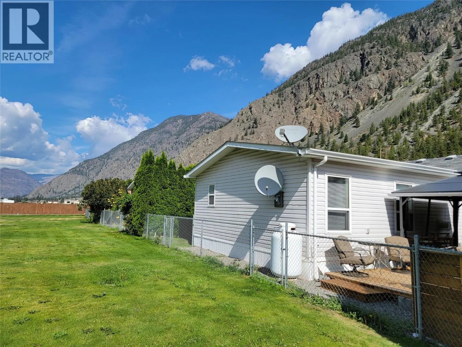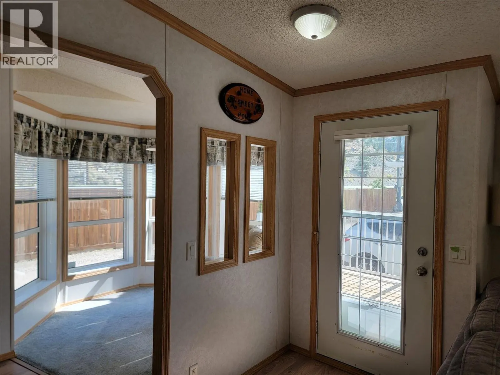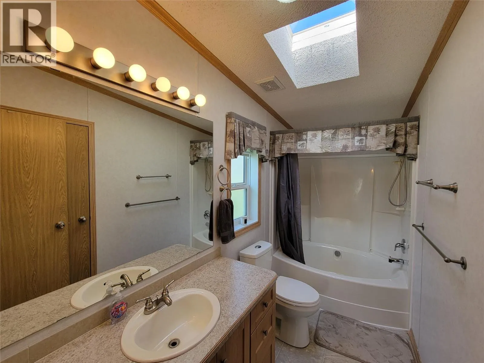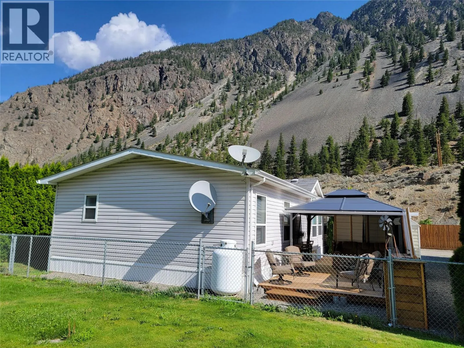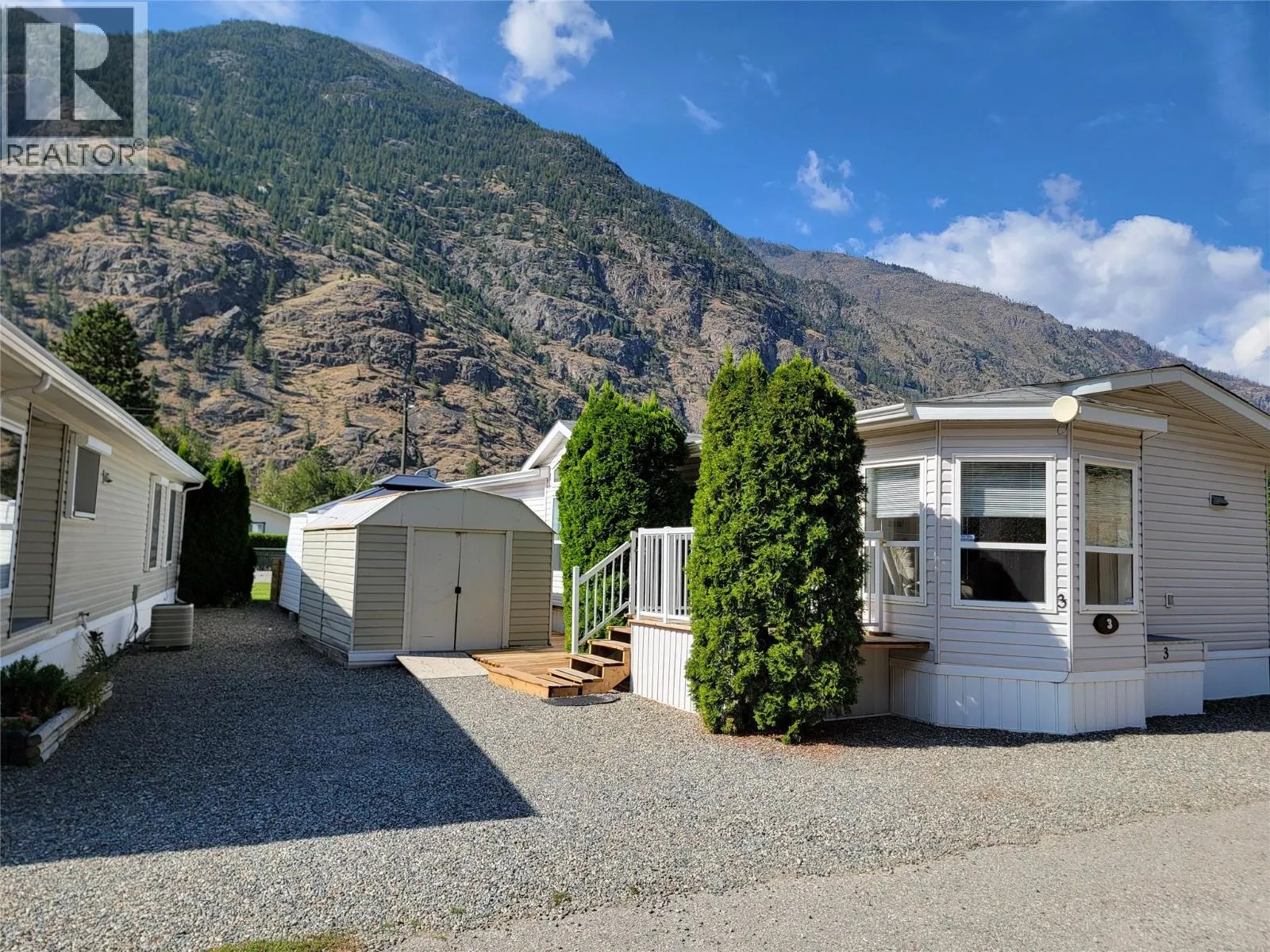 Mountain views surround this bright and clean home at Riverside Estates! 55+, pets on approval, modest monthly pad fee. Great outdoor space under the new gazebo and boardwalk, and fenced for your pets. Easy access to the beautiful Similkameen River and green space along the back of home. Metal wheelchair ramp provides access to the covered back patio through the sliding door - excellent for moving in! 2 bed + den/office, 2 bath home offers an easy to love layout with central air. Open concept living space, functional kitchen design with pantry, and corner breakfast nook features incredible natural light to enjoy your morning coffee. Beautiful large window and cozy gas fireplace in the office. Main bedroom features a large closet and 4 pc ensuite with tub/shower. Skylights in each bathroom helps to fill the home with natural light. Pad fee of $415.10 per month includes water and septic. Each pet requires prior written approval by Park Manager. Call today for more info. Measurements are approximate. (id:27476)