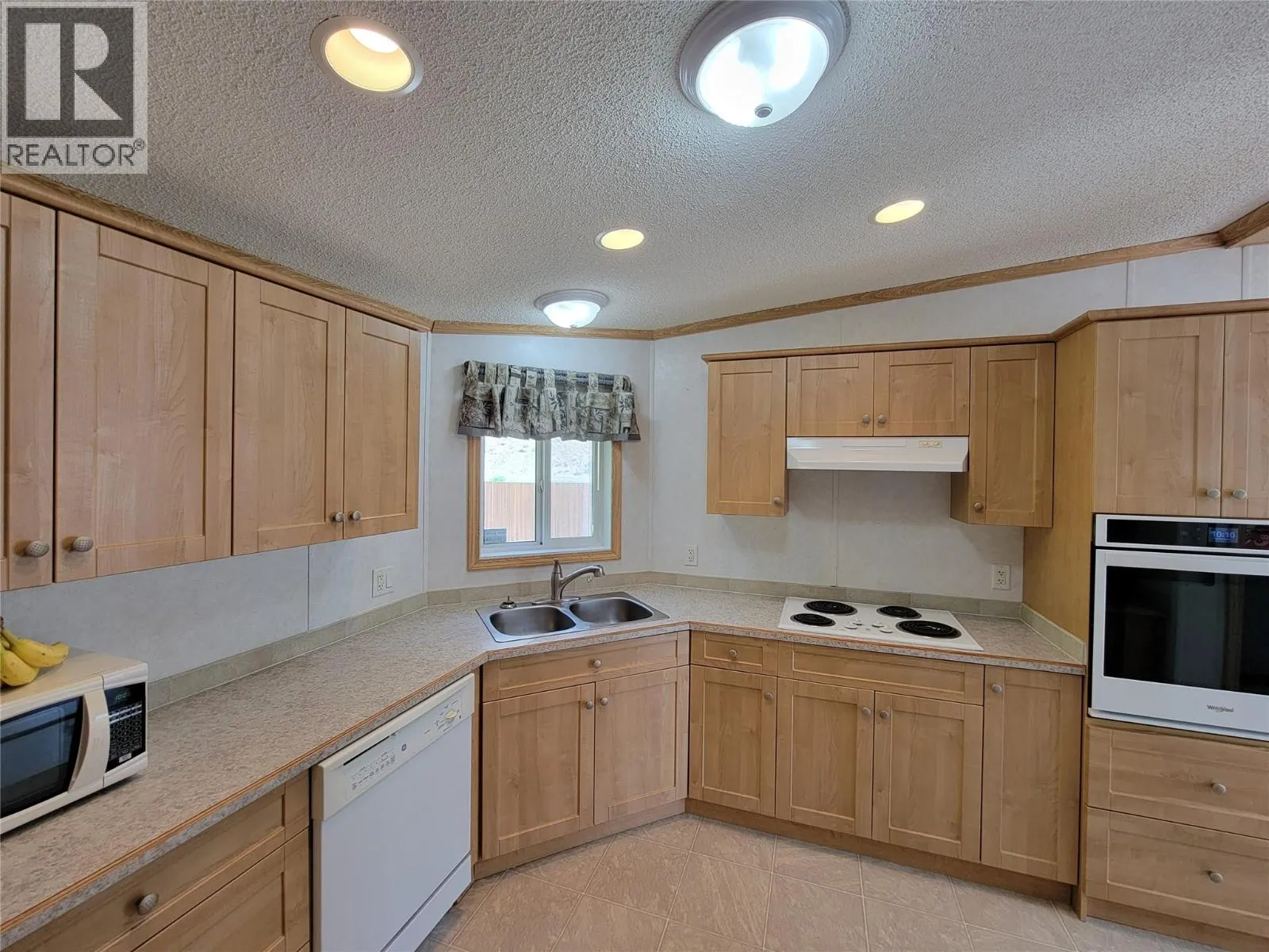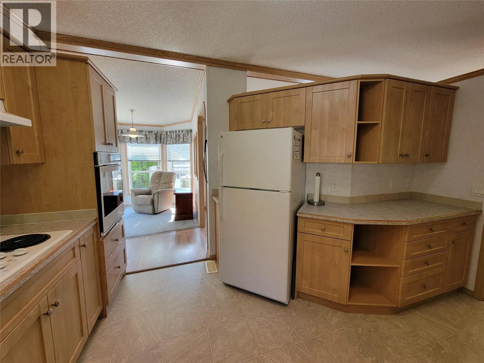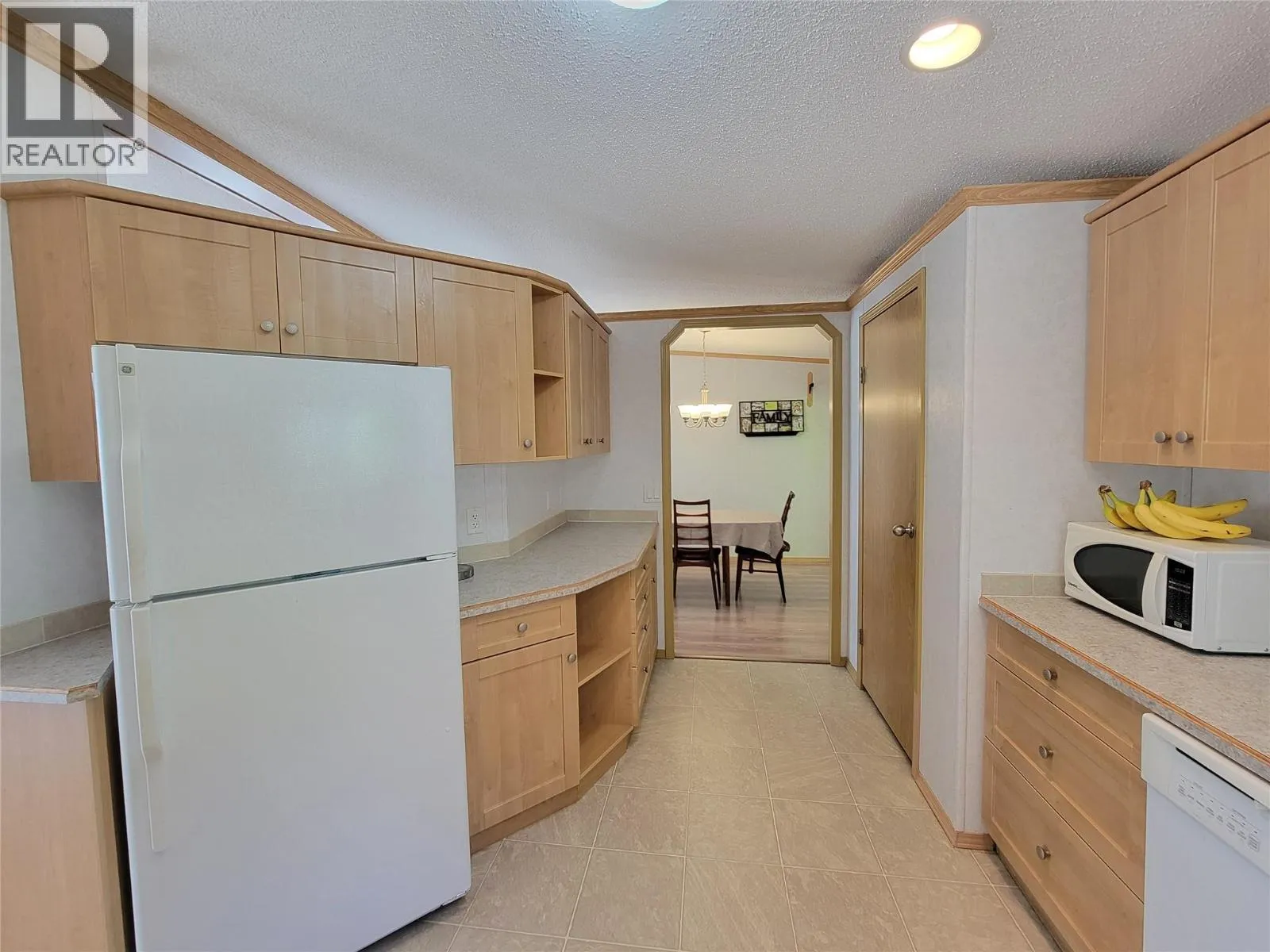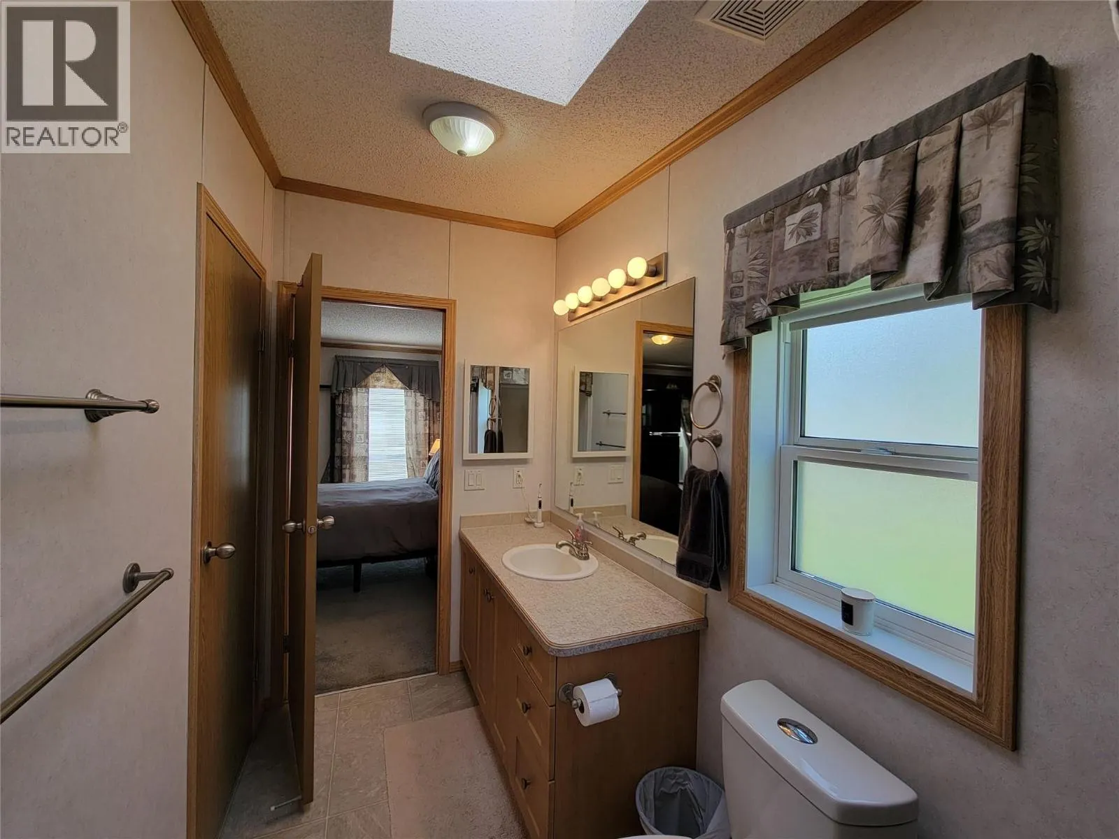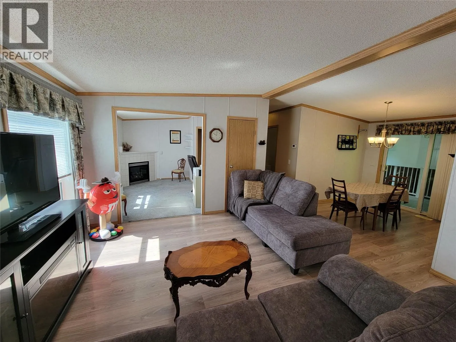 Mountain views surround this bright and clean home at Riverside Estates! 55+, pets on approval, modest monthly pad fee. Great outdoor space under the new gazebo and boardwalk, and fenced for your pets. Easy access to the beautiful Similkameen River and green space along the back of home. Metal wheelchair ramp provides access to the covered back patio through the sliding door - excellent for moving in! 2 bed + den/office, 2 bath home offers an easy to love layout with central air. Open concept living space, functional kitchen design with pantry, and corner breakfast nook features incredible natural light to enjoy your morning coffee. Beautiful large window and cozy gas fireplace in the office. Main bedroom features a large closet and 4 pc ensuite with tub/shower. Skylights in each bathroom helps to fill the home with natural light. Pad fee of $415.10 per month includes water and septic. Each pet requires prior written approval by Park Manager. Call today for more info. Measurements are approximate. (id:27476)