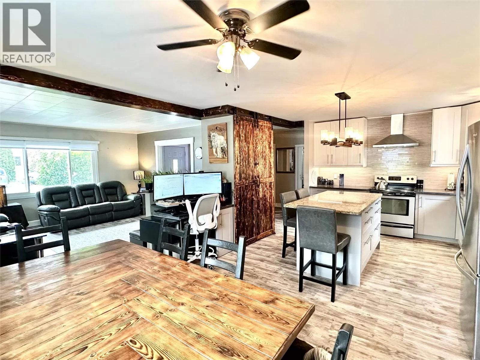 Tucked away on a quiet street with convenient back alley access, this beautifully updated 2-bedroom, 1-bathroom home offers the perfect blend of comfort, function, and outdoor living. From the moment you walk in, you'll love the bright, open-concept layout and modern upgrades throughout. At the heart of the home is a stunning custom kitchen, complete with soft-close cabinetry, sleek finishes, and a 6-ft granite-topped island, ideal for entertaining family and friends. The open design allows natural light to flow throughout the space, creating a warm and welcoming vibe. Step outside to your backyard oasis thoughtfully landscaped and fully fenced with 6-ft cedar privacy fencing. Enjoy the 10x12 covered patio, relax on the 20x12 sundeck, or cool off in the above-ground pool. The outdoor kitchen and gazebo with bar-top seating make this space perfect for summer evenings and weekend gatherings. Garden boxes and underground irrigation add functionality and ease to your green thumb dreams. A detached garage with an adjoining workshop provides space for hobbies or extra storage. The paved driveway offers RV parking for two, complete with a 30-amp hook-up. The low-maintenance, xeriscaped front yard means less work and more time to enjoy the spectacular views of K Mountain. Whether you're looking to downsize, start fresh, or invest in a turnkey home with outdoor appeal this. Keremeos property is a must see! 35 minute drive to Penticton or a 20 minute drive to Osoyoos Lake! (id:27476)