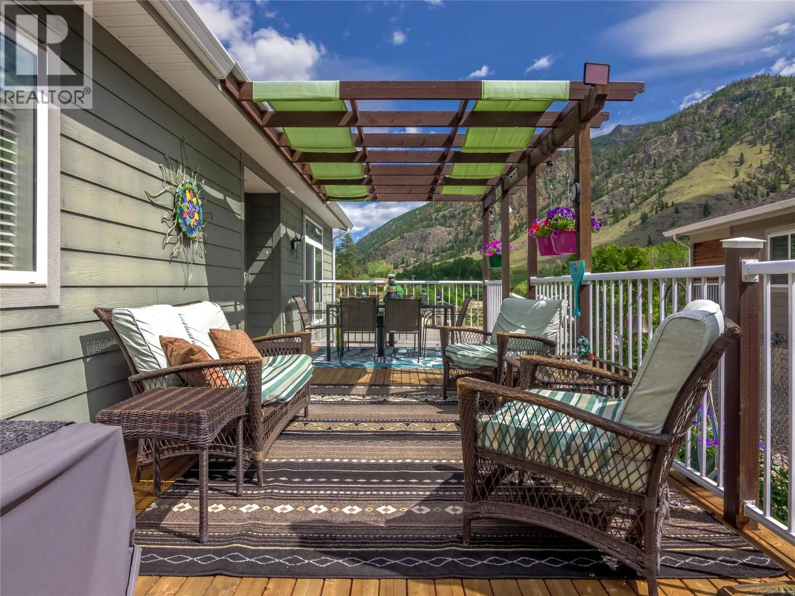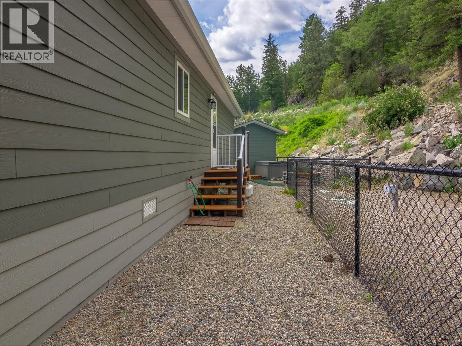 Welcome to Copper Ridge! Enjoy peaceful rural living just 5 minutes from Keremeos and a scenic 20-minute drive to Penticton. This spacious 12-year-old double wide manufactured home offers 2 bedrooms, 2 bathrooms, and sits at the end unit on the mountain side of the parkâoffering extra privacy and direct access to a hiking trail right outside your front door. The oversized yard is perfect for outdoor living with two decks, a hot tub, and a large storage shed. Whether you're entertaining friends or enjoying a quiet morning coffee, this is the place to put your feet up and relax. A unique opportunity for those looking to enjoy a quieter lifestyle with nature at your doorstep and city conveniences just a short drive away. Fully fenced yard for your precious furry friends too! (id:27476)