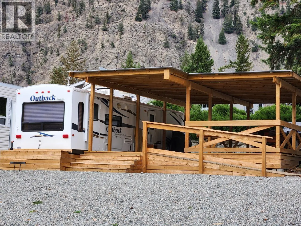 Riverside Retreat in a 4-Season Park â No Age Restrictions! Welcome to your Okanagan getaway â a 50x70 riverfront lot featuring a 2012 Outback Keystone Super-Lite trailer in the sought-after Riverside RV Resort, just 10 minutes west of Keremeos. This bright and open unit offers two slides, a spacious 3-piece bathroom, and a beautifully crafted covered deck complete with built-in table, skirting, ramp, and stair access. A convenient storage shed adds extra functionality. Enjoy the peace of mind of a low $310.21 monthly association fee covering water, sewer, garbage, recycling, snow removal, management, and full access to resort amenities. Take advantage of the indoor pool, hot tub, fitness room, clubhouse with kitchen, library, TV lounge, pool tables, guest suites, workshops, laundry, and off-leash dog area. Explore the scenic river walkways, trails, and beaches right at your doorstep. This is shared ownership in a 22-acre resort (1/134 share) with exclusive use of Lot #59. Two pets allowed with approval, no rentals permitted. Whether youâre seeking a year-round home base or a seasonal escape, this property blends comfort, community, and natural beauty perfectly. (id:27476)