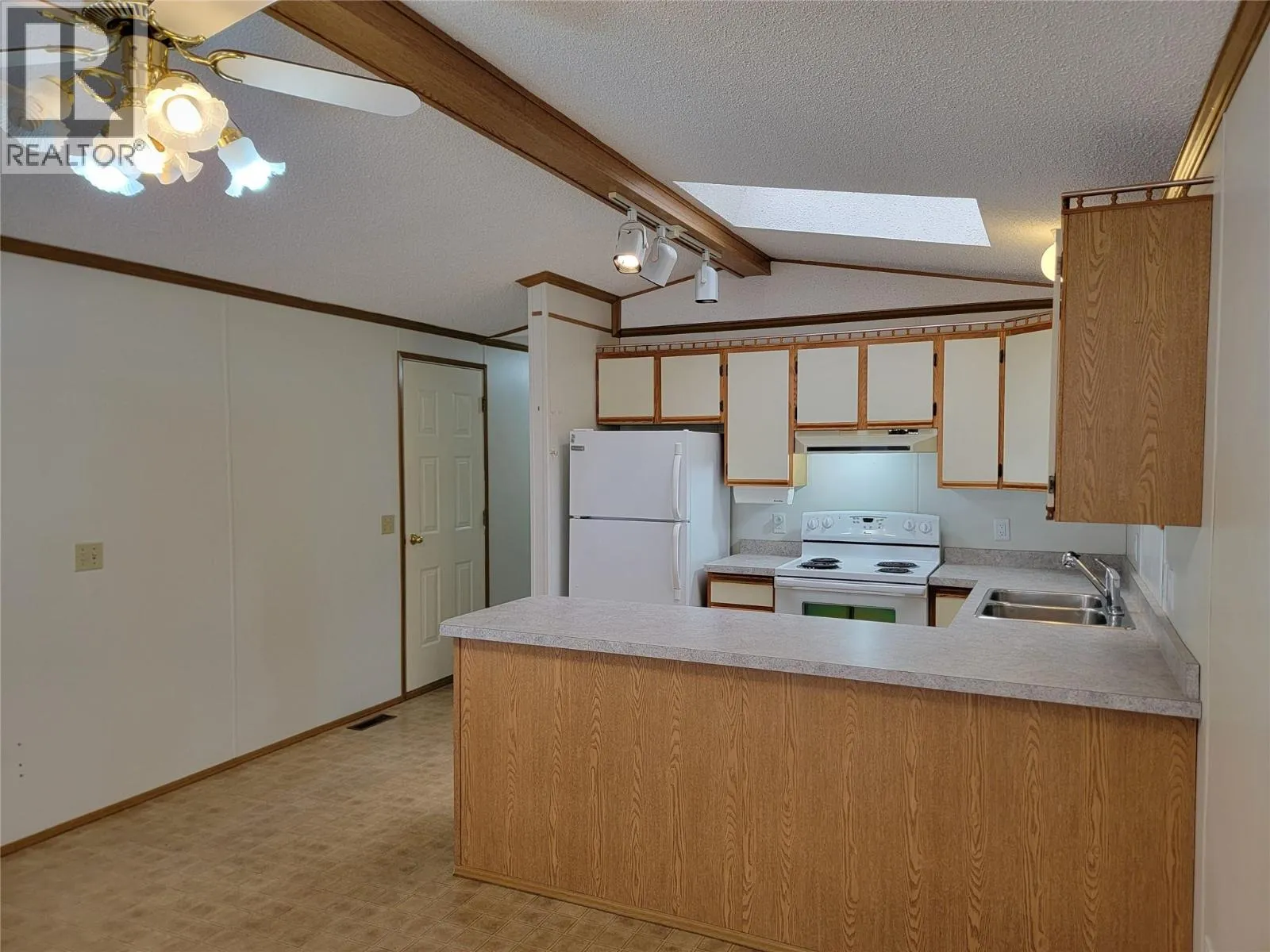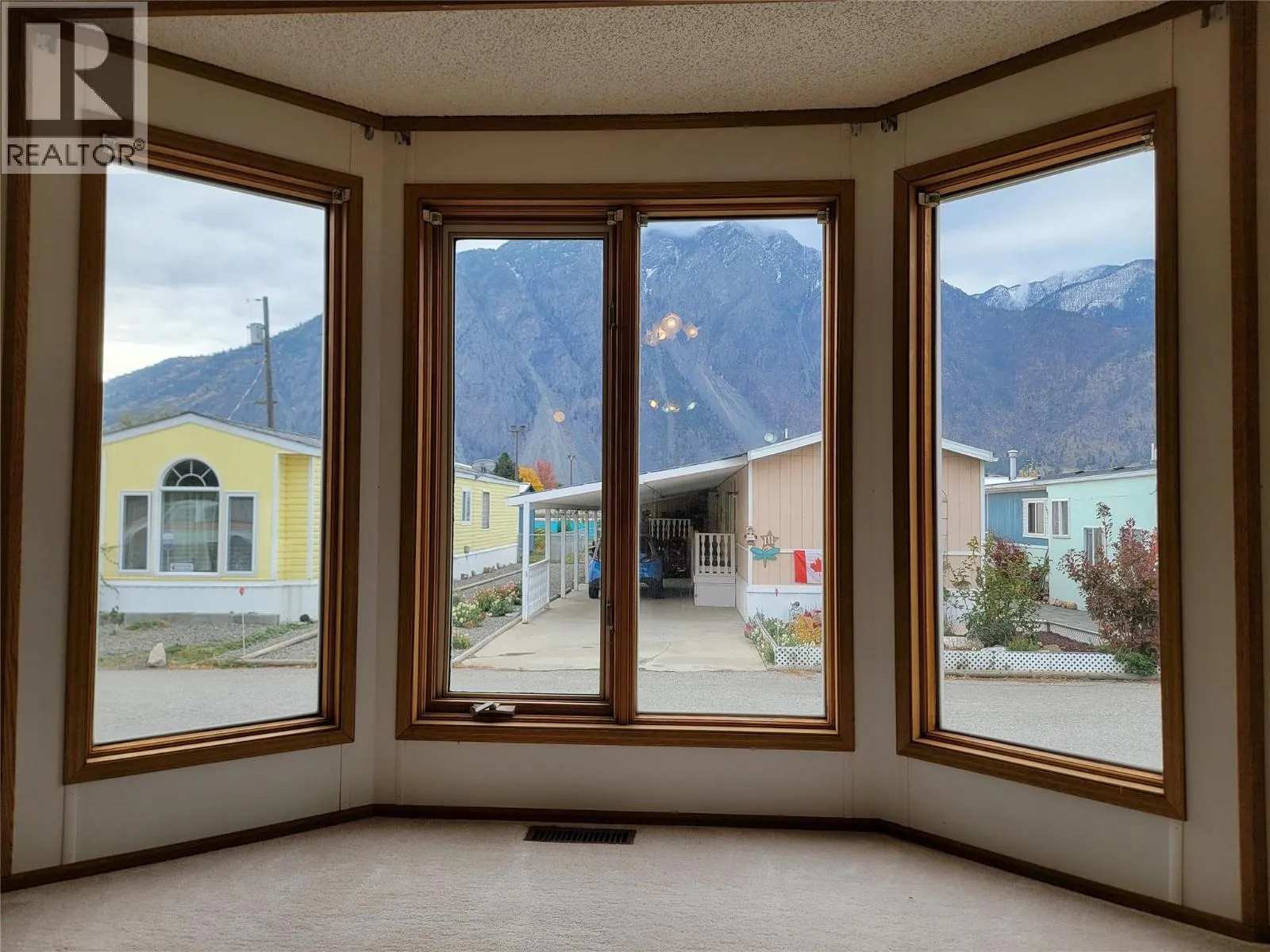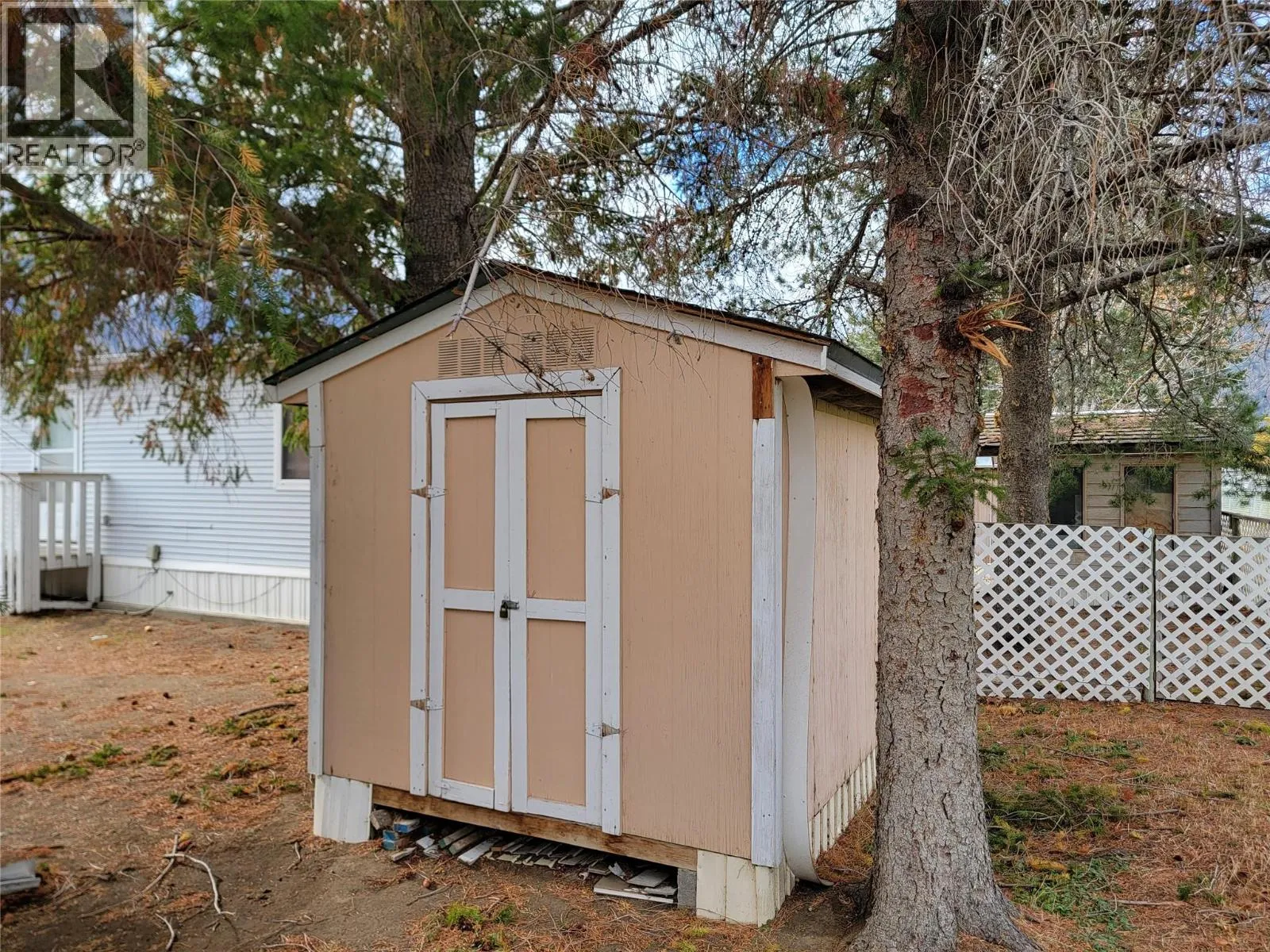 K Mountain Mobile Home Park - beautiful central location with no age restrictions and pet friendly! This home is close to schools, shopping, and the rec centre (bowling, skating, fitness and more!). 2 bed 1 bath mobile home features carport, covered deck, insulated storage room with standup freezer, and storage shed. Stunning views of K-Mountain from the living room window. Large primary bedroom has double closet doors and bathroom tub has been adapted making it easier to step inside to shower. Gas furnace and central cooling for enjoyable living year round. Monthly pad fee of $524.17 includes water, sewer, garbage/recycling and snow removal. Measurements are approximate. (id:27476)