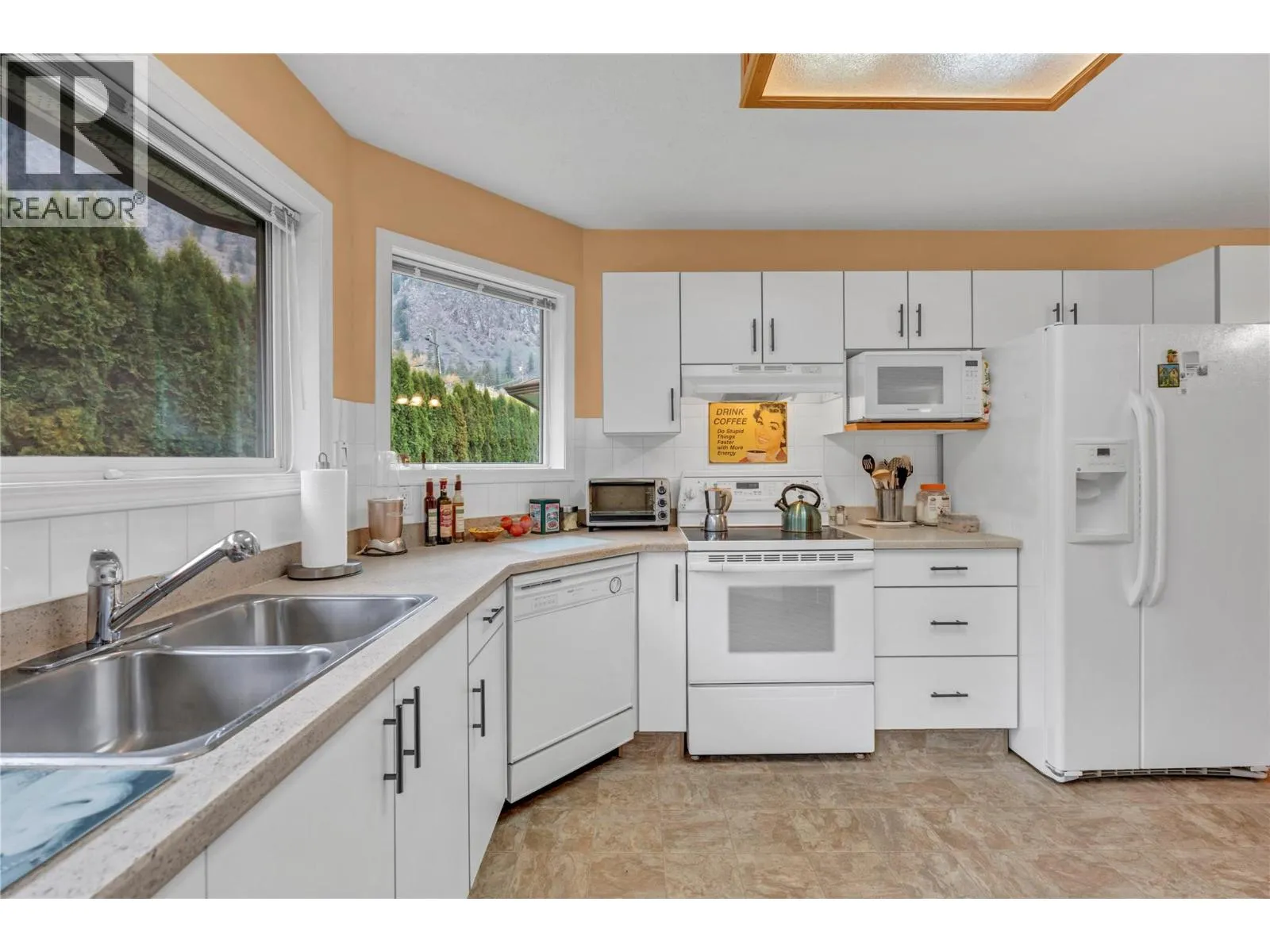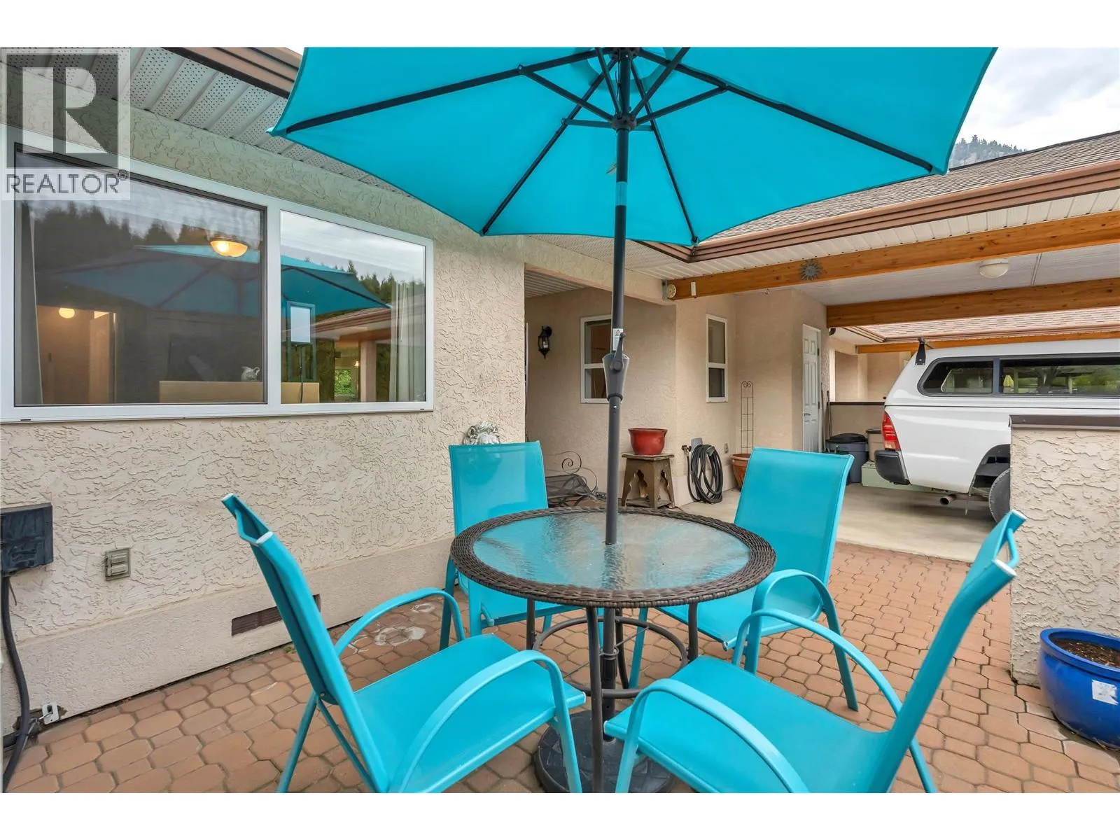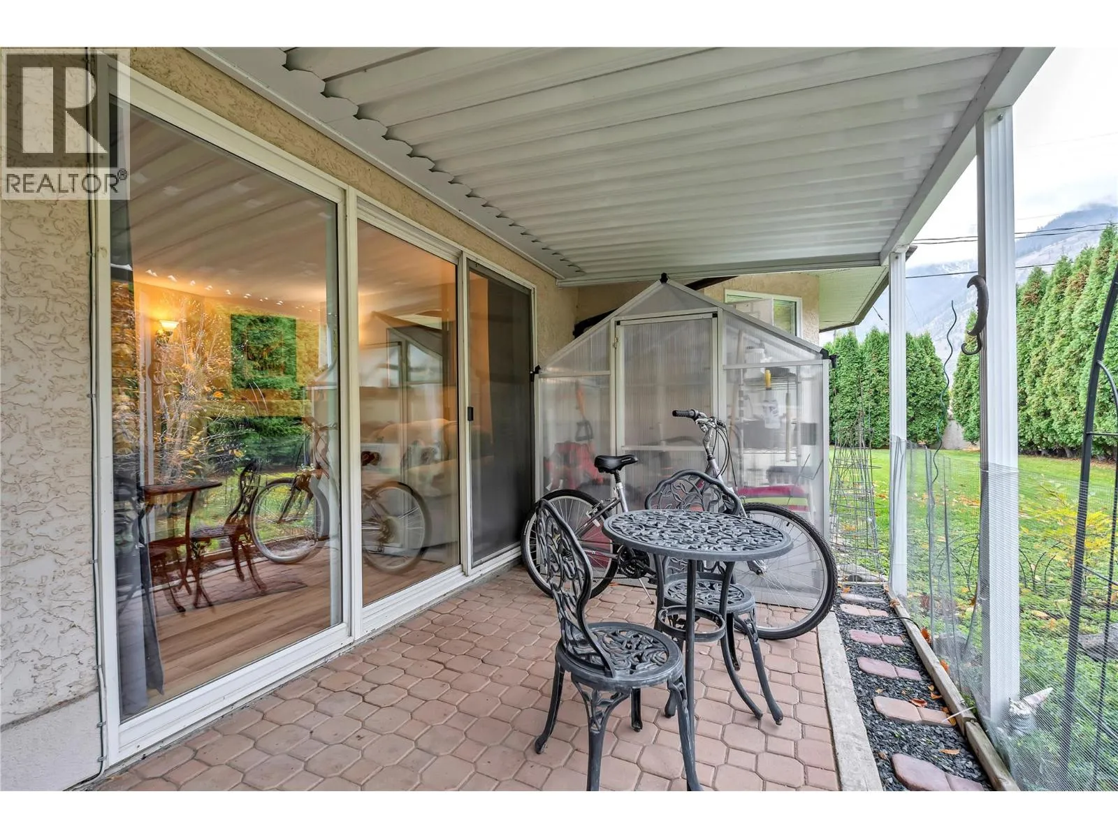 THE COMPLETE PACKAGE - 2 bed 2 bath townhouse, nearly 1200 SF, one level living. Ideal for those who wish for no stairs. Spacious open great room plan with fireplace, eating bar & bright open kitchen with bay window. Access private backyard through double sliding glass doors to quaint covered patio, grassy area & huge privacy hedge maintained by the strata corp. Backside of the building has a SW exposure which is bright and warm when you need it. Alternatively on the east side of home (front elevation) enjoy morning sun or afternoon shade in your private courtyard of patio stones & privacy walls. Park your vehicle in an ample carport & store your belongings in a generous storage locker adjacent to the front entry. So convenient all at grade level. Going back into the home you will experience larger than usual bedrooms, a walk-in closet for primary bedroom with lavish 4pc ensuite. Then 10x12 ft +, 2nd bedroom with ample closet space. 3-piece main bathroom for guests, this is a complete home. Also, a laundry room on the main & tall dry crawl space under. Large common central lot to the 6-unit complex. Convenient setting as it is close to the crossroads of the West Coast and the South Okanagan. Seconds away from the village of Keremeos and all it has to offer. Headed to Penticton or Osoyoos? Consider your journeys under 40 min. Self directed complex, 300/m fees, 55+ age restriction and pets are welcome. Checkout this ideal offering. You will not be disappointed (id:27476)