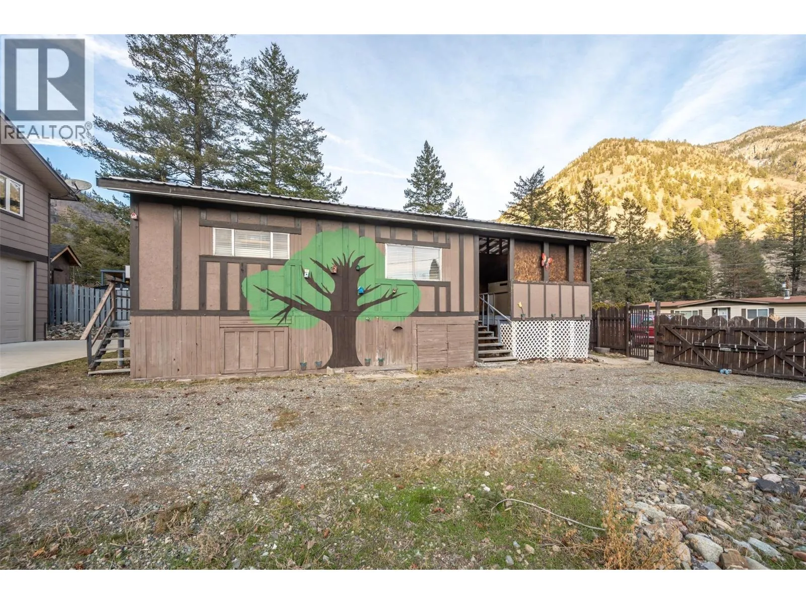 Gorgeous mountain views & versatility! This home offers a flexible layout with finished living space on the upper floor and below. Whether you are seeking room for extended family, income opportunities, or a home-based business, this property checks all the boxes. The main living area features an open-concept floor plan filled with an abundance of natural light. The spacious kitchen is well appointed with ample cupboard and counter space, a large island with additional storage, bamboo flooring, and convenient access to 1 of the 2 covered decks. The inviting living room is highlighted by large windows and oak hardwood flooring, while the primary bedroom and main bathroom are thoughtfully set apart from the living space for added privacy. The lower level includes a bedroom and bathroom along with an impressive 1008 square foot heated shop. With 11-foot ceilings, 200-amp service, 220 power, a concrete floor, and a 10 x 10 overhead door, this space presents huge potential for a secondary suite, passive income opportunity, Airbnb, home-based business, or workshop. Outside, the fully fenced 0.22-acre lot is designed for both storage and enjoyment, featuring a 22 x 40 storage building, tons of parking, covered RV parking, three gated access points, a powered 12 x 12 garden shed and garden space. Centrally located, this home is just 45 minutes from Penticton and Oliver and only a short 10-minute drive to downtown Keremeos. (id:27476)