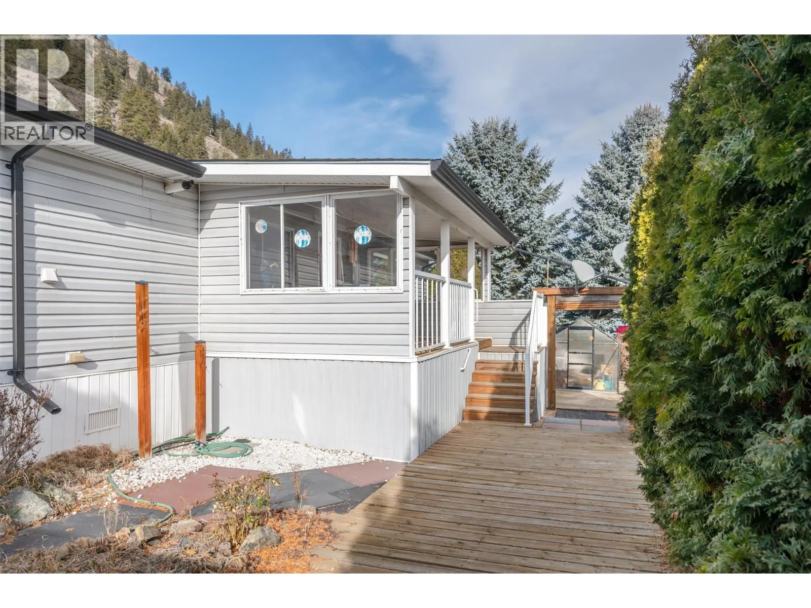Welcome to this beautiful 2-bed, 2-bath home with stunning valley views. Located in Ridgeview Estates offering on site management, low pad rents, close proximity to shops and the river, and just 25 minutes to Penticton this home features an open floor plan, French doors to a large deck overlooking a gorgeous landscaped yard, plus central air for cool summer comfort. Homes this nice are rare plan your viewing soon. (id:27476)