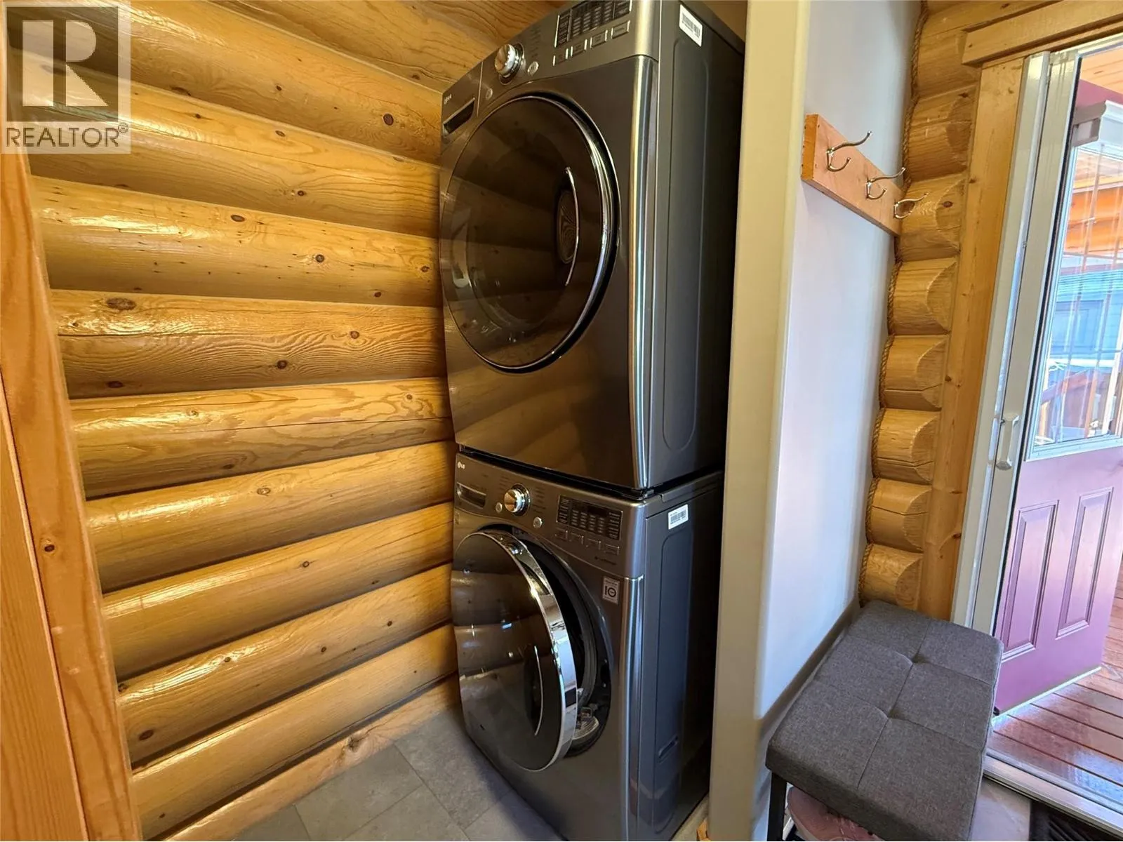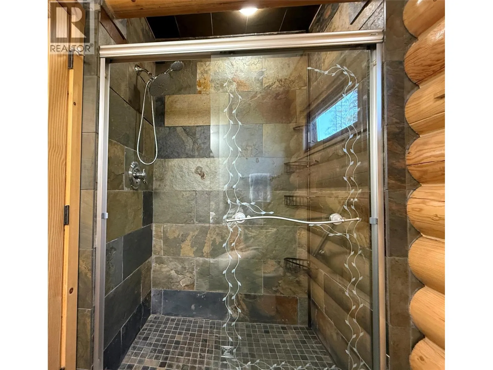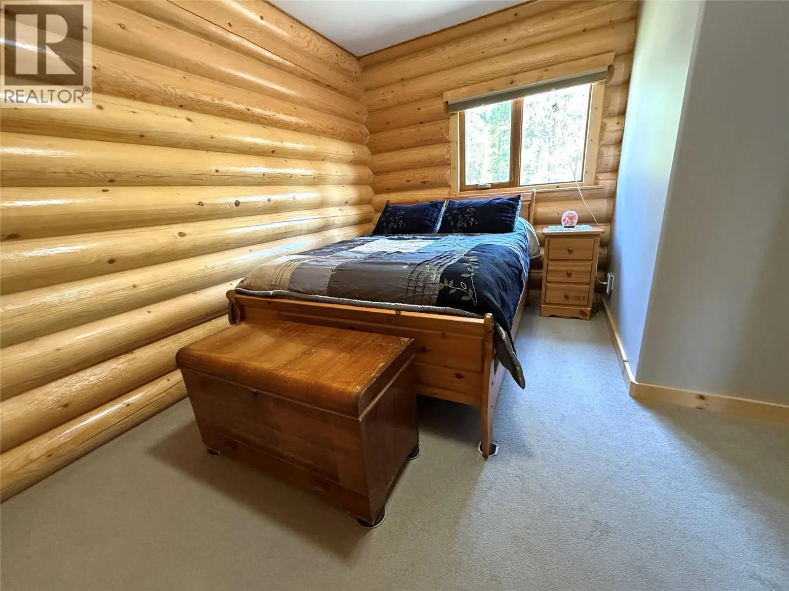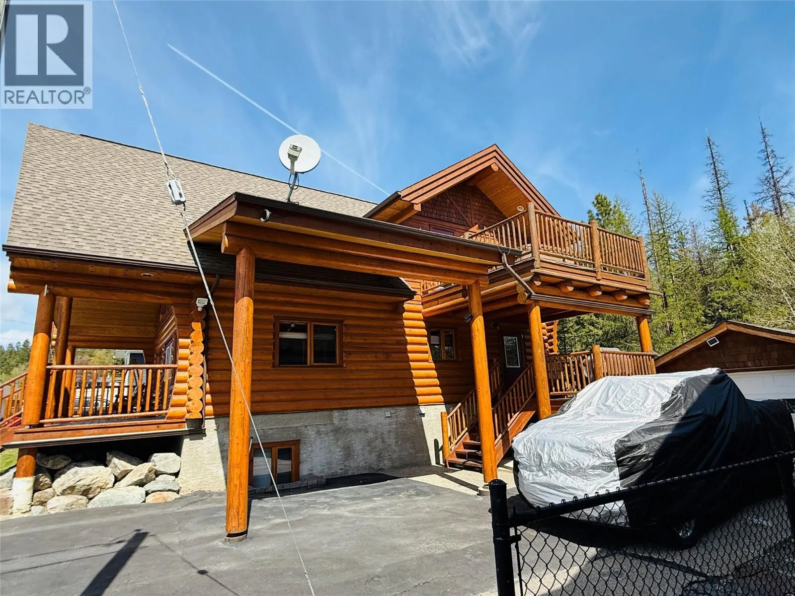 Welcome to this beautifully maintained, air-conditioned log home, nestled in the charming community of Marysville. Lovingly cared for since the day it was built, this home offers a perfect blend of rustic charm and modern comfort. The open-concept main floor boasts soaring vaulted ceilings, a gorgeous kitchen with granite countertops, a spacious pantry, main floor laundry, bedroom, a stylish 3-piece bathroom with custom tilework, plus direct access to two of the three inviting decks. Upstairs, the master suite offers a true retreat: a loft-style bedroom with a cozy sitting or dressing area, walk-in closet, a luxurious ensuite with a soaker tub and walk-in shower, plus private access to top deck complete with a hot tub â perfect for relaxing under the stars. The walkout lower level features in-floor heating, two additional bedrooms, a 4-piece bathroom, and a welcoming family room with a wood stove. Flex space functions as an office currently but rough plumbing makes it ideal for a future second kitchen if desired. Outside, you'll find an insulated single garage/shop, a single carport, abundant off-street parking, in-ground sprinklers, a water softener, and a fenced rear yard. The exterior was freshly stained in 2022, ensuring beauty and protection for years to come. Direct access to the Rails to Trails pathway out your back yard, minutes to multiple golf courses and endless recreation opportunities. This home is priced to sell so book your showing soon!! (id:27476)