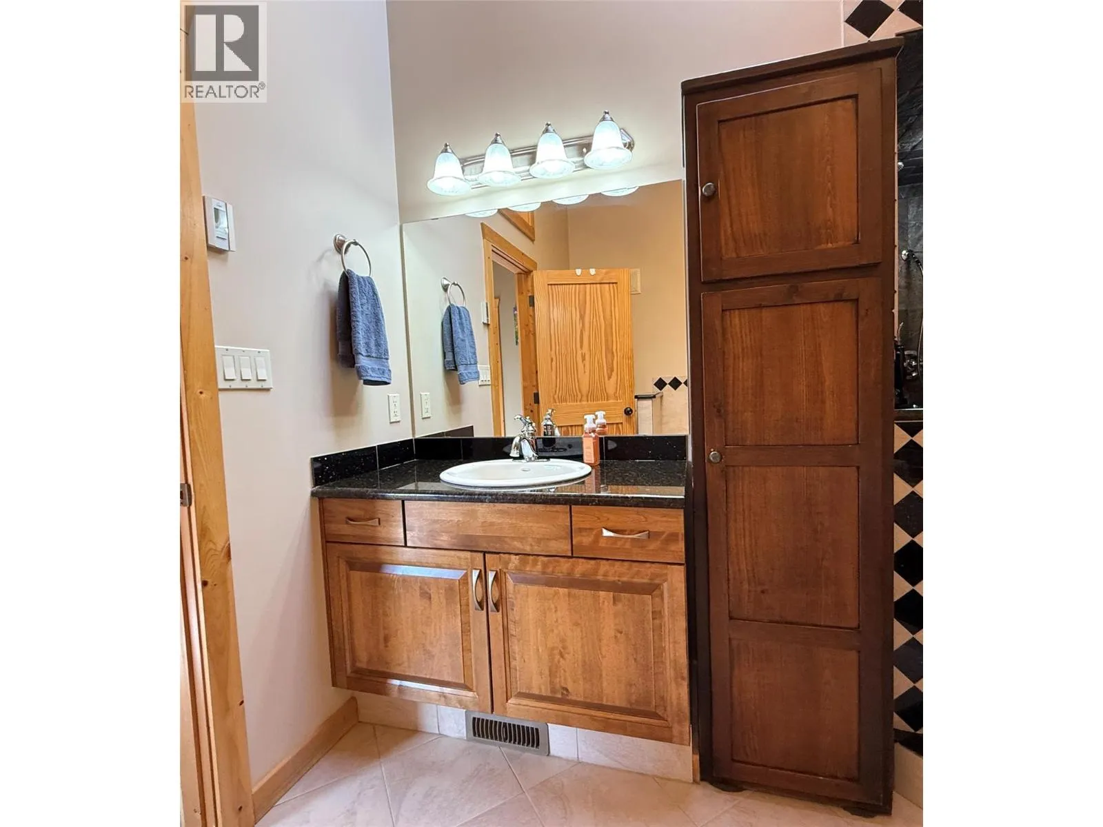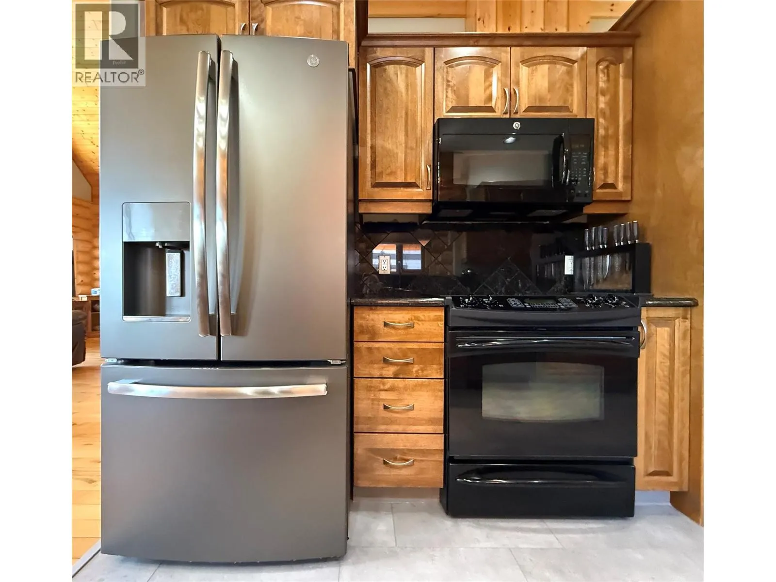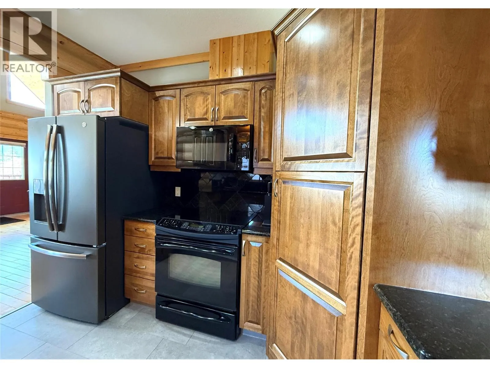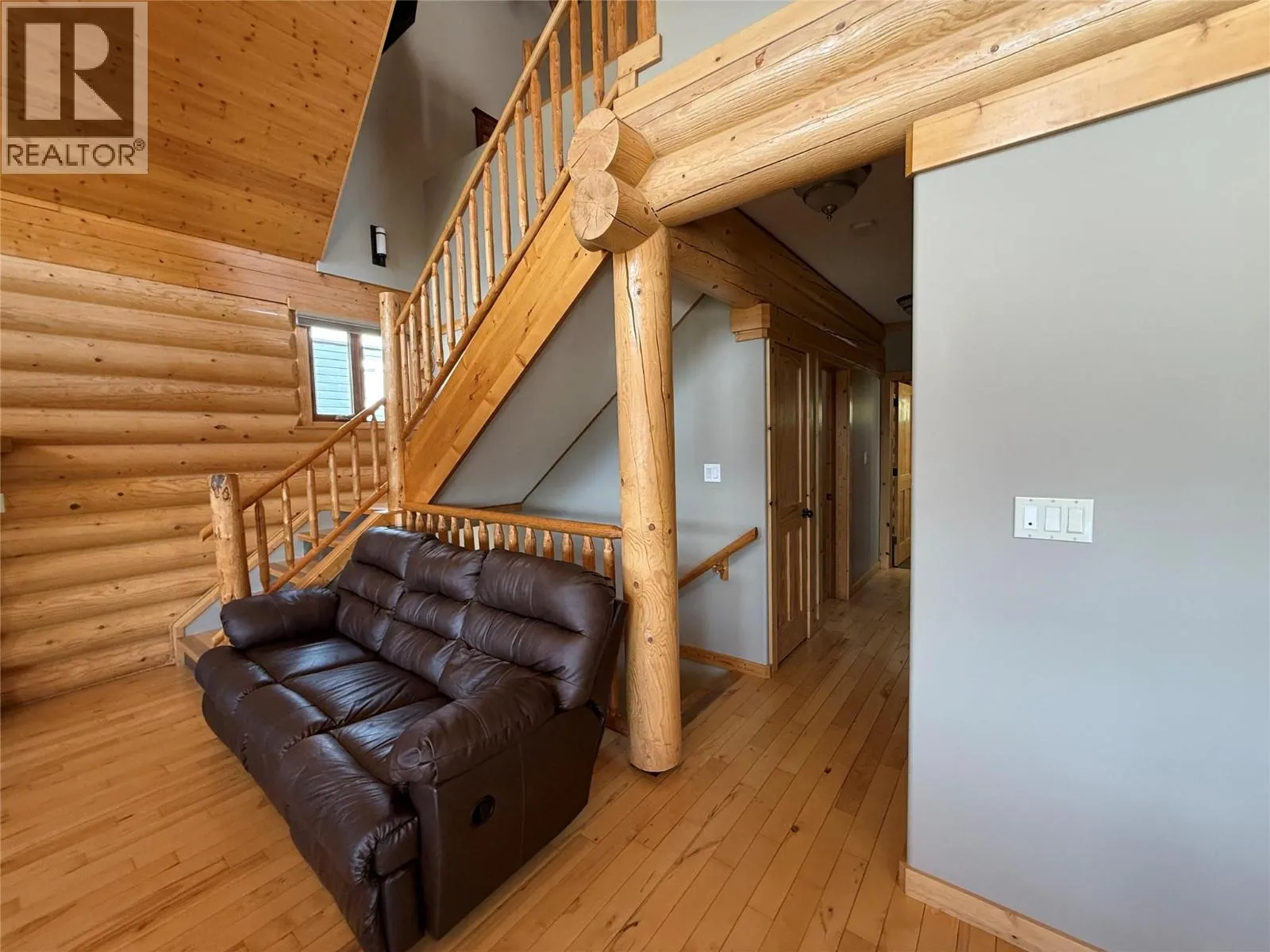 Welcome to this beautifully maintained, air-conditioned log home, nestled in the charming community of Marysville. Lovingly cared for since the day it was built, this home offers a perfect blend of rustic charm and modern comfort. The open-concept main floor boasts soaring vaulted ceilings, a gorgeous kitchen with granite countertops, a spacious pantry, main floor laundry, bedroom, a stylish 3-piece bathroom with custom tilework, plus direct access to two of the three inviting decks. Upstairs, the master suite offers a true retreat: a loft-style bedroom with a cozy sitting or dressing area, walk-in closet, a luxurious ensuite with a soaker tub and walk-in shower, plus private access to top deck complete with a hot tub â perfect for relaxing under the stars. The walkout lower level features in-floor heating, two additional bedrooms, a 4-piece bathroom, and a welcoming family room with a wood stove. Flex space functions as an office currently but rough plumbing makes it ideal for a future second kitchen if desired. Outside, you'll find an insulated single garage/shop, a single carport, abundant off-street parking, in-ground sprinklers, a water softener, and a fenced rear yard. The exterior was freshly stained in 2022, ensuring beauty and protection for years to come. Direct access to the Rails to Trails pathway out your back yard, minutes to multiple golf courses and endless recreation opportunities. This home is priced to sell so book your showing soon!! (id:27476)