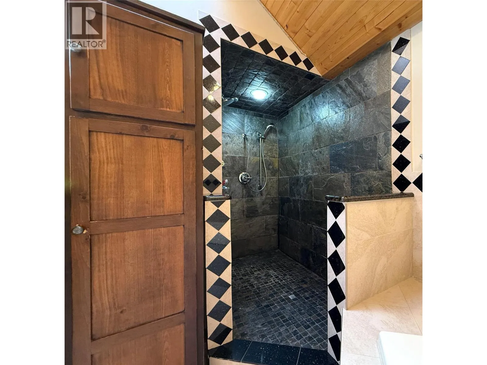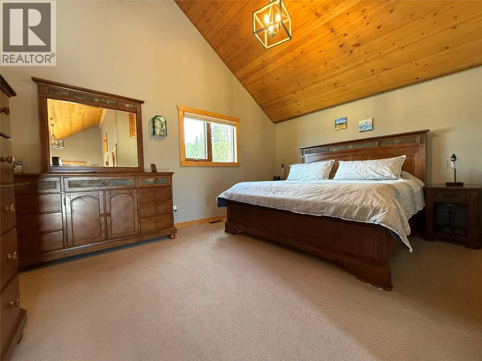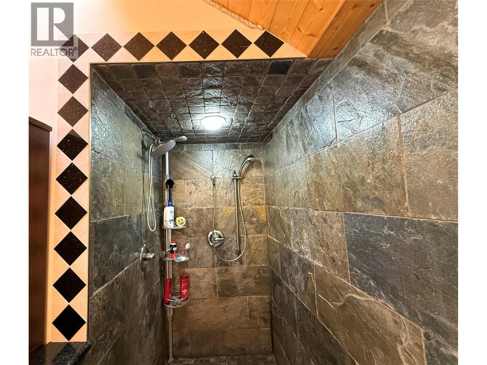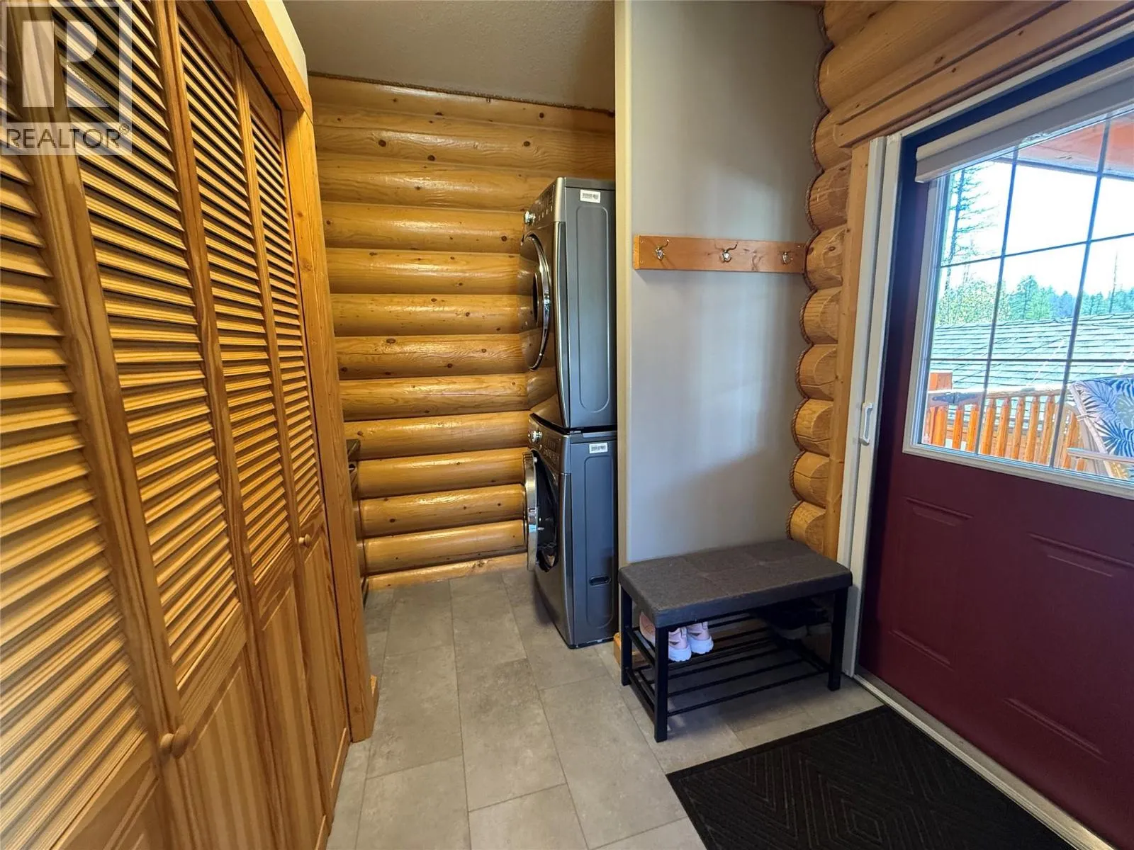 Welcome to this beautifully maintained, air-conditioned log home, nestled in the charming community of Marysville. Lovingly cared for since the day it was built, this home offers a perfect blend of rustic charm and modern comfort. The open-concept main floor boasts soaring vaulted ceilings, a gorgeous kitchen with granite countertops, a spacious pantry, main floor laundry, bedroom, a stylish 3-piece bathroom with custom tilework, plus direct access to two of the three inviting decks. Upstairs, the master suite offers a true retreat: a loft-style bedroom with a cozy sitting or dressing area, walk-in closet, a luxurious ensuite with a soaker tub and walk-in shower, plus private access to top deck complete with a hot tub â perfect for relaxing under the stars. The walkout lower level features in-floor heating, two additional bedrooms, a 4-piece bathroom, and a welcoming family room with a wood stove. Flex space functions as an office currently but rough plumbing makes it ideal for a future second kitchen if desired. Outside, you'll find an insulated single garage/shop, a single carport, abundant off-street parking, in-ground sprinklers, a water softener, and a fenced rear yard. The exterior was freshly stained in 2022, ensuring beauty and protection for years to come. Direct access to the Rails to Trails pathway out your back yard, minutes to multiple golf courses and endless recreation opportunities. This home is priced to sell so book your showing soon!! (id:27476)