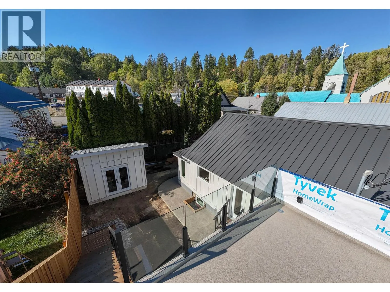 Discover this beautifully renovated, elegant home in Kimberley, perfectly situated in the heart of downtown. Featuring 3 bedrooms and 2 modern bathrooms this bright and airy home offers an open concept design with stunning exposed beams. A large entrance welcomes you into the home, leading to a spacious living room, and the gourmet kitchen complete with custom cabinets, ample quartz counters, stainless appliances including a gas stove make this space a chef's dream. The fully renovated basement has a spacious bedroom, large family room with a wet bar, a washroom with walk in shower, laundry room complete with custom cabinetry, storage rooms and more. Enjoy breathtaking mountain views from the rooftop deck, ideal for relaxing or entertaining. This home was taken down to the studs, and the list of improvements is nearly endless.The renovations include new windows, siding, roof, insulation, water main, sewer, plumbing and electrical ( 200 amp service), water heater, furnace, heat pump, air cleaner, ductwork, luxury vinyl plank flooring and more. Other amenities include a double garage with 11' ceilings and oversized door, 100 amp service and reznor gas heater, and a versatile studio space with 60 amp service. Garage and deck siding is in the process of being completed. Don't miss your chance to own a stylish and functional retreat in one of BC's most sought after locations - call your Realty Professional today! (id:27476)