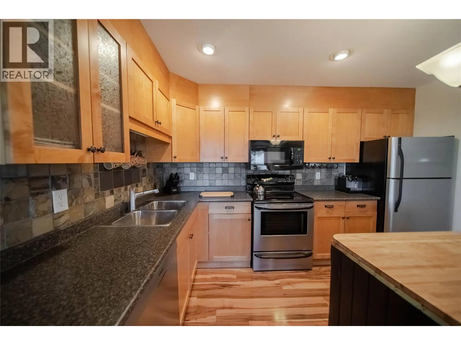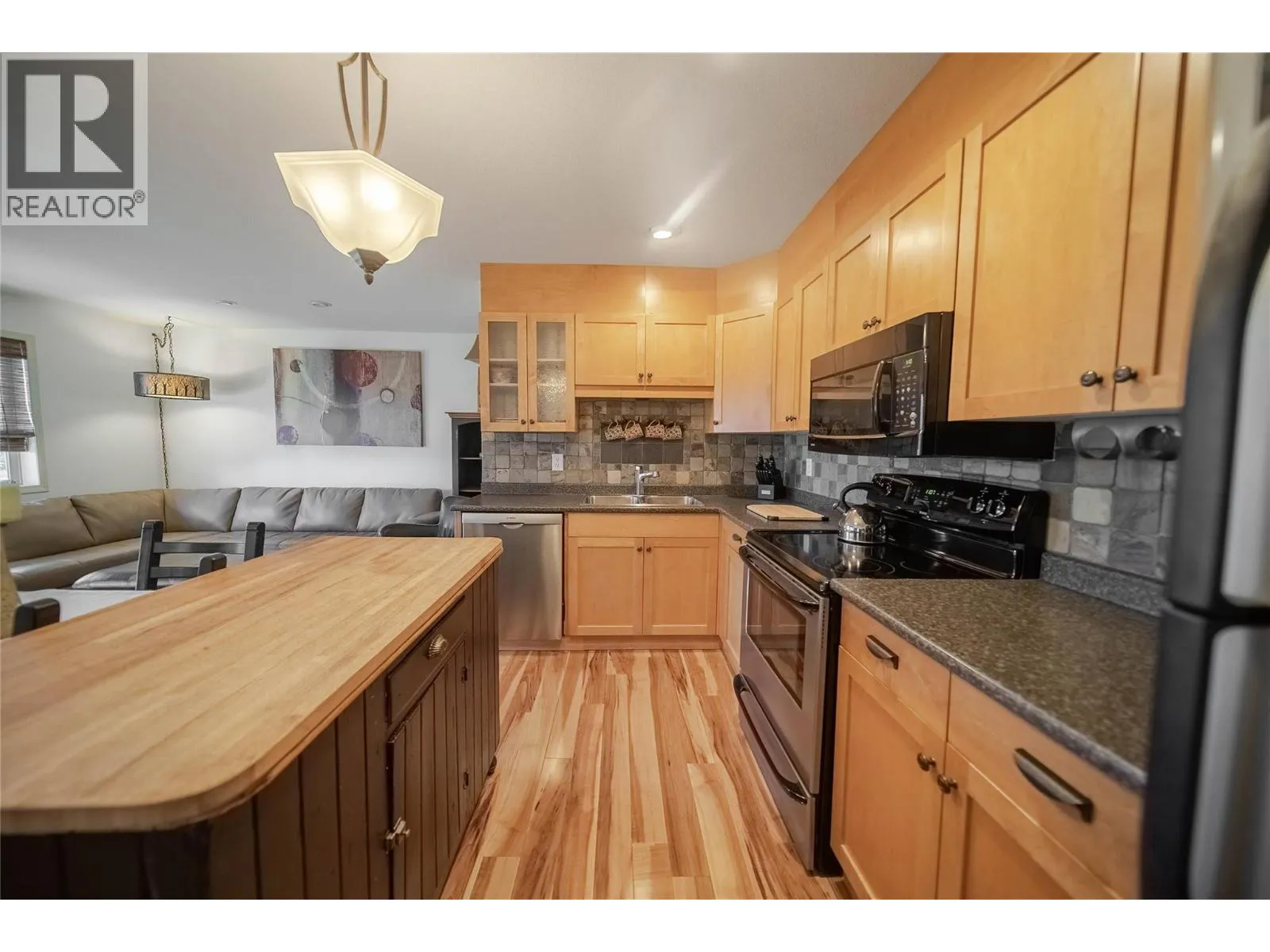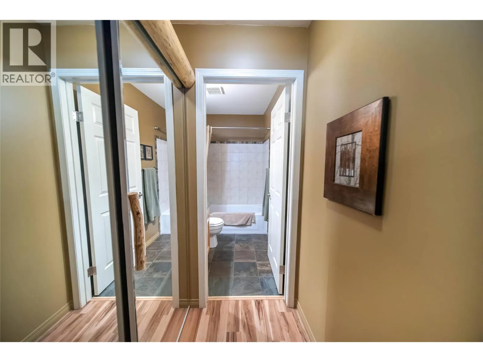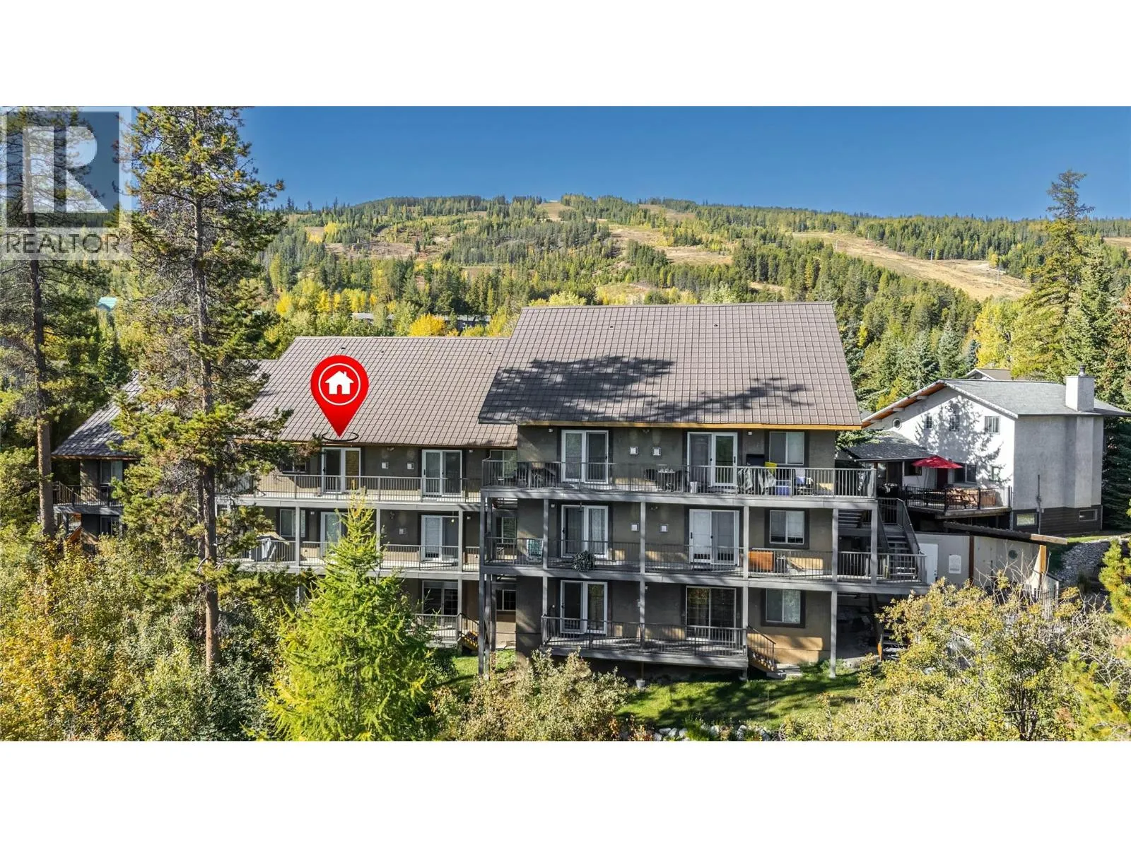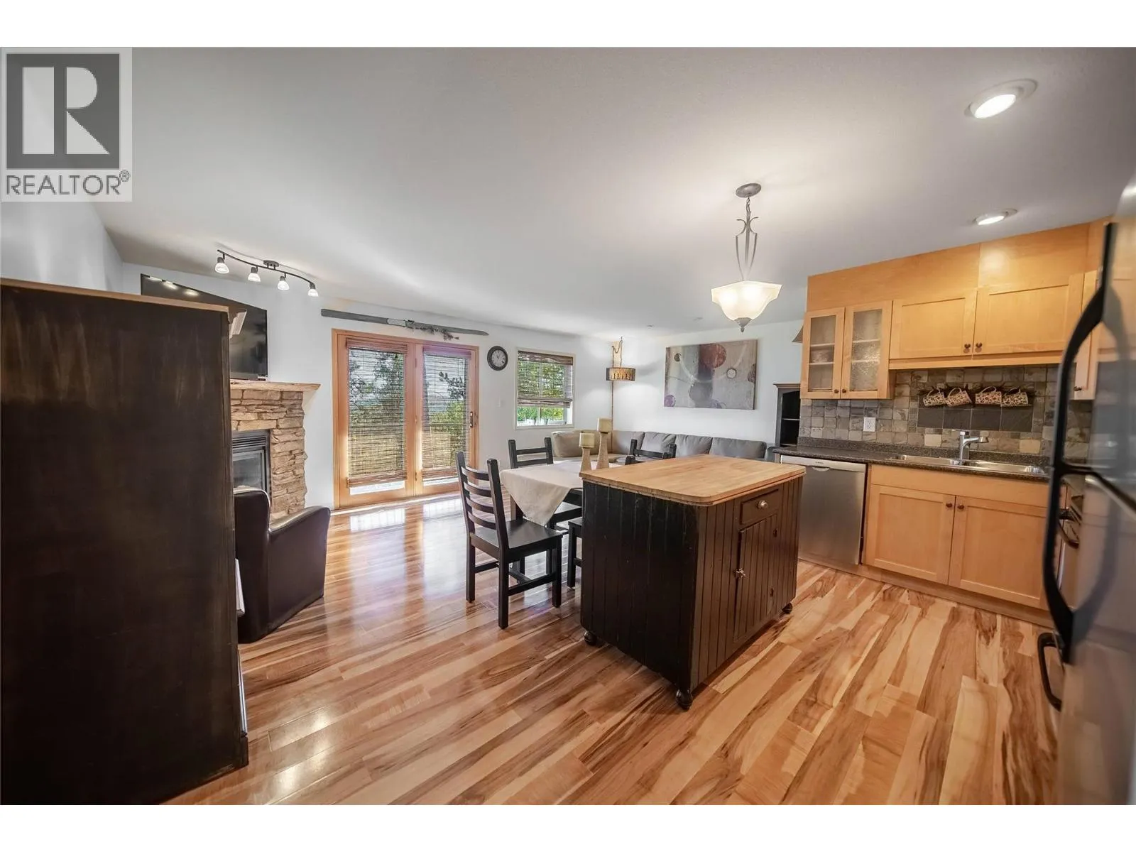 Welcome to your dream alpine escape! This top-floor 2-bedroom, 2-bathroom condo offers breathtaking panoramic mountain views and ski-in/ski-out convenience. Step inside to find an inviting open-concept living space featuring rich hardwood floors, a cozy fireplace, and in-floor heating for year-round comfort. The fully furnished interior blends mountain charm with modern elegance, creating a warm and welcoming atmosphere from the moment you arrive. The kitchen is well-equipped for entertaining, and the private balcony is the perfect spot to take in the million-dollar views of the surrounding peaks. On top of all that, there is plenty of storage with a spacious storage room and ski locker. After a day on the slopes, relax in the common area hot tub or unwind fireside with friends and family. With its unbeatable location, premium finishes, and stunning vistas, this condo is the perfect mountain home or investment opportunity. (id:27476)