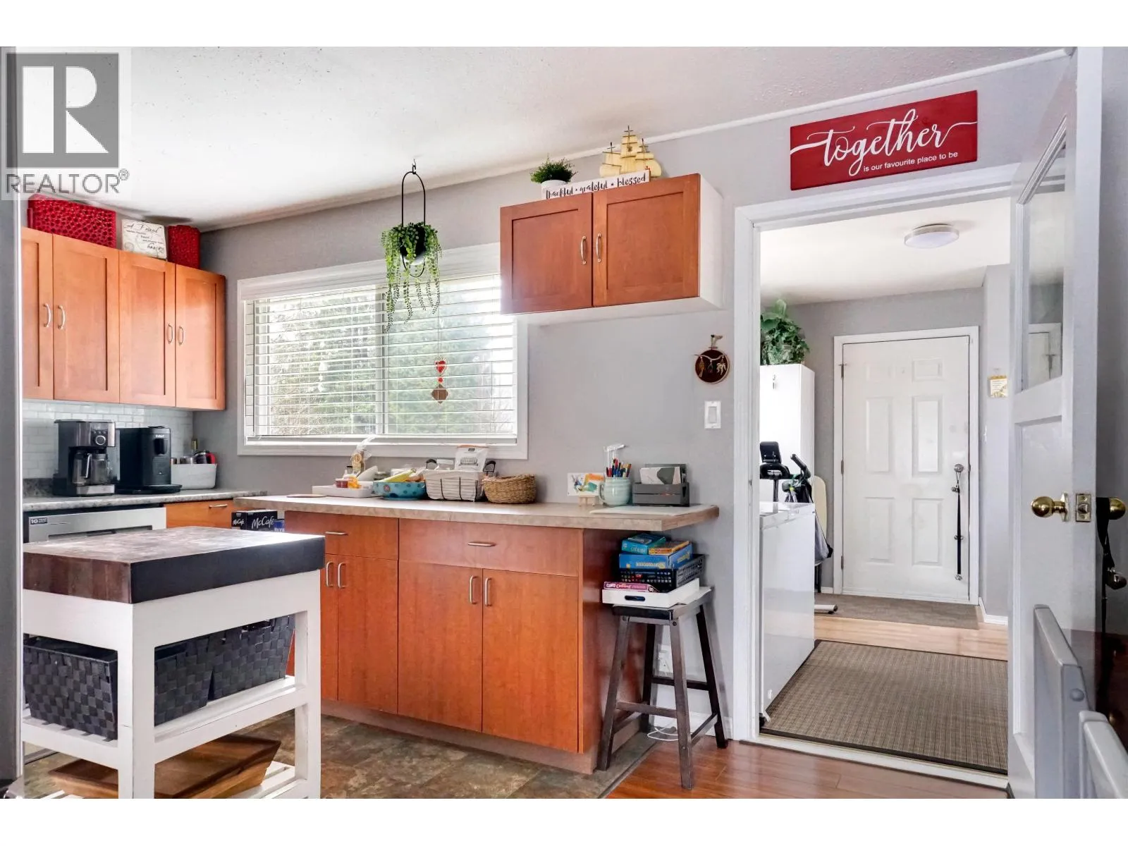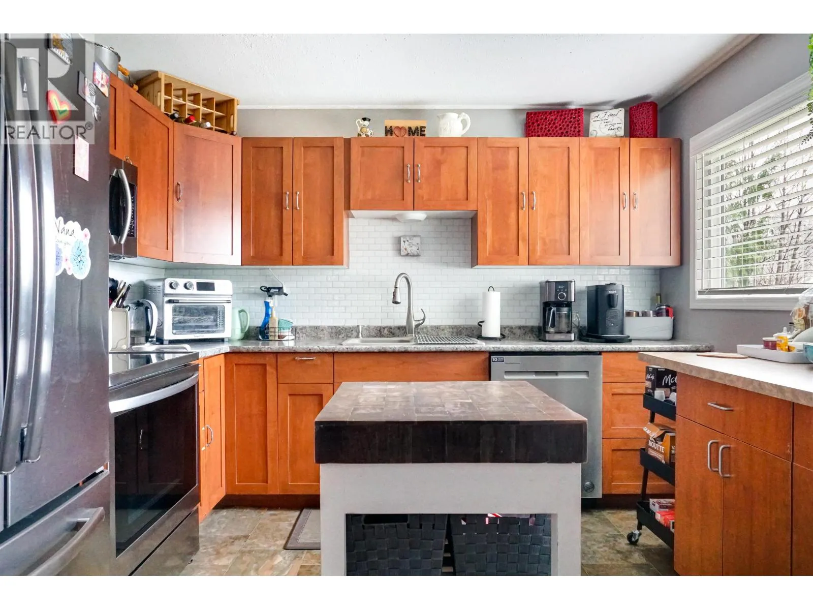 Move in ready, two bedroom, one bathroom home with modern updates throughout. This meticulously-maintained, 995 sq. ft. one-level residence boasts a renovated kitchen with modem appliances, cozy gas fireplace, and spacious laundry/storage area. Enjoy peace of mind with electric baseboards and a new 2025 hot water tank. The property includes a 16' x 16' shop for hobbies, RV/boat parking along the side of the house, and a charming patio in the fully fenced yard ideal for kids or pets. Located on a quiet street, this home offers comfort and convenience for a smart start or easy downsize. (id:27476)