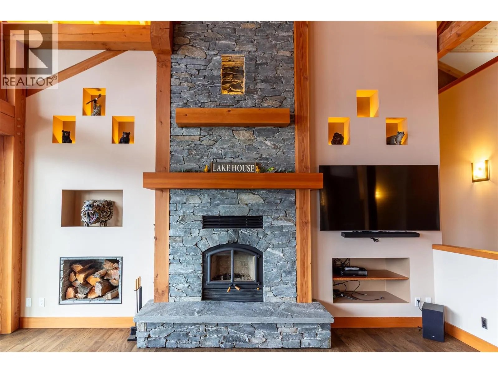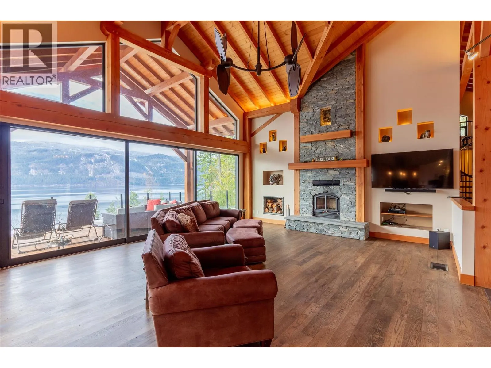 234 Walkers Lane is a custom-crafted home built in 2014 by Purcell Timber Frames. Situated on a 1-acre lot within a small, private community, this property offers exclusive access to a private beach, boat launch, and a mooring pin included with the sale. Designed for both comfort and sophistication, this single-level home features 3,050 sq. ft. of living space, plus an additional 250 sq. ft. of loft space. With 4 bedrooms and 2.5 bathrooms, the layout provides plenty of room to unwind and entertain. The moment you step inside, youâre greeted by expansive lake and mountain views pouring in through oversized windows and patio doors. Vaulted ceilings and an open-concept design enhance the natural light, showcasing the exceptional craftsmanship and high-quality materials throughout. The exterior is equally impressive. A 1,145 sq. ft. cedar deck stretches the full length of the homeâan ideal space to put your feet up and enjoy the panoramic scenery. The property offers level access, ample parking for guests, and a sunny grassy area with garden space along the north side. Every detail has been carefully considered, from the professionally designed indoor and outdoor lighting to the premium finishes, including hickory hardwood floors, cedar siding, a natural stone fireplace, and two custom wine racks. This home is truly a rare blend of luxury, comfort, and timeless design. (id:27476)