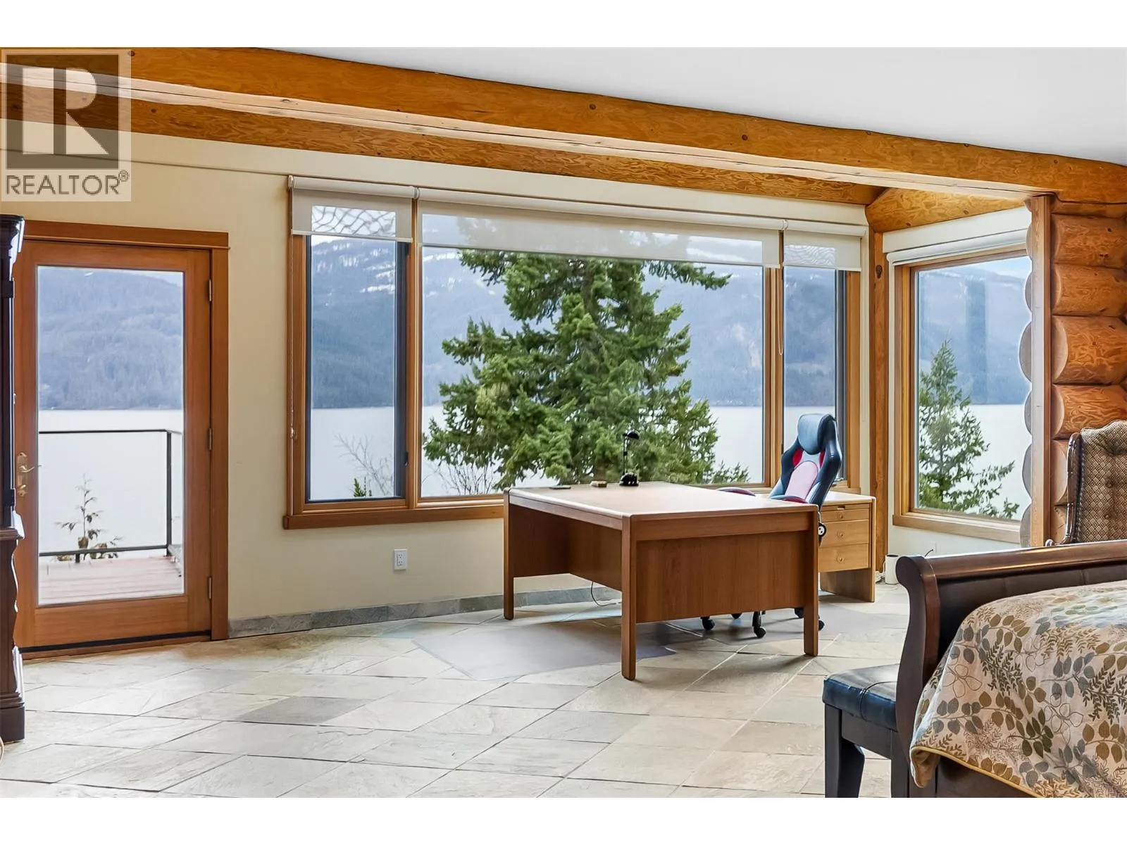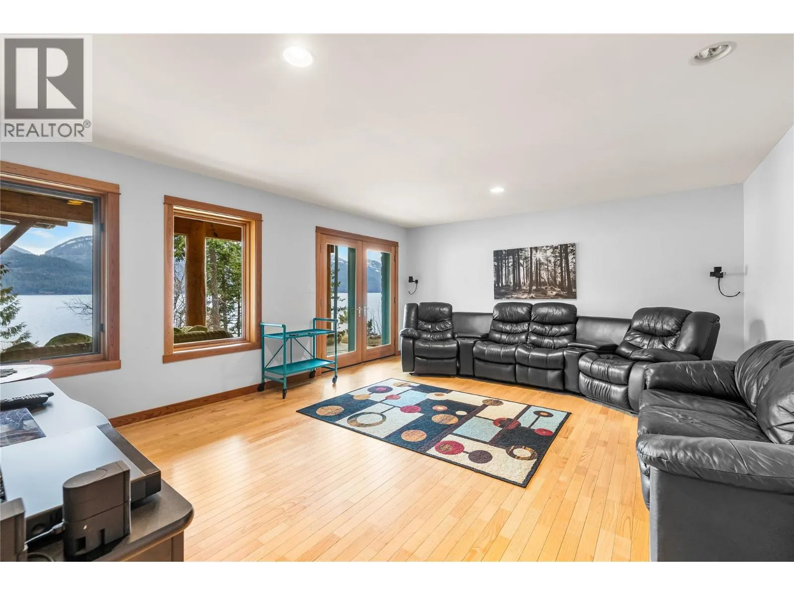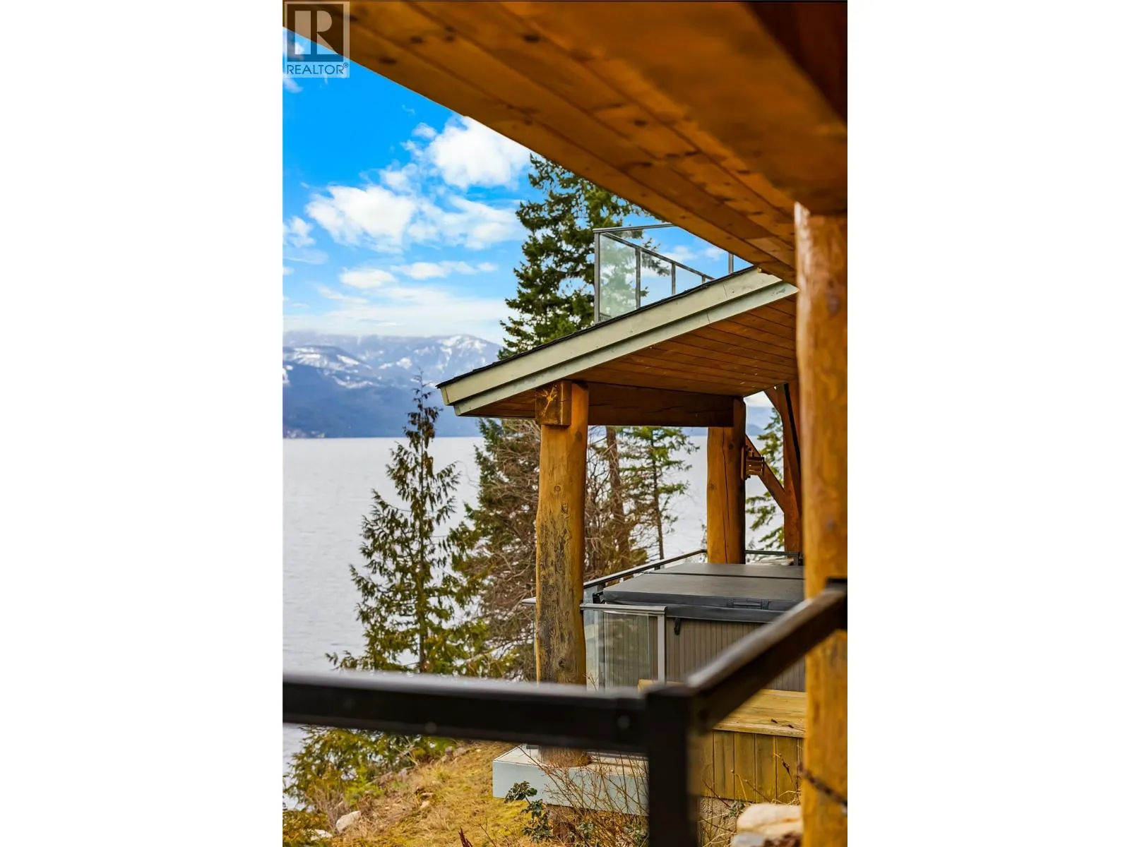 Experience exceptional lakefront living in this stunning 7,173 sq ft custom log home on Kootenay Lake, showcasing breathtaking views of the Kokanee Glacier and surrounding mountains. From the grand entry and soaring ceilings to expansive windows framing panoramic water vistas, every detail impresses. The main level features an open concept design with a high end kitchen, spacious living and dining areas, and a luxurious primary suite complete with a walk-in closet and spa inspired 7 piece ensuiteâall designed to capture the lake views. Radiant in-floor heating ensures year-round comfort. Upstairs offers two generous sized bedrooms; each with their own ensuite and a versatile flex room ideal for a media space, studio, or additional lounge. The fully finished walkout lower level is built for entertaining, with a games room, full bar, and garden doors leading to the lakeside hot tub. It also offers excellent potential for a private in-law or multigenerational suite with a kitchen already in place, plus abundant storage including a large cold room. Custom stairs provide seamless access to your expansive private lake frontage for boating, swimming, and relaxing. Multiple patios invite you to soak in the scenery, while the attached double garage, separate workshop, and sun-filled yard with garden space complete this turnkey estate. This property is being offered fully furnished. Ideal as a private retreat, family estate, or boutique lodge style vacation resort, this exceptional home blends luxury, functionality, and the unmatched beauty of Kootenay Lake. This is a freehold title offering true flexibility. (id:27476)
