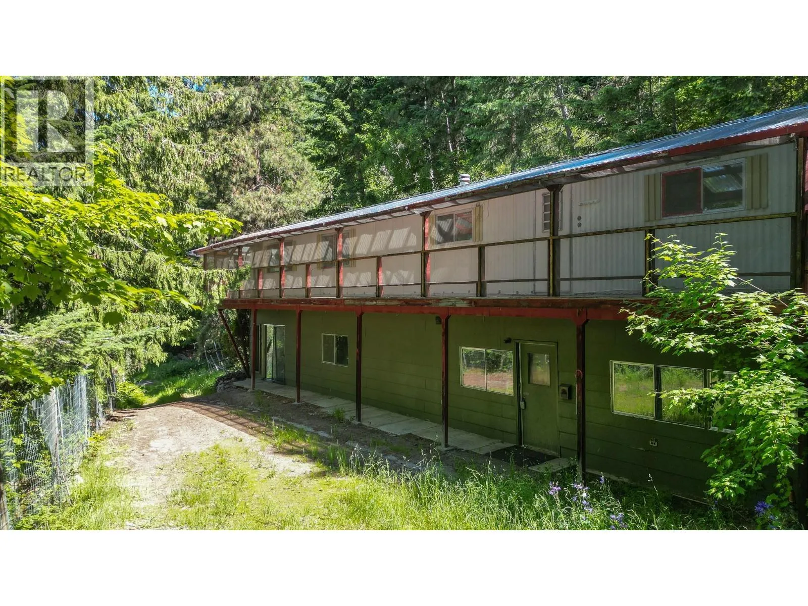 Private Kootenay Lake Getaway â 20 Minutes from Creston Looking for a quiet retreat by the lake? This property has two titles and offers privacy, nature, and convenience. Kuskanook Creek runs year-round alongside the property, and Kootenay Lake is just across the road. A quick two-minute walk takes you to a sandy beach, as well as Kuskanook Marina. The lower level has a walkout concrete basement with a family room, hobby space, plenty of storage and and a newer wood stove. Upstairs is a modular home with an open living room/dining area, kitchen, two bedrooms, the bathroom/laundry room, and a screened-in porch that spans the length of the home. Just beyond the main home is a cozy one bedroom cabin that is fully equipped with water, electricity, and a wood stove! Other features include: Fresh water year round from Kuskanook Creek, electrical updated in 2009, Detached workshop ready to be finish, and walking trails through the trees. With golfing and fishing nearby, this property is a great getaway. Come take a look! (id:27476)