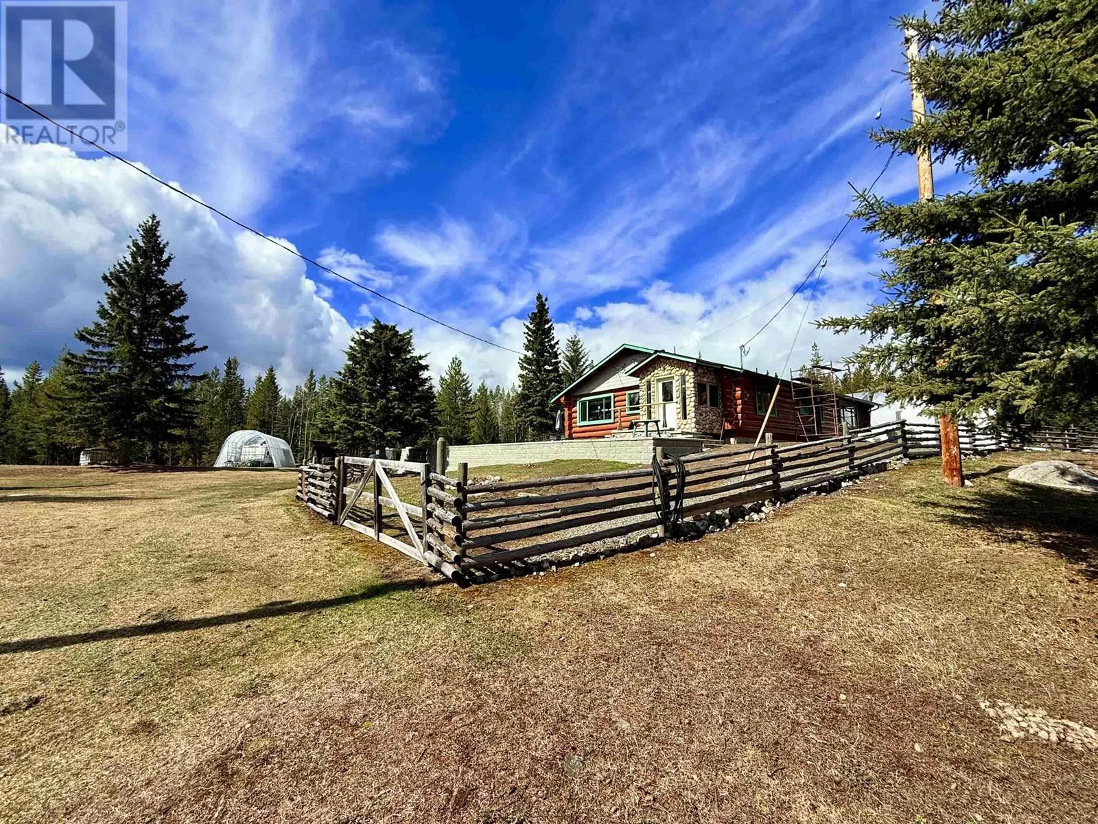 Set on 20.66 acres of private land along the quiet stretch of Spout Lake Rd, this 2-bedroom log rancher invites you to slow down and savour the gentle rhythms of country life. The cozy home has warmth and nostalgia, with a crackling wood stove and timeless country character throughout. Whether you're dreaming of tending a cottage garden, dabbling in hobby farming, or simply sipping morning tea while listening to the birdsong, this property is a storybook come to life. Come winter, the magic continues with snowy escapes to nearby Mount Timothy Ski Hill. This is true Cariboo magic. (id:27476)
