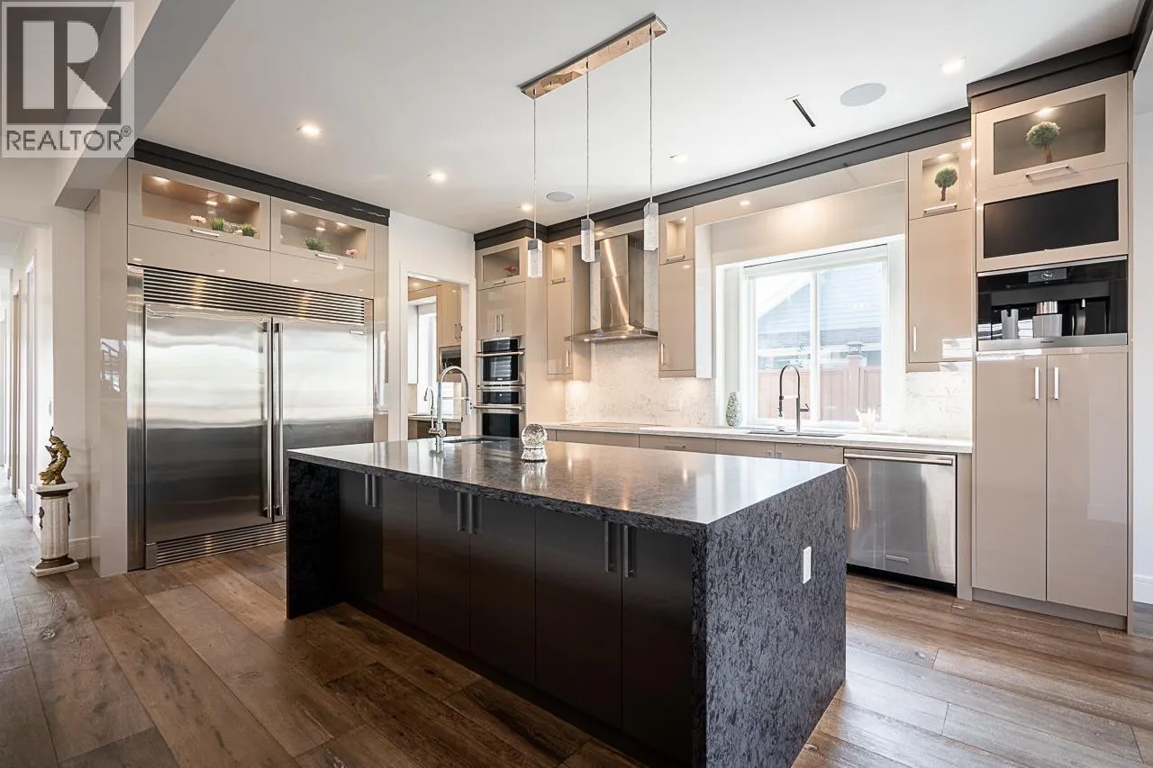 Discover this Custom-Built Luxury Home in the Heart of Ladner! Built by reputable local builder Ladner Homes, truly no expense was spared. The main floor offers an expansive chef's kitchen with oversized island, premium appliances, spice kitchen with walk-in pantry, large office, and a bright solarium for seamless indoor/outdoor living. Upstairs features 4 generous bedrooms, each with its own ensuite, while the third floor boasts a 764 sq. ft. loft with full bath, wet bar, and deck. A legal 2-bedroom coach home provides excellent income potential. Additional highlights include solar panels, A/C, radiant heating, Control4 Smart System, built-in dog house, and much more. Steps to schools, parks, and local amenities, this one-of-a-kind home is a must-see! (id:27476)