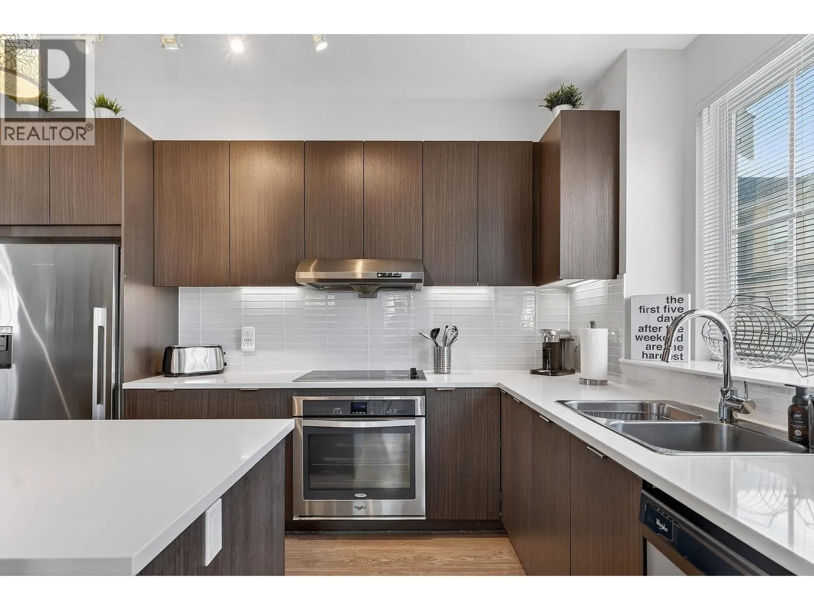 Spacious, 1570 square foot; 3 bedroom + 3 bathroom end-unit townhome at fabulous Fairwinds by Poygon! This bright, family-friendly home offers an open-concept main floor with 9 ft ceilings, laminate flooring, and windows on multiple sides for excellent natural light. Enjoy outdoor living on your private deck, plus the bonus of a large garage for parking, storage, bikes and gear. The gourmet kitchen features stainless steel appliances, stone countertops, and a central island - perfect for everyday living and entertaining. Fairwinds' seaside-inspired community is minutes to Hampton Cove Golf Course, Captain's Cove Marina, CEFA, and Nielsen Grove Elementary, with exclusive access to the 12,000+ sq. ft. Hampton Club: outdoor pool, basketball court, party rooms and more. (id:27476)