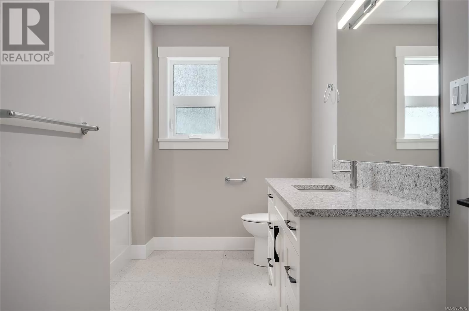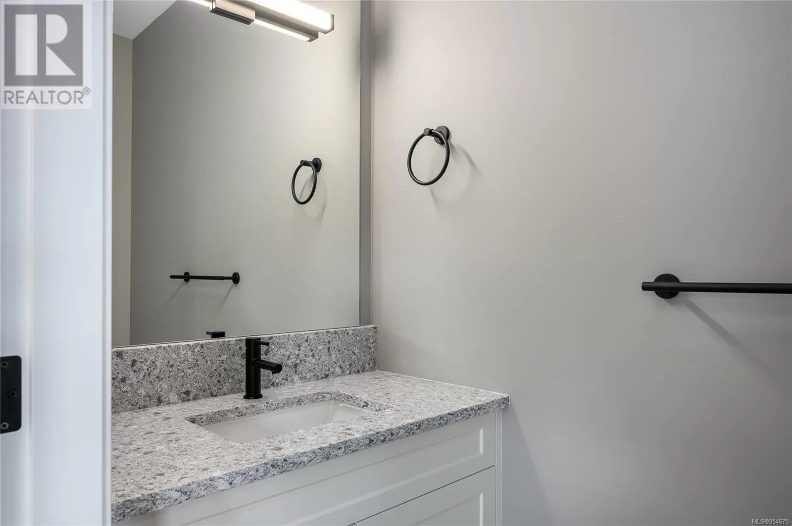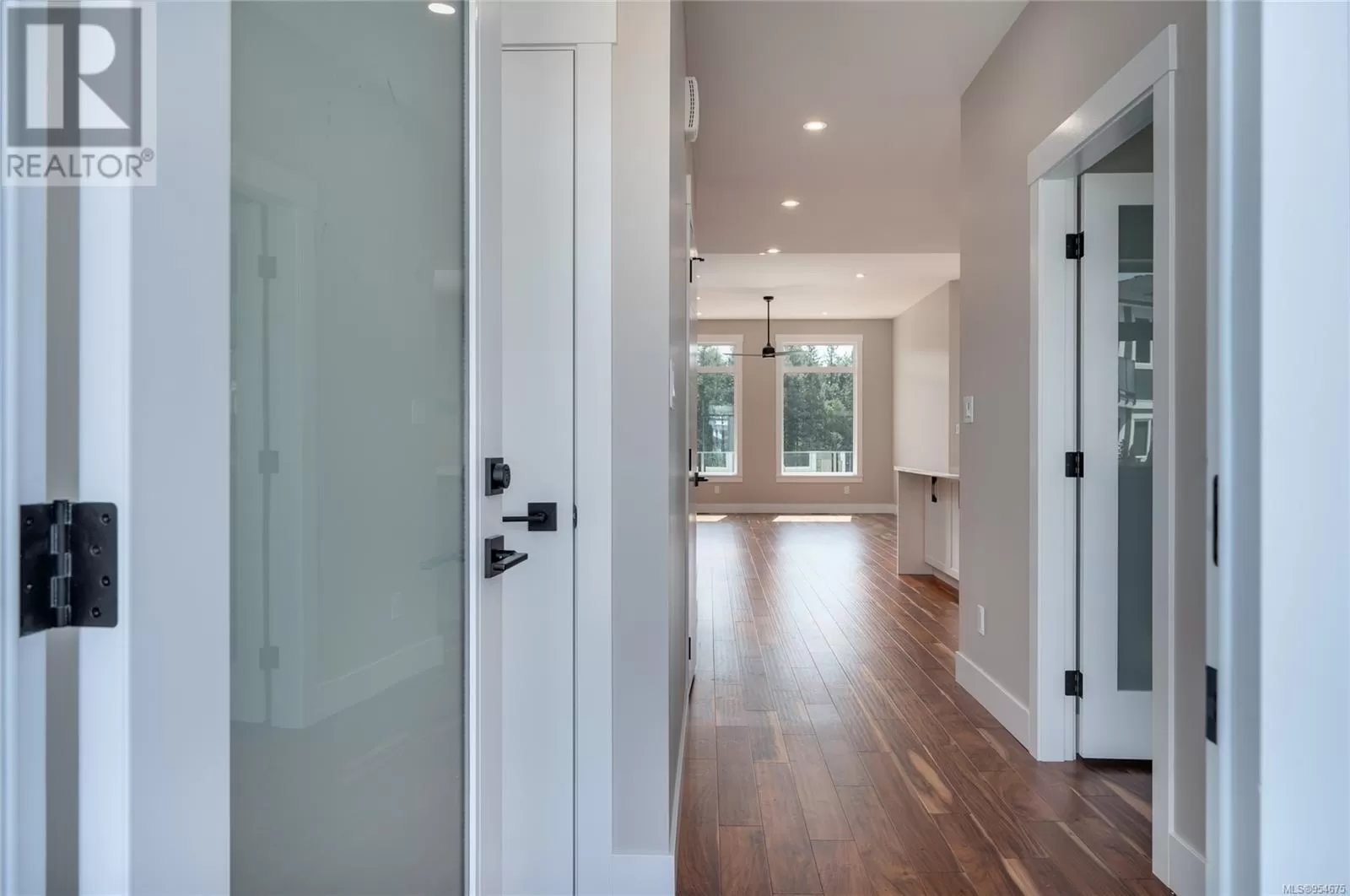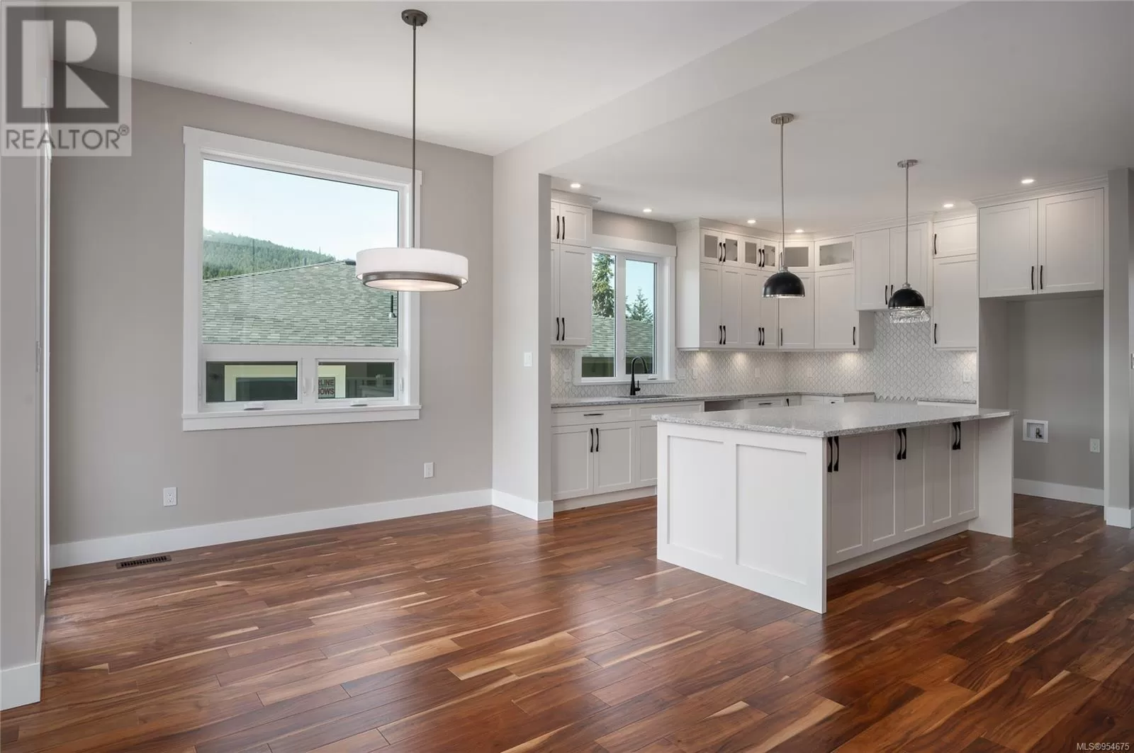 Dare to compare! Look at what this beautifully finished brand new home offers. Level entry with walk out lower level and over 2200 sq ft. High end finishing like extensive hardwood and heated tile floors. Heat pump, hot water on demand, quartz counters, gorgeous kitchen cabinetry, high ceilings , 5 piece ensuite and impressive feature wall fireplace. Big deck (plus patio space), lovely mountain views and lots of morning and evening sun. You'll love the landscaping in the quiet upscale development close to ferries, airport, golf, all marine activities etc. This home has it all!! (id:27476)