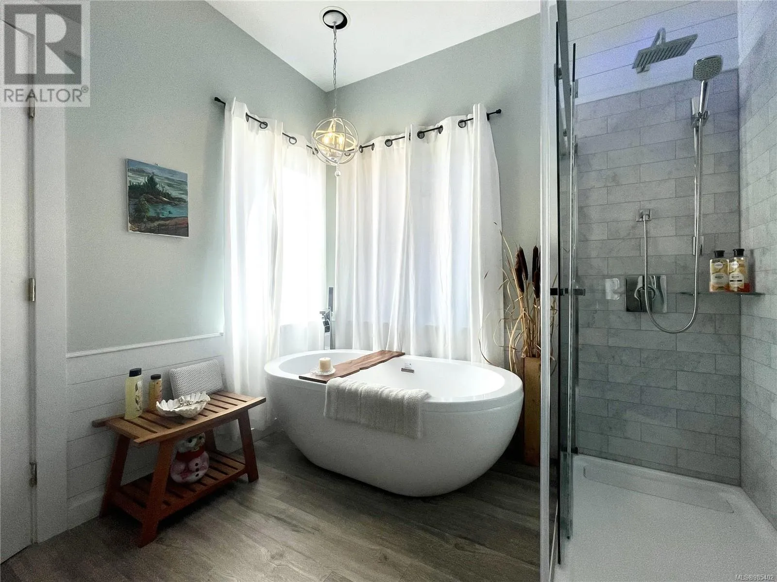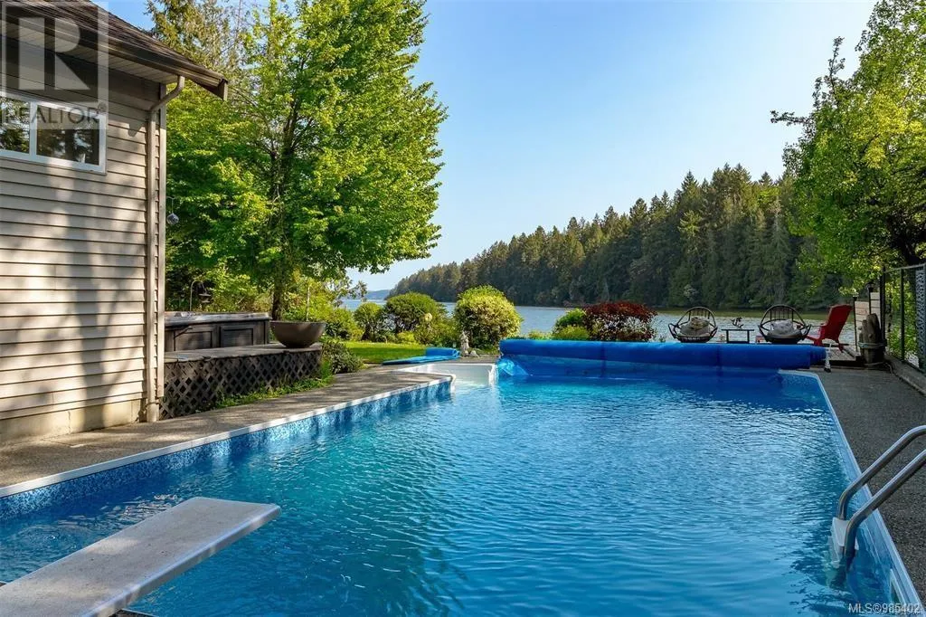 A walk-on waterfront oasis in a beautiful town of Ladysmith, Vancouver Island. This private, gated property features a rare government-licensed dock, perfect for boating enthusiasts, and a serene outdoor retreat with an in-ground swimming pool and a saltwater hot tub overlooking breathtaking ocean views. Inside, the open-concept kitchen flows effortlessly into the living and dining areas, making it ideal for entertaining. The home boasts 3 sunny and spacious bedrooms, including a primary suite with a luxurious freestanding bathtub and a walk-in closet. With 3 bathrooms, tigerwood exotic floor, and activity room over the double garage, every detail of this home is designed for function, comfort and elegance. Whether you're enjoying a swim, soaking in the hot tub, or kayaking/sailing from your private dock, this property offers a perfect blend of relaxation and recreation. This waterfront gem is a must-see. Book your private viewing today and step into coastal luxury. (id:27476)