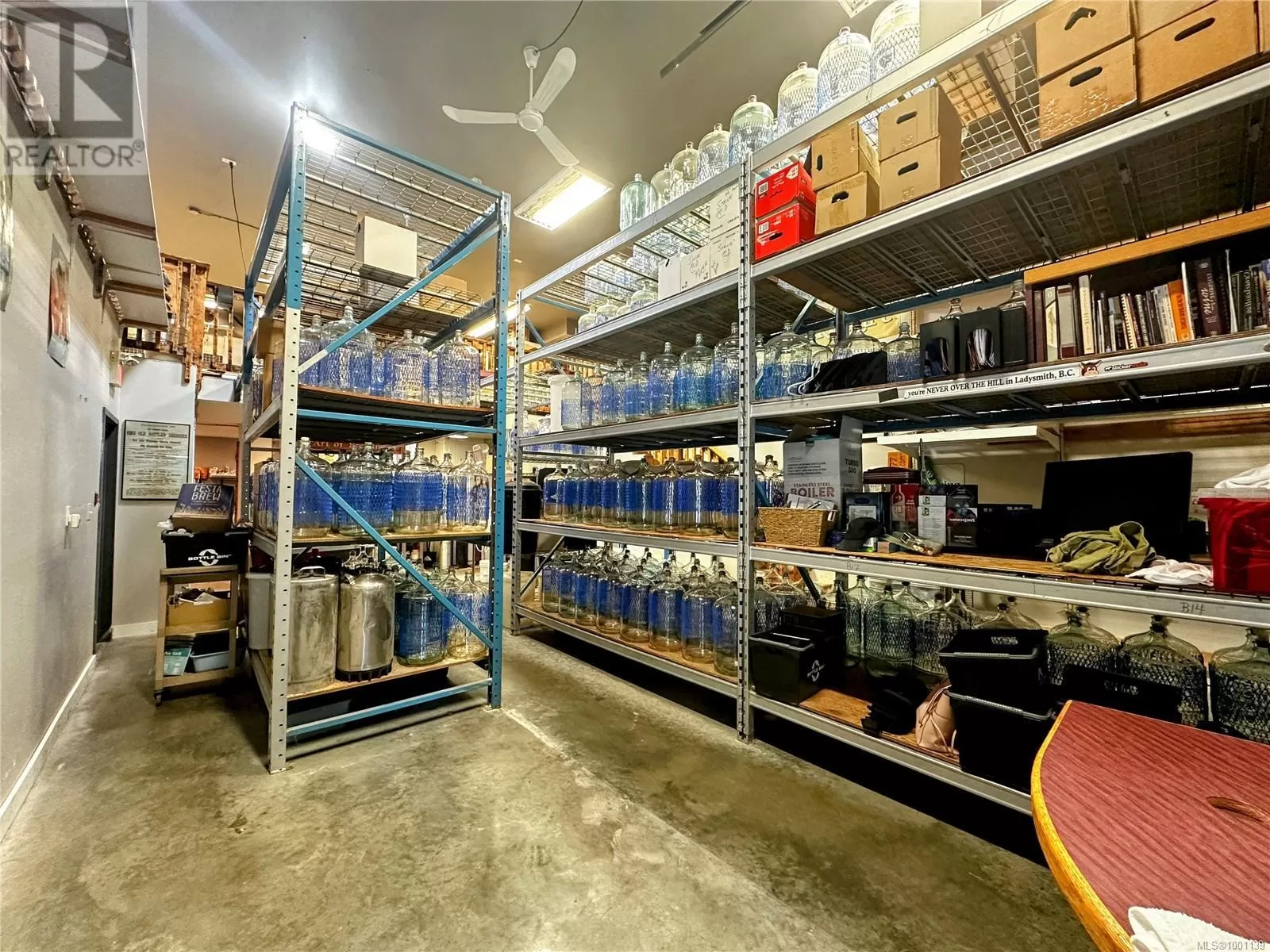 This industrial-zoned strata unit, located just off Highway 1 at the north end of Ladysmith, presents an excellent opportunity for businesses looking for a well-located and versatile space. The unit spans 2,000square feet, with 1,250 square feet of ground floor space and an additional 750 square feet of mezzanine. The configuration offers ample room for a variety of uses, including manufacturing, warehousing, and wholesale operations, making it an ideal space for small-scale business enterprises. The property features a grade-level roll-up door with a height of 14 feet, providing easy access for loading and unloading. The unit's 18-foot ceilings create a spacious, open environment, offering flexibility for different operational needs. Inside, there's a reception area that provides a professional entry for clients and visitors, along with an accessible washroom to ensure compliance with accessibility standards (id:27476)