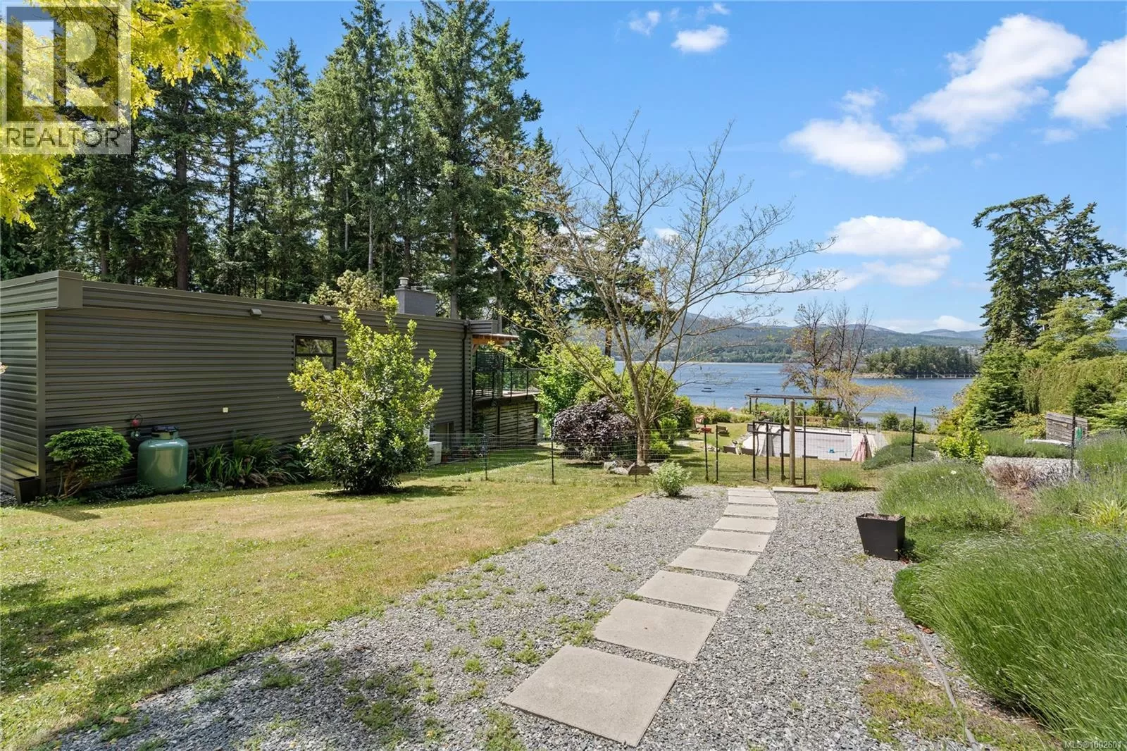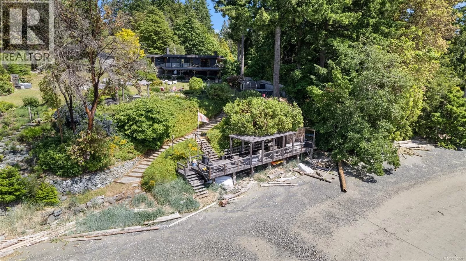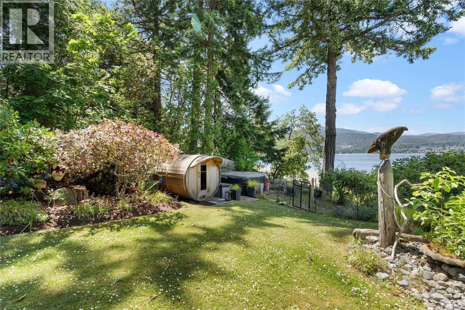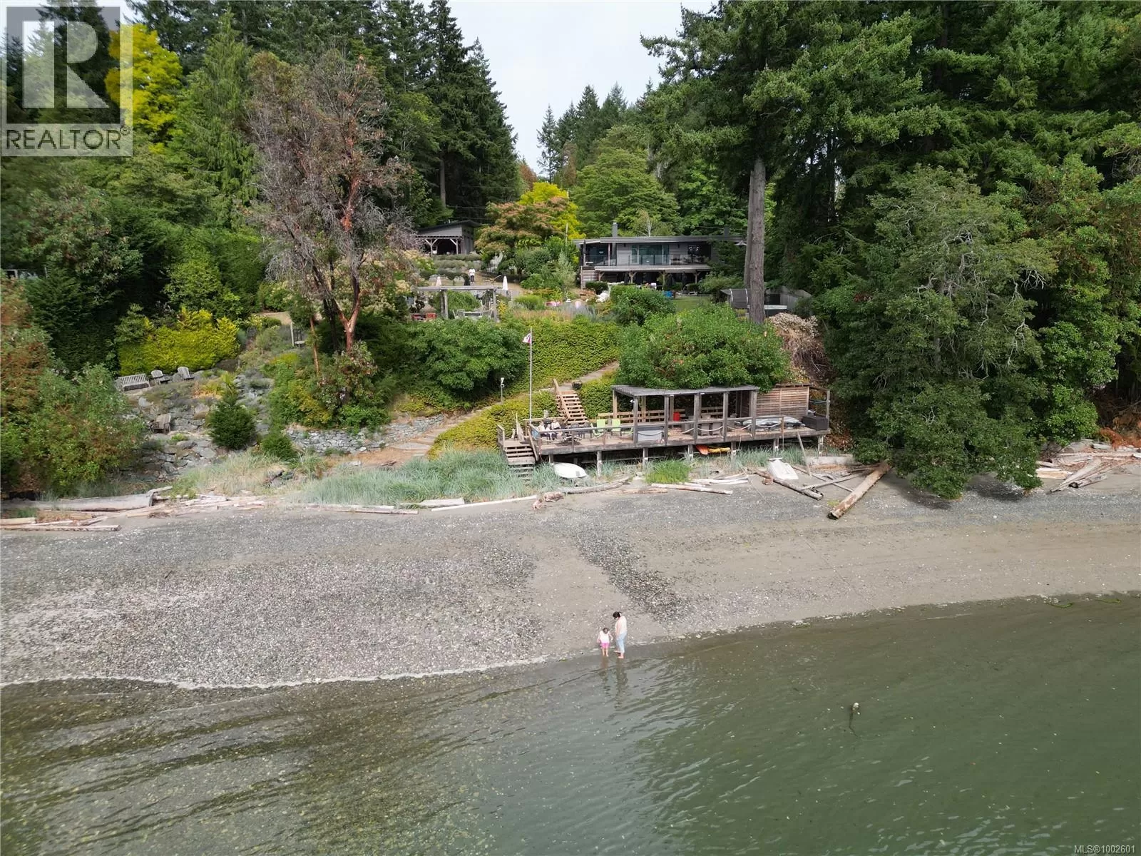 Welcome to your dream coastal retreat! This stunning contemporary-style oceanfront home in Ladysmith offers a rare opportunity to live on the edge of beautiful Sibell Bay, where the rhythm of the tides & breathtaking west-facing views set the tone for daily life. Thoughtfully designed with elegance & functionality in mind, this 2,650 sq.ft. main-level entry home with a walk-out basement is the perfect blend of modern luxury & relaxed seaside living. The main floor features a gourmet chefâs kitchen outfitted with premium appliances, ample cabinetry, & sleek countertopsâideal for preparing meals while taking in the ocean views. The spacious living room centers around a cozy woodstove insert, creating a warm & inviting atmosphere for gathering with family and friends. The primary bedroom wing is a true sanctuary, complete with a grand ensuite bath, generous closet space, & a private office or sitting areaâperfect for remote work or quiet reflection. Step out onto the expansive main floor deck & soak in panoramic ocean views that stretch across the bayâespecially magical at sunset. Downstairs, the walk-out lower level extends your living space with a covered patio, fully equipped outdoor kitchen, & a comfortable area for outdoor movie nights. Ideal for entertaining or unwinding after a day on the water. Follow the landscaped path down to the walk-on waterfront, where youâll find a hot tub, sauna, & stairs leading to a private oceanfront deck & beach access. Whether you're into kayaking, paddleboarding, or simply relaxing by the shore, this property invites you to make the most of life by the sea. Beautifully manicured yard offers both privacy & beauty, & there's ample space for gardening or play. Must be purchased with the adjacent lotâwith a 3-car garage/suite, & stunning pool. MLS 1002692. It features a 3-car garage with guest suite & a glorious in-ground pool, creating the opportunity for a true gated oceanfront estate. Bring your water toys & sense of adventure. (id:27476)