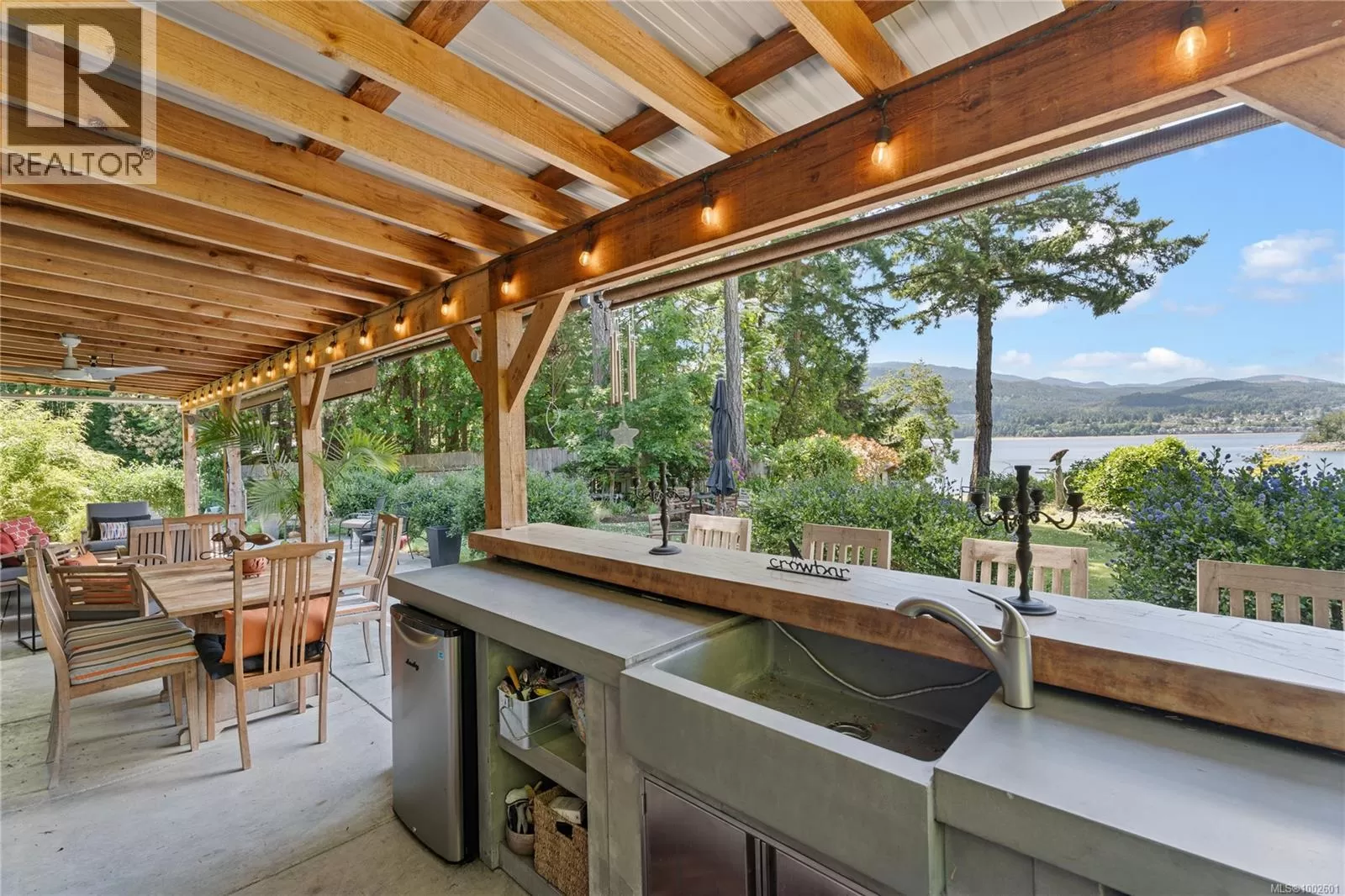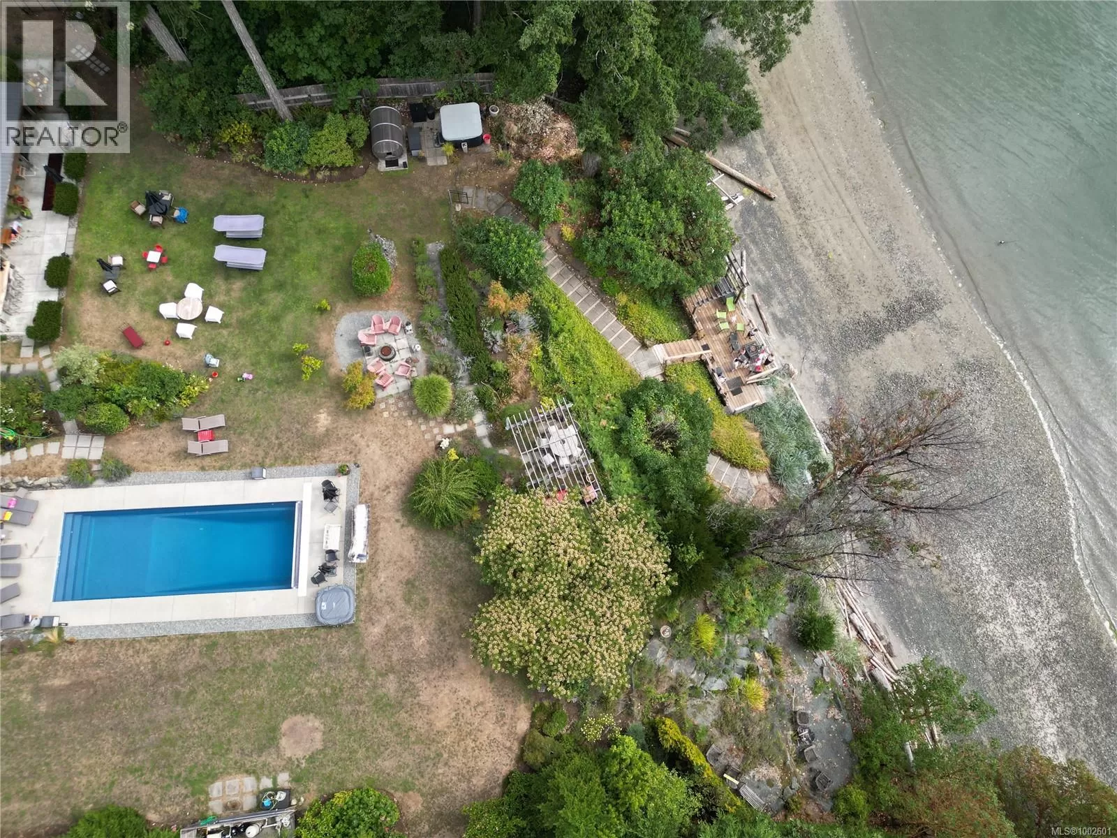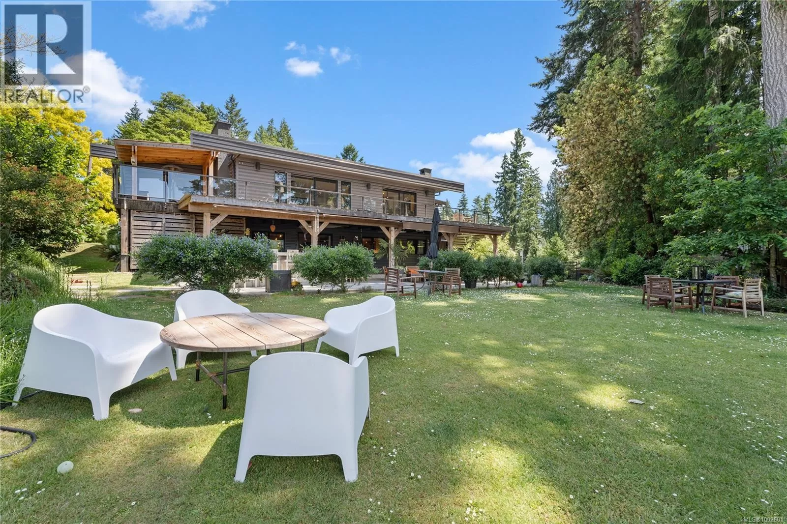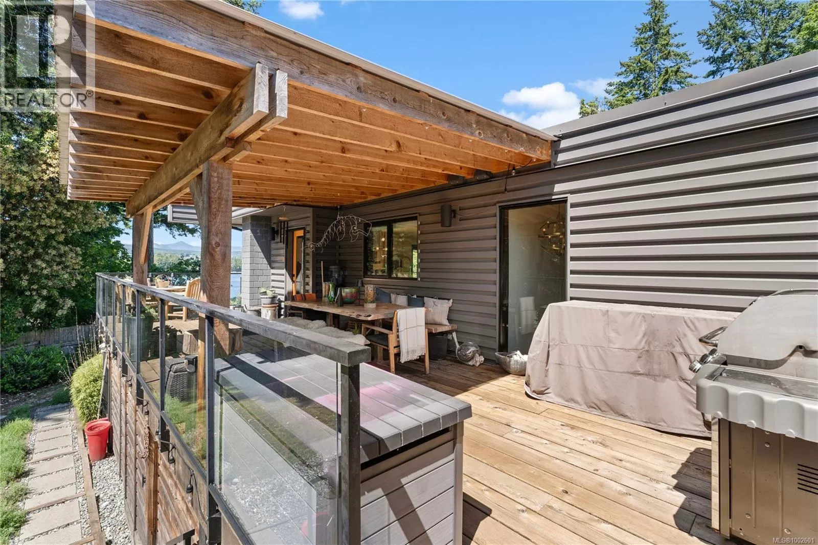 Welcome to your dream coastal retreat! This stunning contemporary-style oceanfront home in Ladysmith offers a rare opportunity to live on the edge of beautiful Sibell Bay, where the rhythm of the tides & breathtaking west-facing views set the tone for daily life. Thoughtfully designed with elegance & functionality in mind, this 2,650 sq.ft. main-level entry home with a walk-out basement is the perfect blend of modern luxury & relaxed seaside living. The main floor features a gourmet chefâs kitchen outfitted with premium appliances, ample cabinetry, & sleek countertopsâideal for preparing meals while taking in the ocean views. The spacious living room centers around a cozy woodstove insert, creating a warm & inviting atmosphere for gathering with family and friends. The primary bedroom wing is a true sanctuary, complete with a grand ensuite bath, generous closet space, & a private office or sitting areaâperfect for remote work or quiet reflection. Step out onto the expansive main floor deck & soak in panoramic ocean views that stretch across the bayâespecially magical at sunset. Downstairs, the walk-out lower level extends your living space with a covered patio, fully equipped outdoor kitchen, & a comfortable area for outdoor movie nights. Ideal for entertaining or unwinding after a day on the water. Follow the landscaped path down to the walk-on waterfront, where youâll find a hot tub, sauna, & stairs leading to a private oceanfront deck & beach access. Whether you're into kayaking, paddleboarding, or simply relaxing by the shore, this property invites you to make the most of life by the sea. Beautifully manicured yard offers both privacy & beauty, & there's ample space for gardening or play. Must be purchased with the adjacent lotâwith a 3-car garage/suite, & stunning pool. MLS 1002692. It features a 3-car garage with guest suite & a glorious in-ground pool, creating the opportunity for a true gated oceanfront estate. Bring your water toys & sense of adventure. (id:27476)