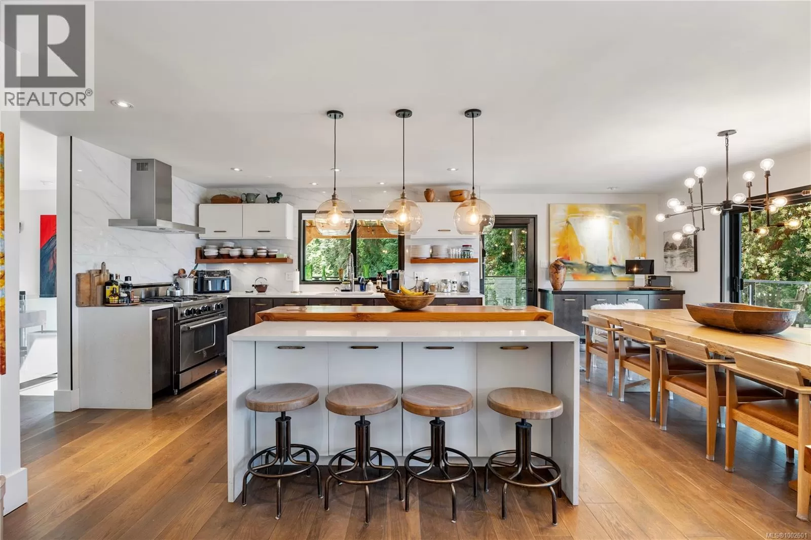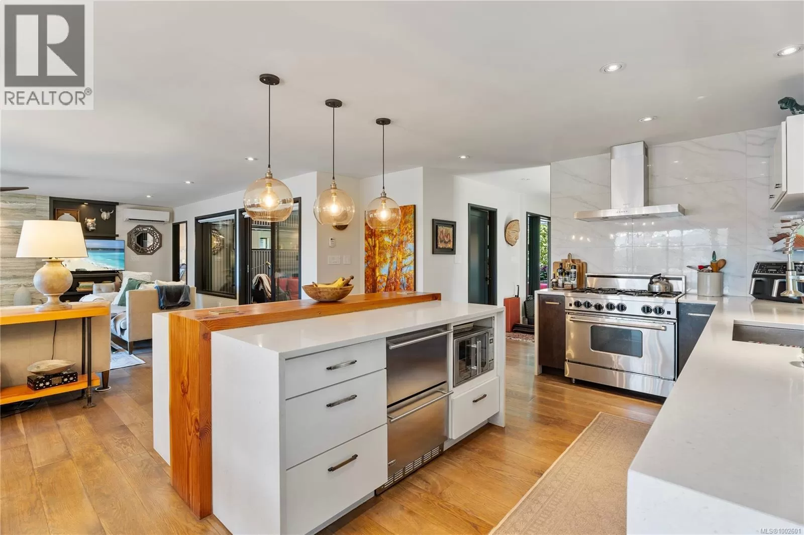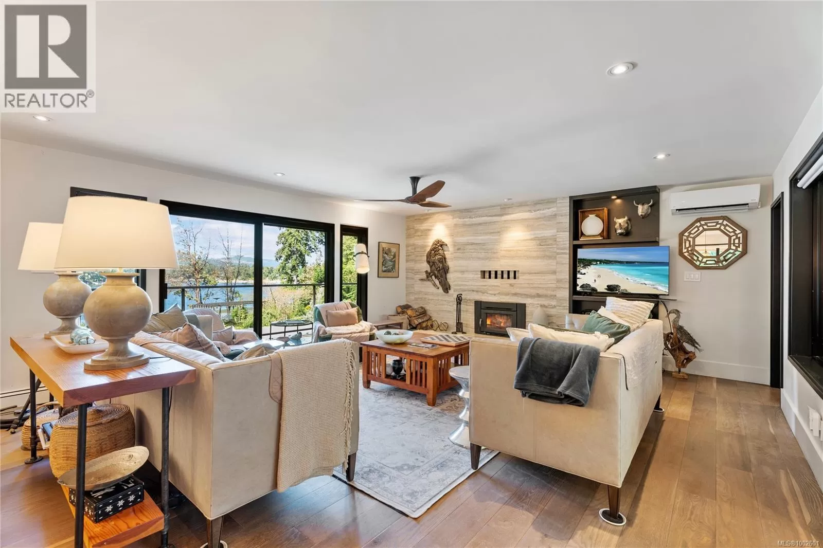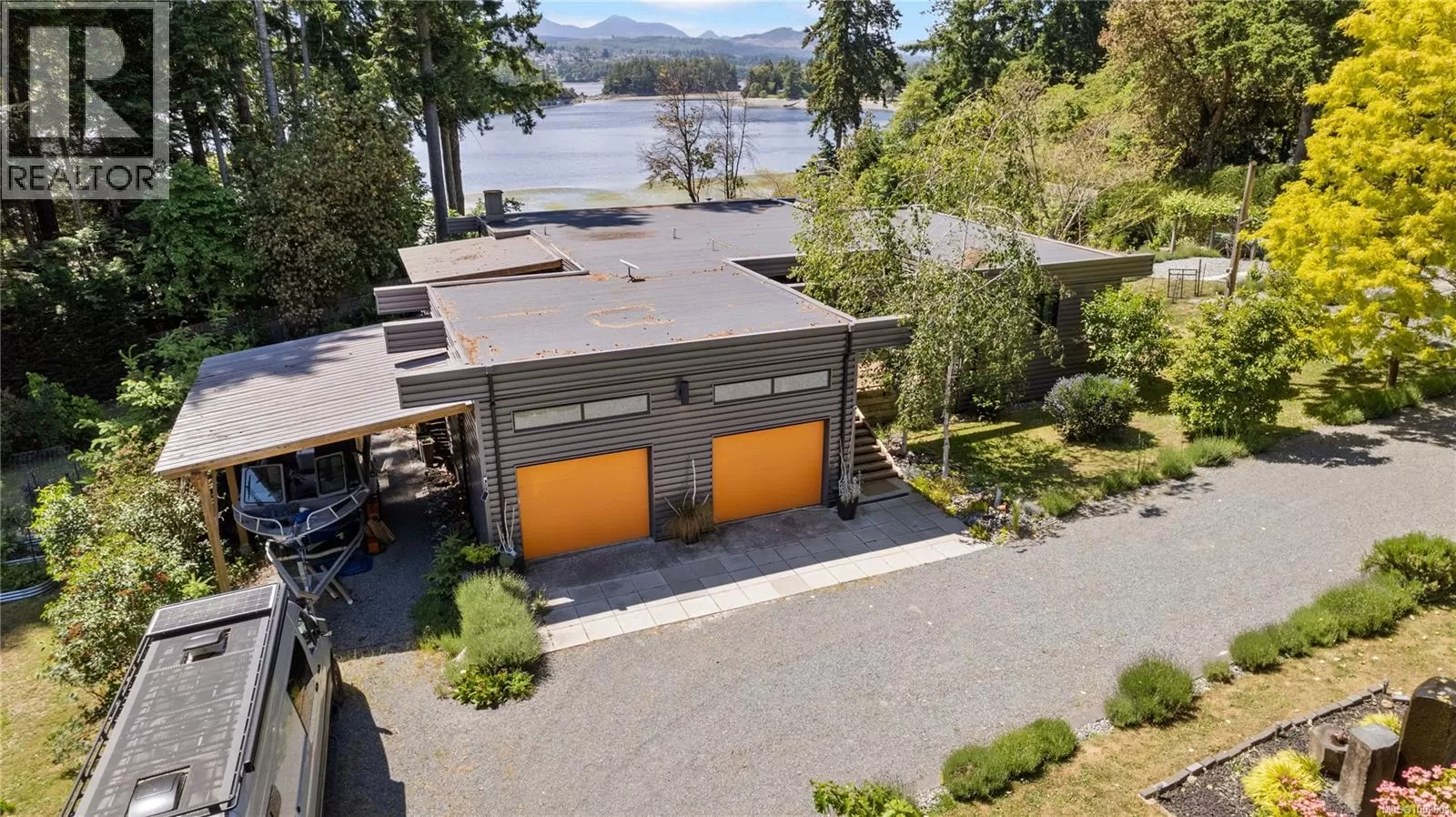 Welcome to your dream coastal retreat! This stunning contemporary-style oceanfront home in Ladysmith offers a rare opportunity to live on the edge of beautiful Sibell Bay, where the rhythm of the tides & breathtaking west-facing views set the tone for daily life. Thoughtfully designed with elegance & functionality in mind, this 2,650 sq.ft. main-level entry home with a walk-out basement is the perfect blend of modern luxury & relaxed seaside living. The main floor features a gourmet chefâs kitchen outfitted with premium appliances, ample cabinetry, & sleek countertopsâideal for preparing meals while taking in the ocean views. The spacious living room centers around a cozy woodstove insert, creating a warm & inviting atmosphere for gathering with family and friends. The primary bedroom wing is a true sanctuary, complete with a grand ensuite bath, generous closet space, & a private office or sitting areaâperfect for remote work or quiet reflection. Step out onto the expansive main floor deck & soak in panoramic ocean views that stretch across the bayâespecially magical at sunset. Downstairs, the walk-out lower level extends your living space with a covered patio, fully equipped outdoor kitchen, & a comfortable area for outdoor movie nights. Ideal for entertaining or unwinding after a day on the water. Follow the landscaped path down to the walk-on waterfront, where youâll find a hot tub, sauna, & stairs leading to a private oceanfront deck & beach access. Whether you're into kayaking, paddleboarding, or simply relaxing by the shore, this property invites you to make the most of life by the sea. Beautifully manicured yard offers both privacy & beauty, & there's ample space for gardening or play. Must be purchased with the adjacent lotâwith a 3-car garage/suite, & stunning pool. MLS 1002692. It features a 3-car garage with guest suite & a glorious in-ground pool, creating the opportunity for a true gated oceanfront estate. Bring your water toys & sense of adventure. (id:27476)