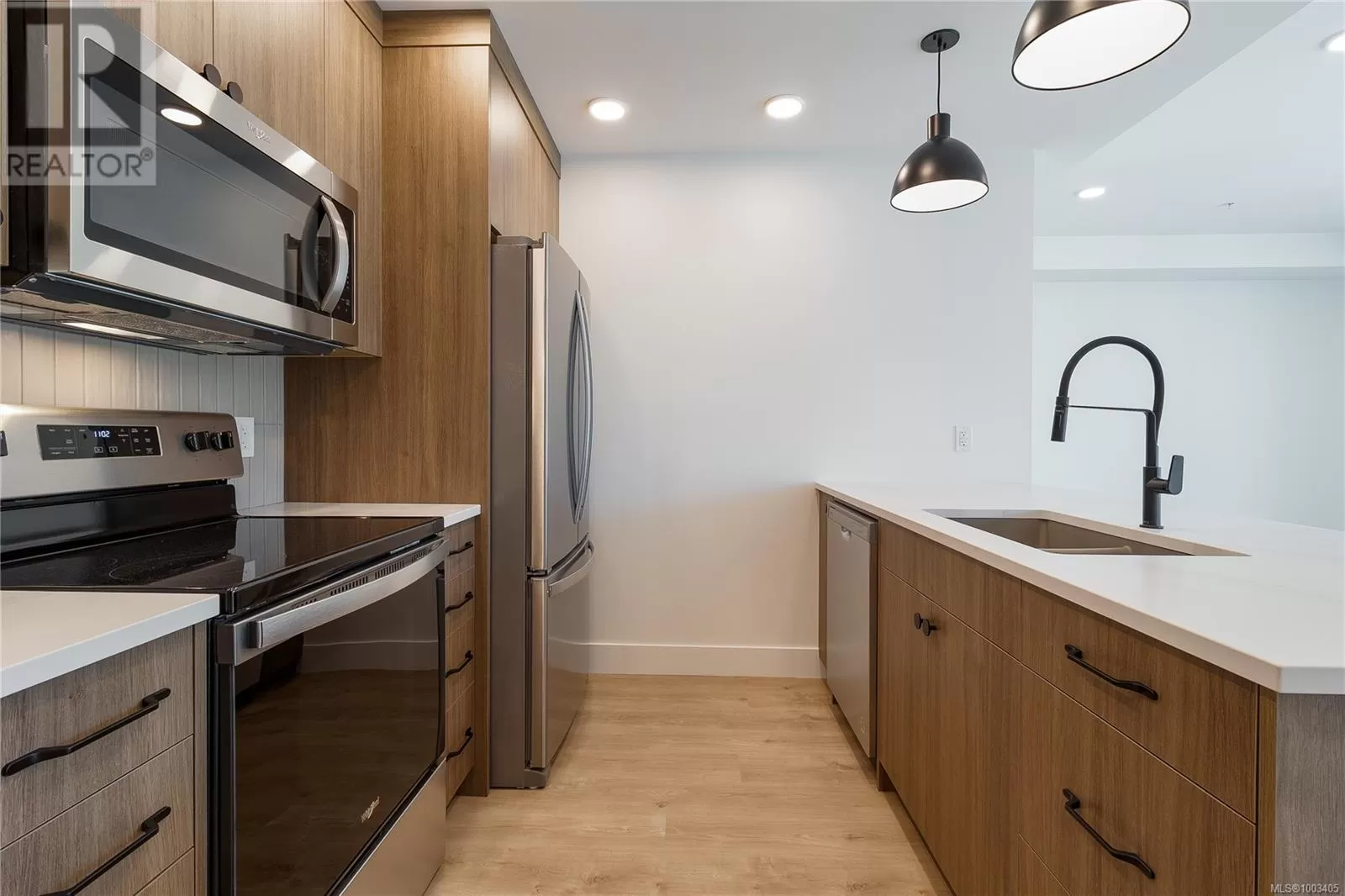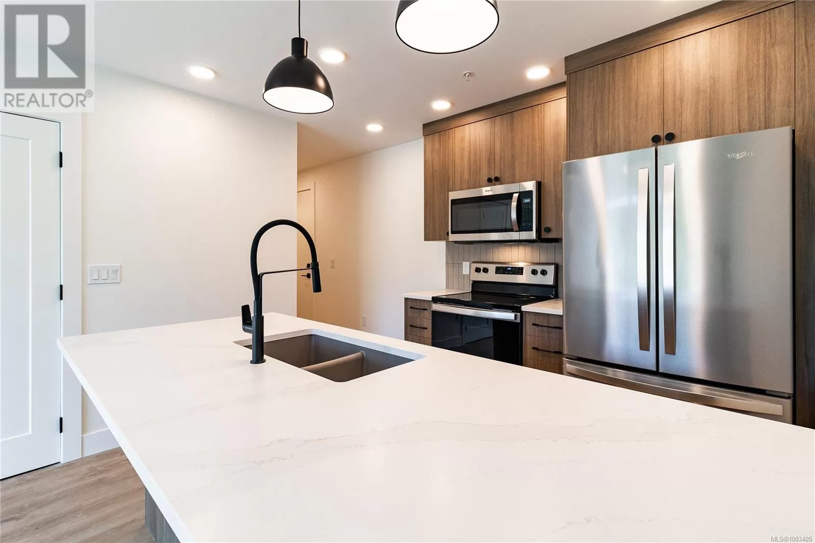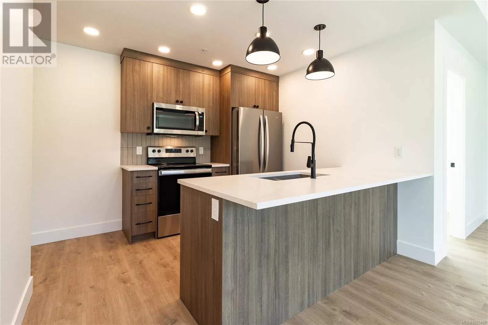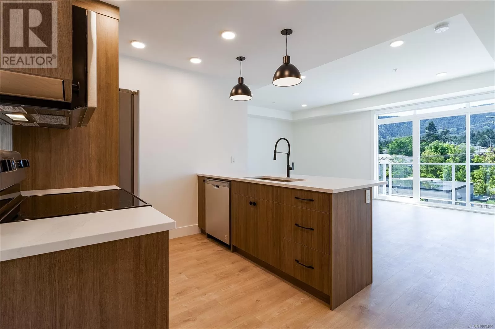 Welcome to Dalby's on Dogwood, where luxury meets convenience in the heart of Ladysmith, BC. This exclusive residence offers a blend of sophisticated design, modern amenities, and a prime location, ensuring an exceptional living experience for residents of all ages. The architectural beauty is complemented by breathtaking panoramic views of the harbour, providing a picturesque backdrop to daily life. This boutique 5-storey building offers 25 residences, each meticulously designed for comfort and functionality. Beyond the impeccable interiors, Dalby's boasts an array of building amenities designed to enhance your lifestyle. Secure parking and bike storage ensure peace of mind, while a sleek lobby welcomes you home each day. Residents can also take advantage of a common roof deck patio, perfect for gatherings and soaking in the coastal scenery. For pet owners, a dedicated dog washing station adds convenience to everyday life, while beautifully landscaped grounds provide a serene escape. Our prime location in Ladysmith offers the best of both worlds: a tranquil coastal lifestyle with easy access to urban conveniences. Explore pristine beaches, wander through breathtaking parks, or stroll through charming shops—all just minutes from your doorstep. Whether you're a young professional seeking a vibrant community or a retiree longing for a peaceful retreat, Dalby's on Dogwood offers the perfect place to call home. Experience the essence of coastal living at its finest. This 1 bed + den, 2 bath home offers high-end finishes, in suite laundry, included appliances, window coverings and mountain views from your own patio. Book your private showing today! (id:27476)