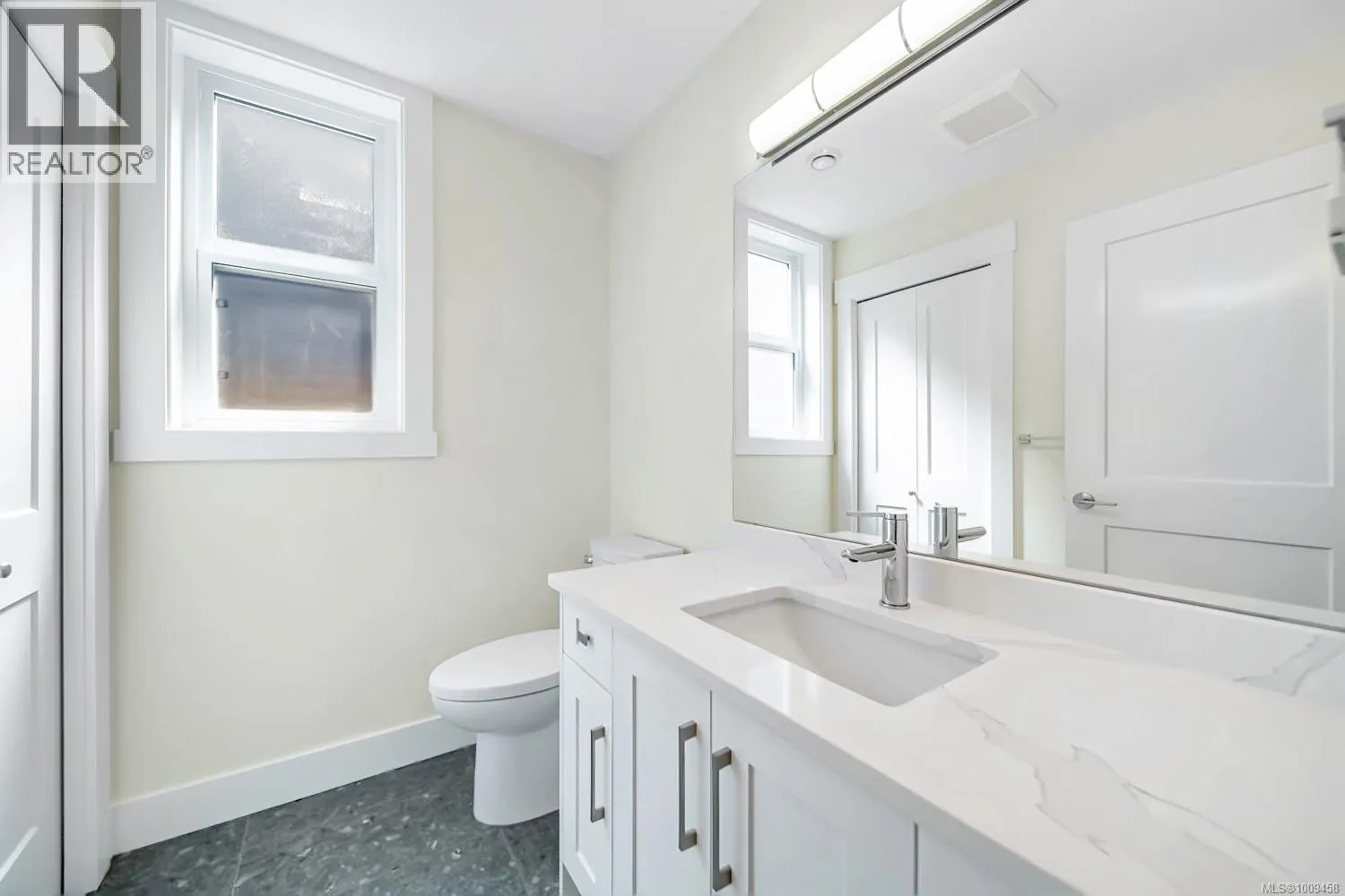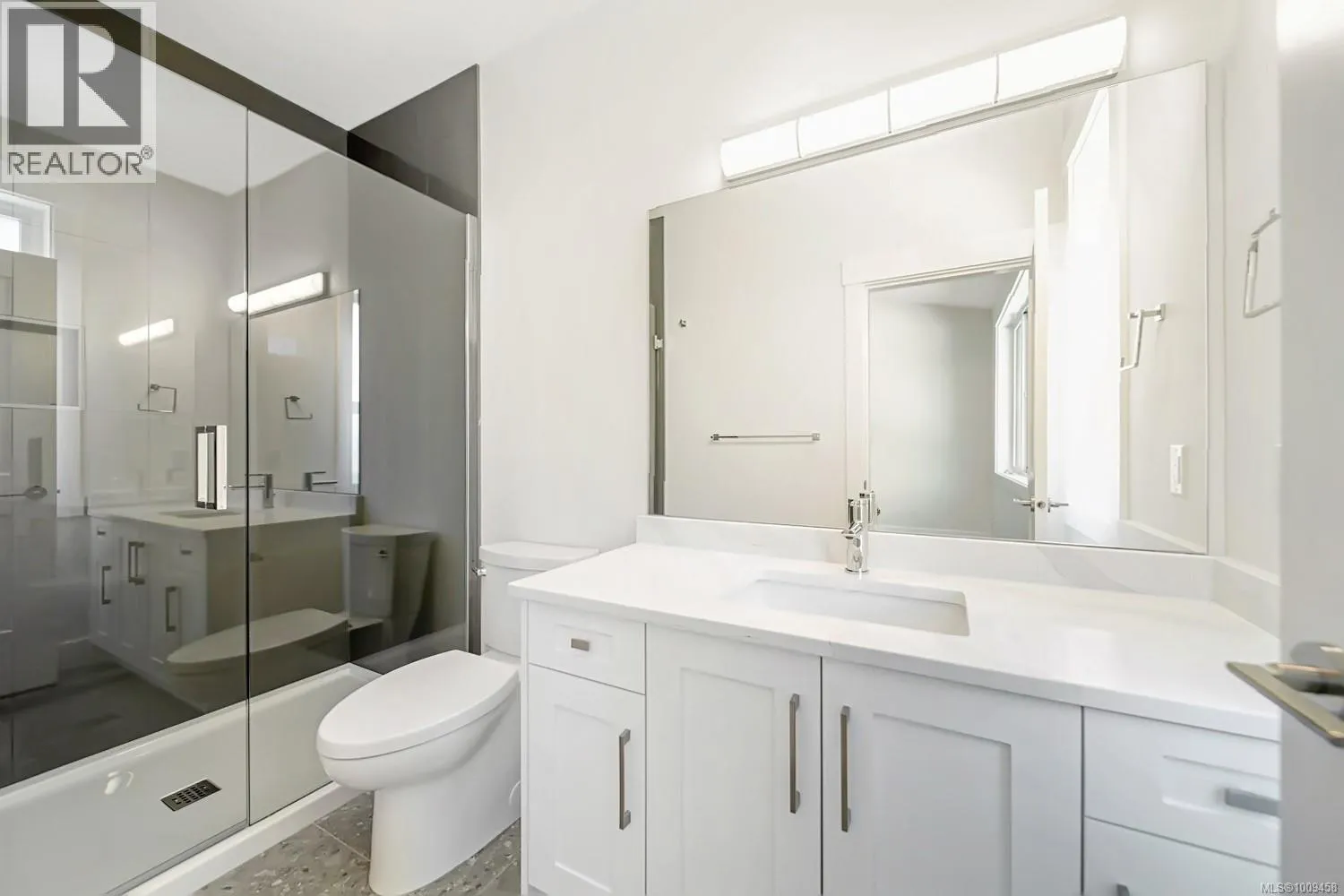 Introducing this brand-new side-by-side half duplex in Ladysmithâs newest Hunter Way development. The main floor welcomes you with a custom-shelved entryway, convenient powder room, and an open-concept design perfect for modern living. The sleek kitchen features soft-close cabinetry, quartz countertops, and flows into the dining and living areas, anchored by an elegant electric fireplace. Upstairs offers a versatile loft/flex space, two well-sized bedrooms, a 4-piece bath, laundry room, and a spacious primary suite with a custom walk-in closet and 3-piece ensuite. Enjoy year-round comfort with a heat pump for heating/cooling plus a backup gas furnace. Water-resistant laminate flooring throughout adds durability and style. This move-in ready home offers the perfect combination of new build quality, comfort, and contemporary design.(Hunter Way is located on the right hand side at the end of Malone Rd.) (id:27476)