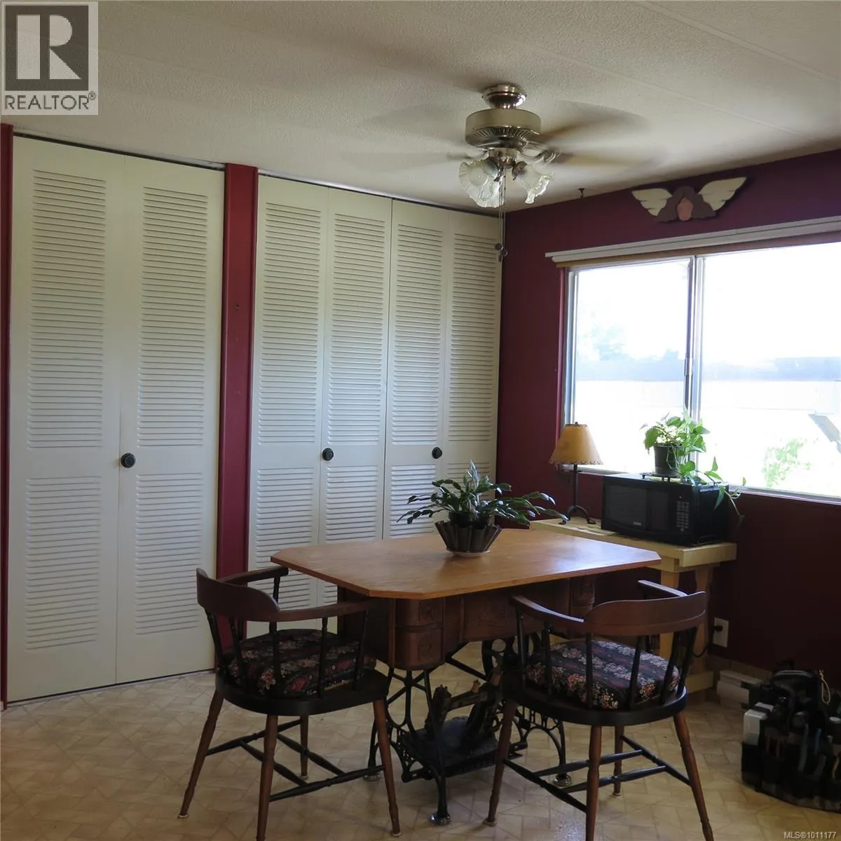 Priced to sell at over 8$80,000 than assessed, this large 2 bedroom, 2 bath double wide located in the annex at Town and Country Mobile Home Park. All rooms are a generous size with the primary bedroom boasting it's own ensuite and decent sized walk in closet. Plenty of storage; indoor and out. Built in cabinets in dining area. Carport and 2 storage sheds on the east side of the home with large private patio area on the west side of the home. There is a metal roof, and newer laminate flooring. This is a 55 plus park with 2 small pets (under 10 Kg.) welcome with park approval. There is vehicle storage, a community club house with lots of social activities and and outdoor swimming pool. Park is conveniently located just south of Ladysmith and is on a bus route (id:27476)