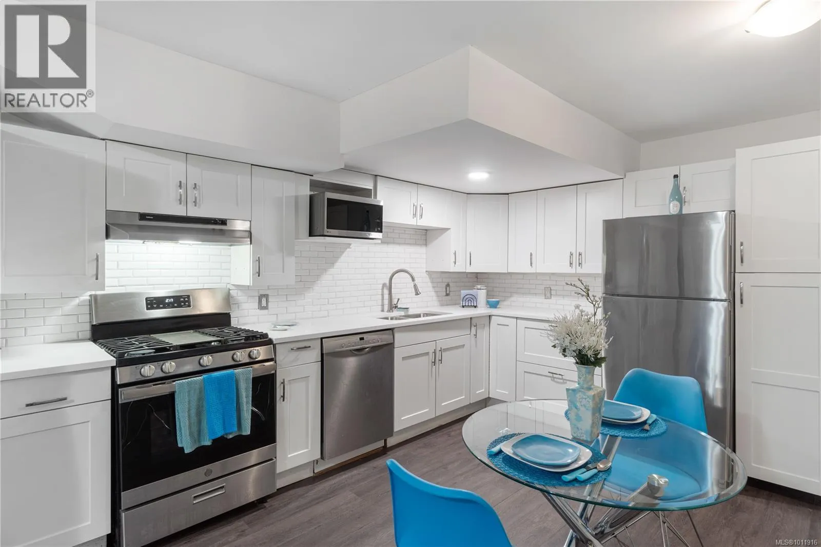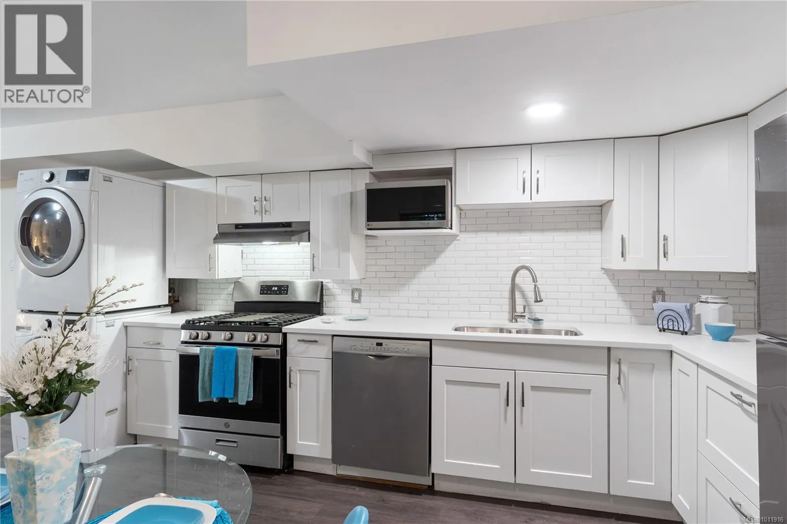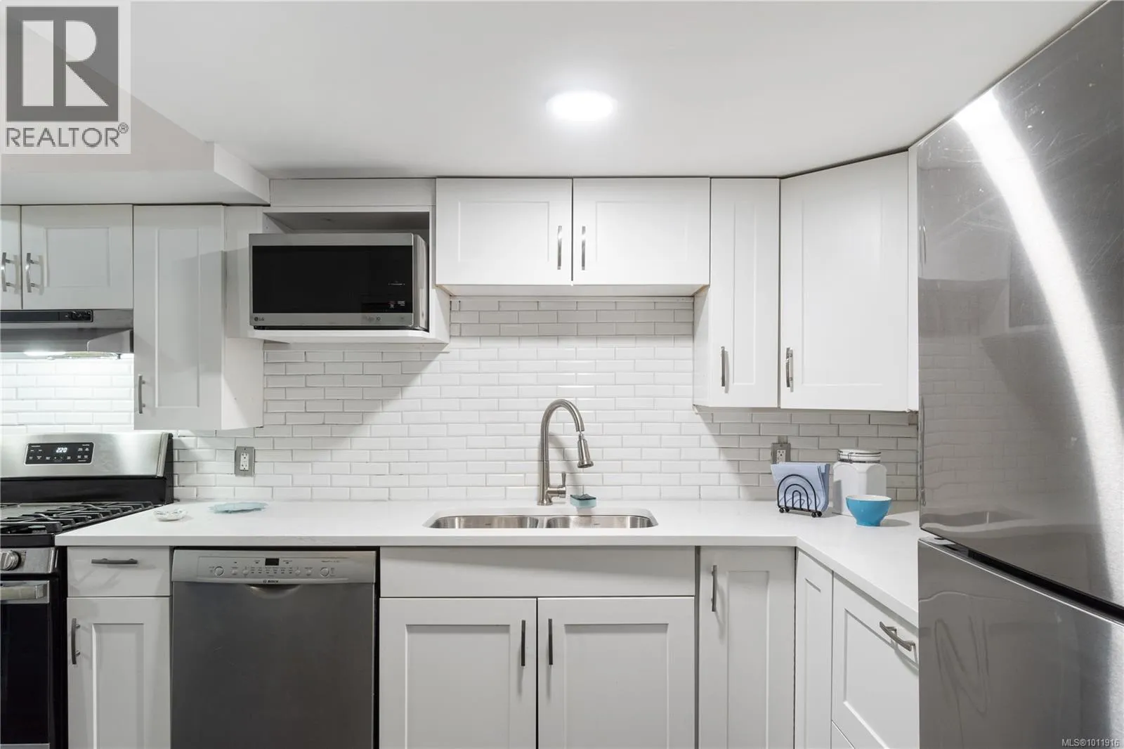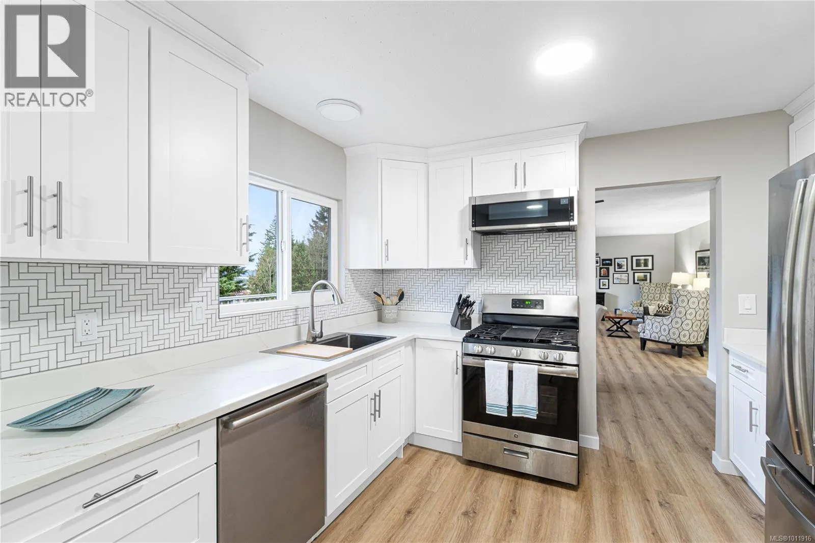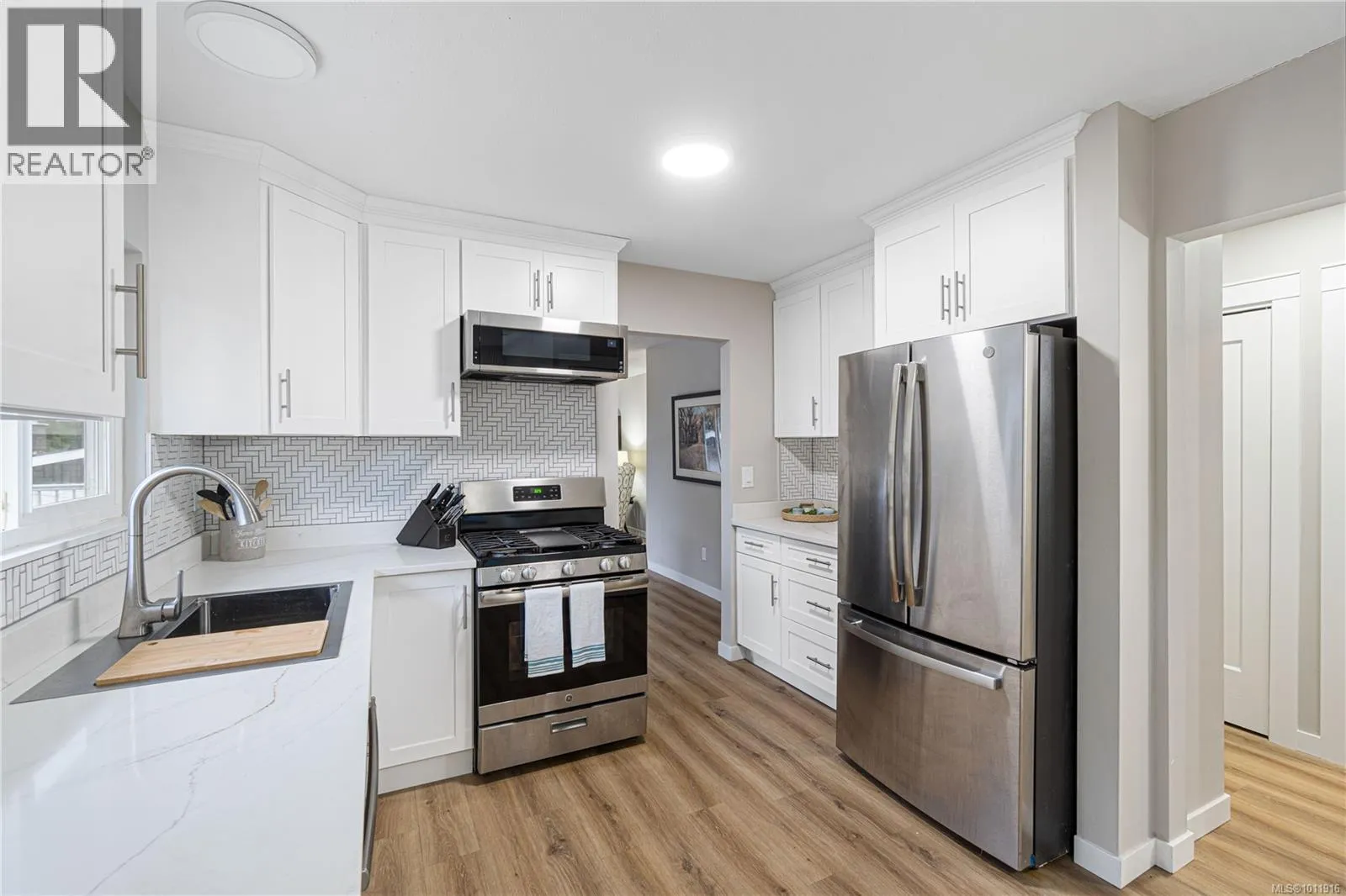 Beautifully updated from top to bottom with Income Suite and Ocean View. Centrally located main-level entry home in an established neighbourhood. Spectacular main floor was completely revitalized in 2025 includes a modern, open-concept space, new vinyl plank flooring, doors, lighting, trim, and stylish fluted feature walls. Chef's kitchen boasts new solid wood cabinets and pristine quartz countertops (2025), s/s appliances, and laundry. The living room opens to a large deck with ocean and mountain views. (3 Beds / 2 Baths upstairs).Downstairs houses a self-contained 2-bedroom suite with its own entrance, new quartz countertop in kitchen (2025) and in-suite laundry. Ample storage is included.Large fully fenced backyard ready for your ideas.Worry-Free Updates: Concrete driveway (2021), furnace/hot water heater (2020), eavestroughs/deck stairs (2025). Steps from Coronation Mall and the Holland Creek Trail system. Move-in-ready opportunity for flexible living and immediate revenue. (id:27476)