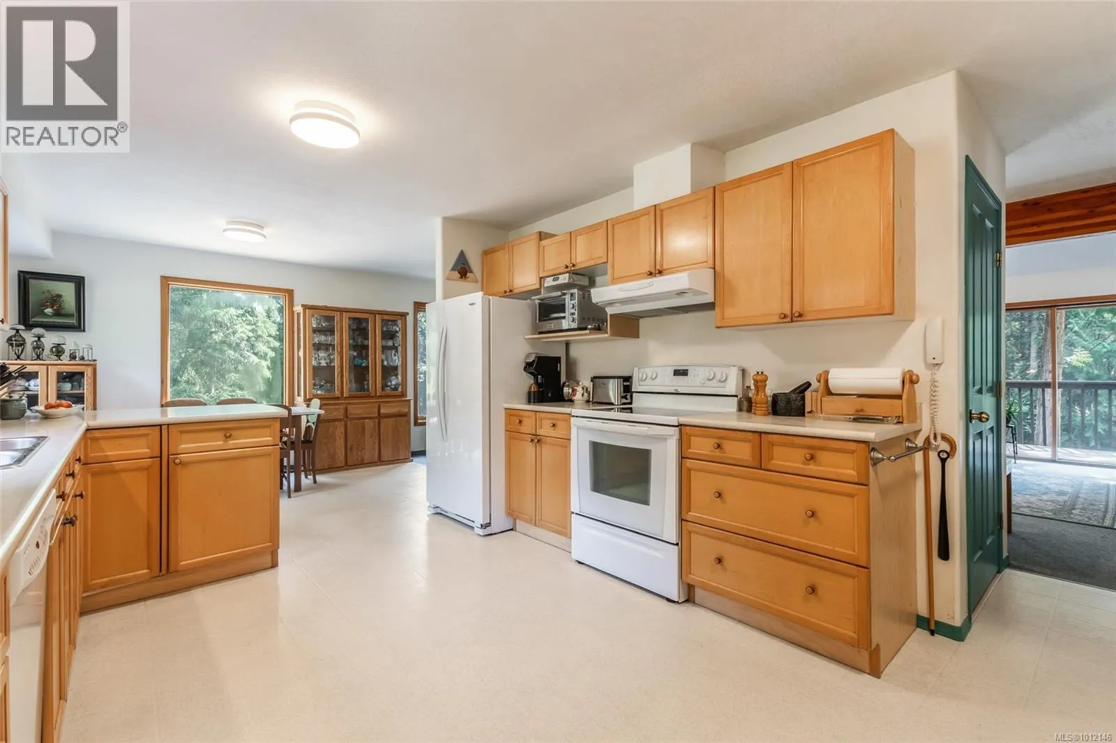 Nestled in the highly sought-after Woodley Ridge area, this immaculate West Coast-style home sits on a breathtaking 5-acre natural forested lot, offering a serene, private setting just 10 minutes from town, the airport, and golf, and only 20 minutes to the ferry. A truly rare opportunity for those seeking both luxury and nature. Boasting over 3,457 sq ft across three spacious levels, this beautifully maintained home features 5 bedrooms and 4 bathrooms, including a loft-style upper floor with soaring vaulted ceilings and 3 generously sized bedrooms. The lower level offers a bright one-bedroom layout with easy potential for a second bedroom and suite conversionâideal for guests, rental income, or extended family. Enjoy the warmth and charm of a beautiful fireplace, a newer roof, efficient heat pump, and extensive deck space perfect for outdoor living. Explore multiple tranquil spots on the property for camping, reflection, or soaking in natureâall while enjoying potential mountain and valley views with some clearing. A large detached shop with high overhead doors easily accommodates your RV, boat, or other toys. This is a one-of-a-kind property that blends comfort, functionality, and the beauty of untouched nature. Whether you're looking for your forever home, a family estate, or a peaceful escape, this gem delivers. (id:27476)