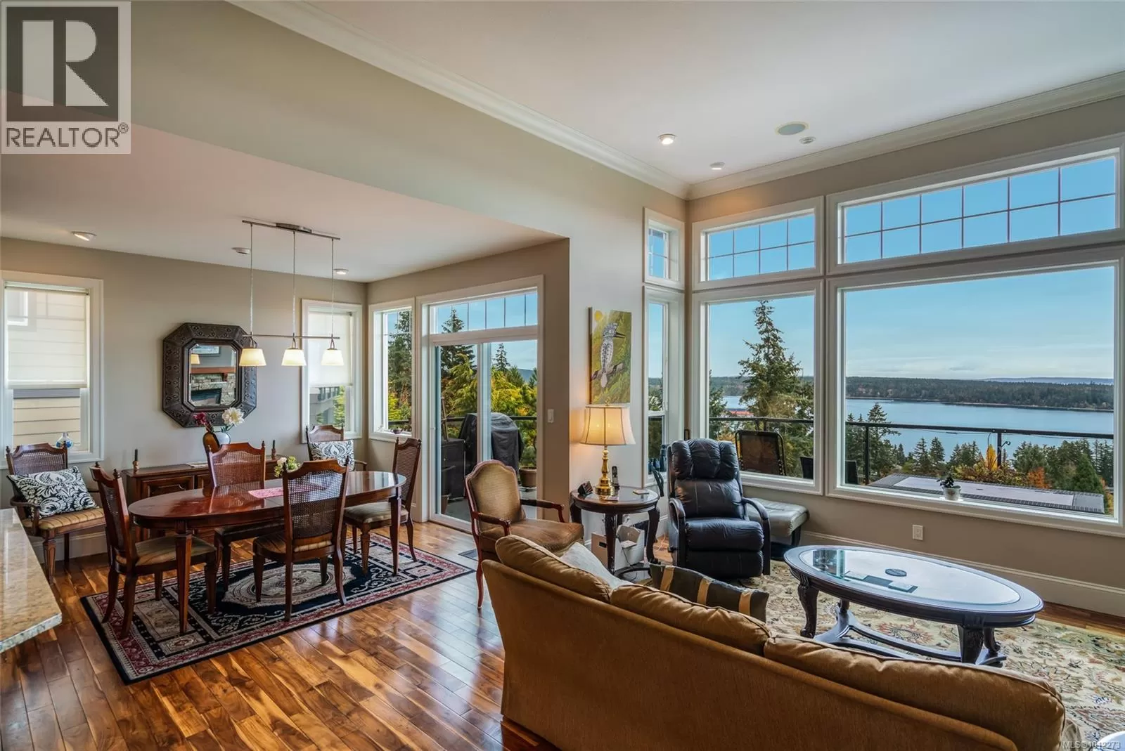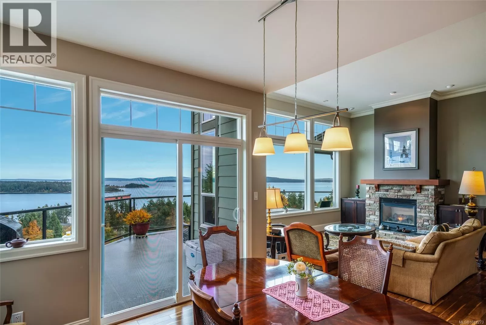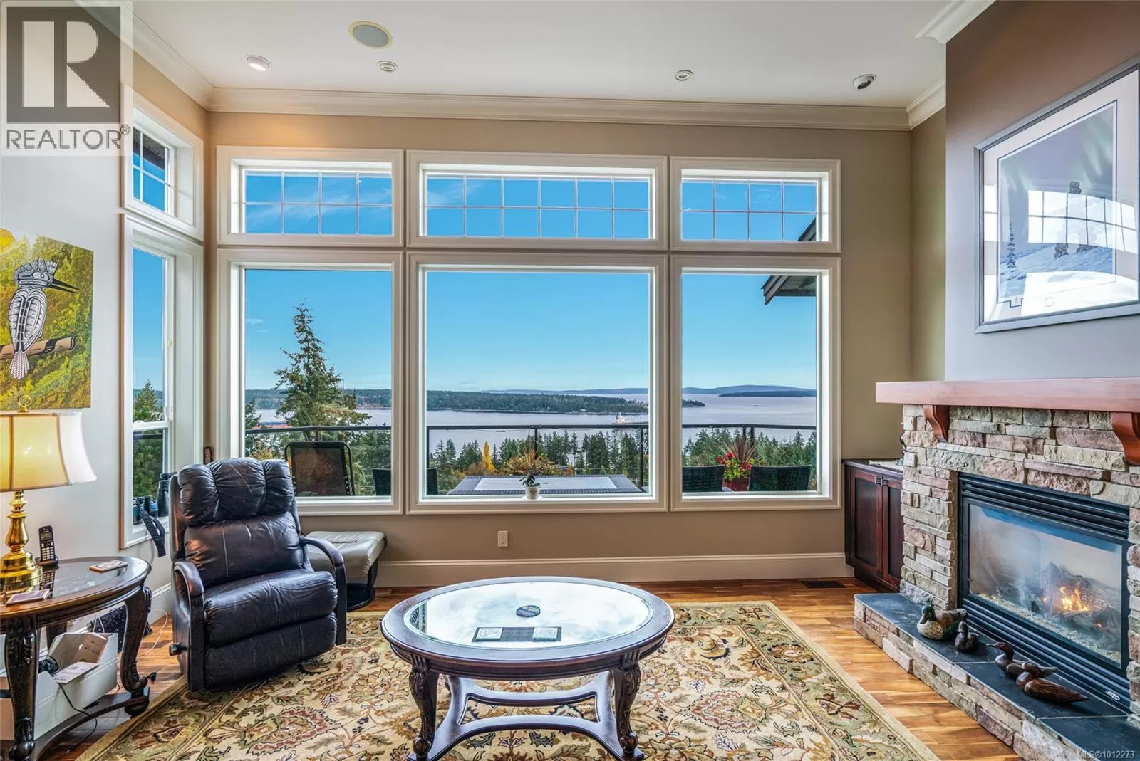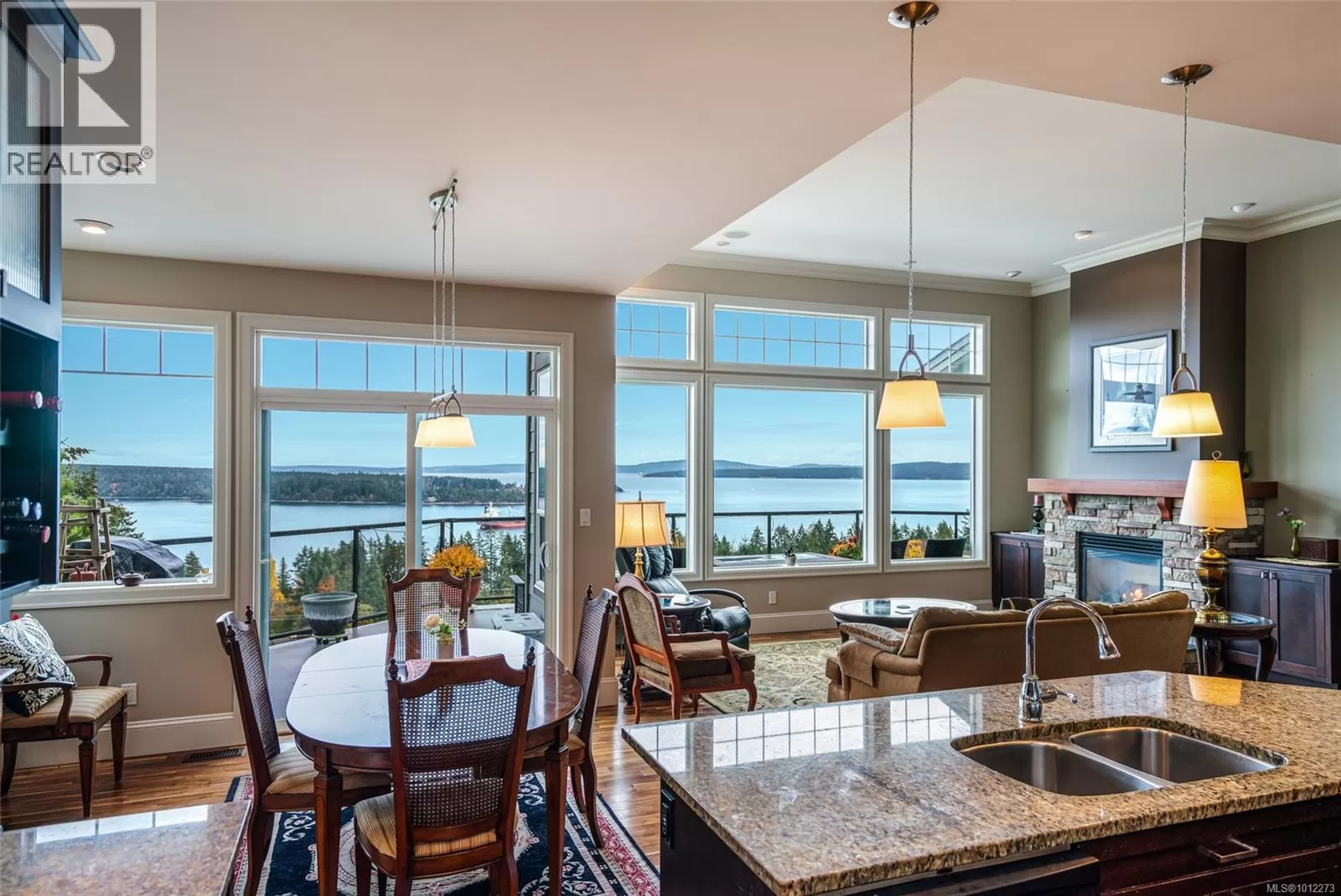 Welcome to your dream retreat, where stunning ocean and coastal mountain views blend seamlessly with sophisticated living. This exceptional home features grand soaring ceilings and a beautiful gas fireplace feature wall, creating an inviting atmosphere perfect for relaxation and entertaining. The gourmet kitchen boasts granite countertops and a spacious island, ideal for culinary enthusiasts. With 2 bedrooms plus a den on main, this home offers versatility for guests or a home office. The expansive open family room provides a perfect gathering space, complemented by a spacious ocean view deck and patio that invites outdoor enjoyment. Additional highlights include a true full-size double garage, gas heat, hot water, and a heat pump for year-round comfort. Extensive hardwood floors add elegance throughout, while the luxurious 5-piece ensuite features heated floors, a separate shower, and a soaking tub for a spa-like experience. Situated in a picturesque town just 10 minutes from a marina, golf courses, a recreation center, and the airport, this property offers an incredible lifestyle for those who love the outdoors and community charm. Donât miss the opportunity to make this stunning coastal oasis your own! (id:27476)