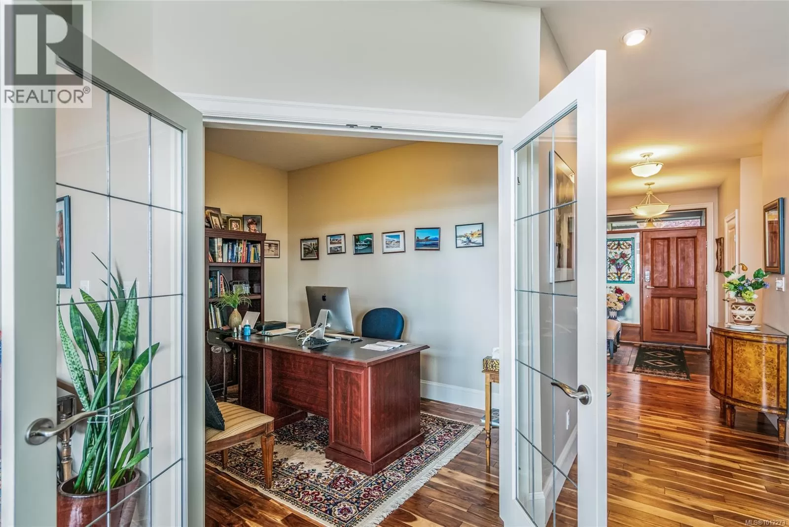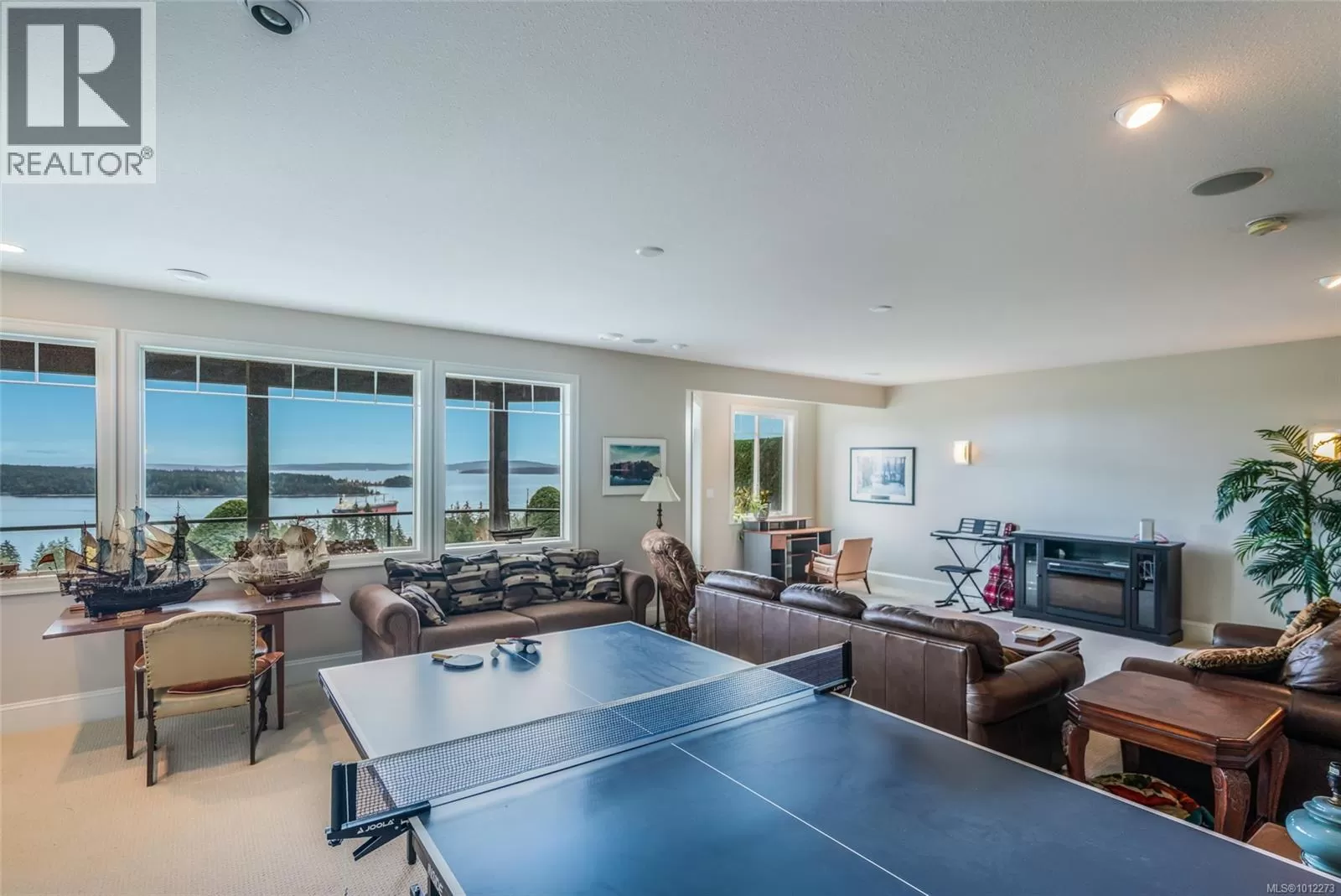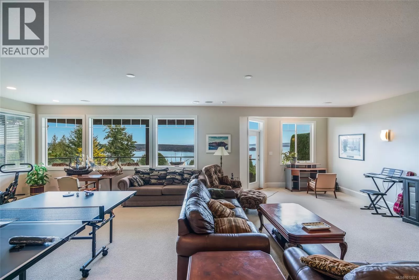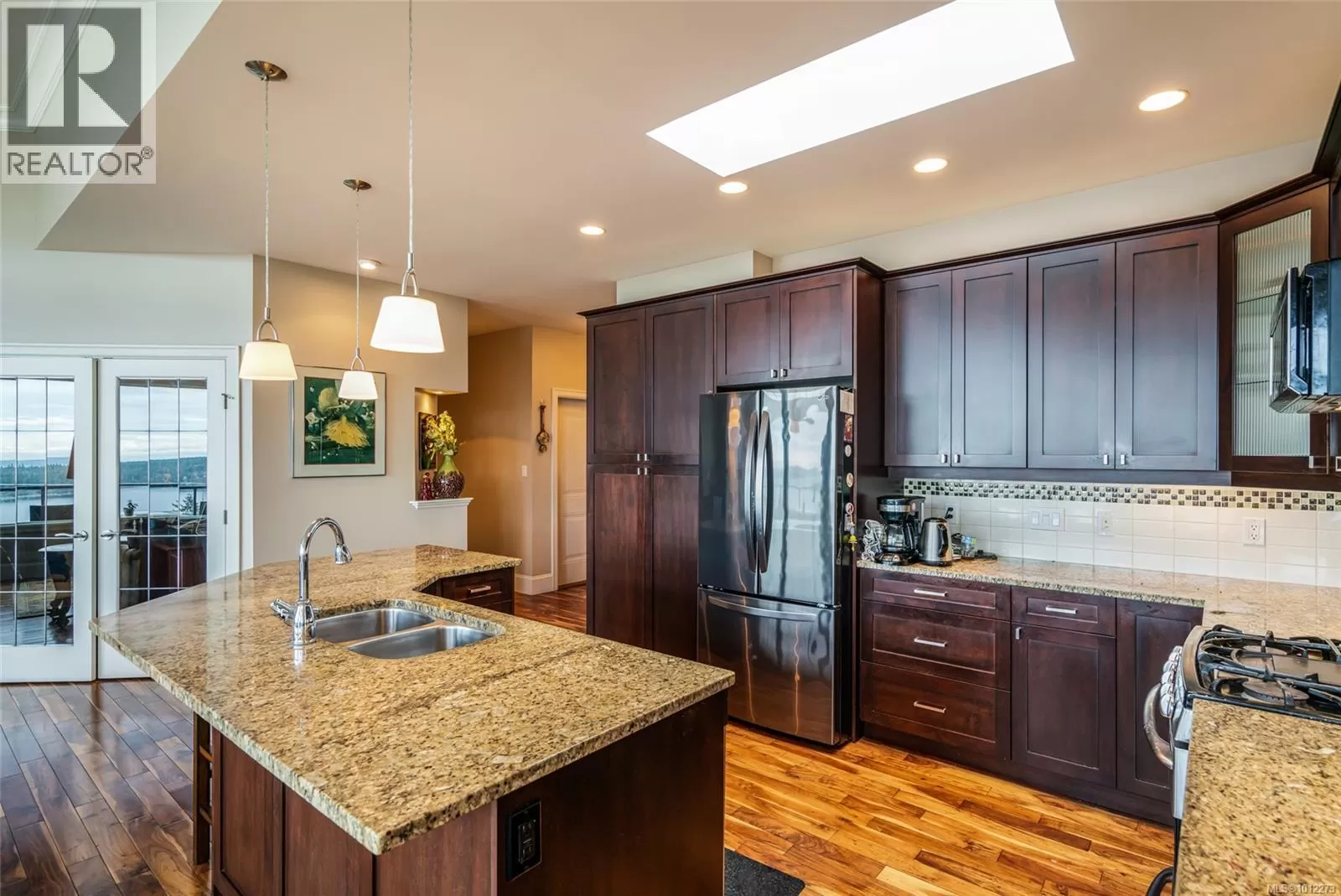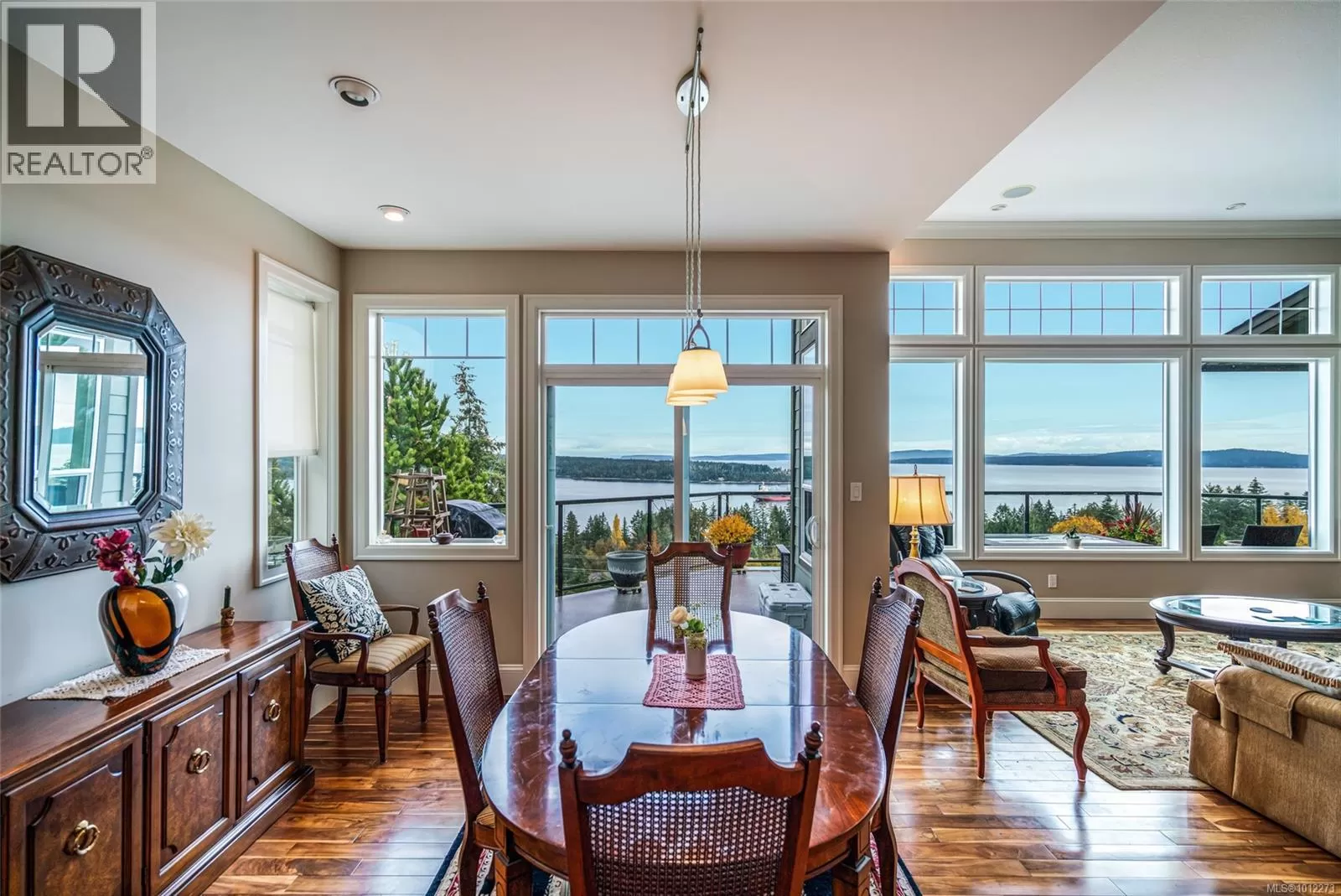 Welcome to your dream retreat, where stunning ocean and coastal mountain views blend seamlessly with sophisticated living. This exceptional home features grand soaring ceilings and a beautiful gas fireplace feature wall, creating an inviting atmosphere perfect for relaxation and entertaining. The gourmet kitchen boasts granite countertops and a spacious island, ideal for culinary enthusiasts. With 2 bedrooms plus a den on main, this home offers versatility for guests or a home office. The expansive open family room provides a perfect gathering space, complemented by a spacious ocean view deck and patio that invites outdoor enjoyment. Additional highlights include a true full-size double garage, gas heat, hot water, and a heat pump for year-round comfort. Extensive hardwood floors add elegance throughout, while the luxurious 5-piece ensuite features heated floors, a separate shower, and a soaking tub for a spa-like experience. Situated in a picturesque town just 10 minutes from a marina, golf courses, a recreation center, and the airport, this property offers an incredible lifestyle for those who love the outdoors and community charm. Donât miss the opportunity to make this stunning coastal oasis your own! (id:27476)