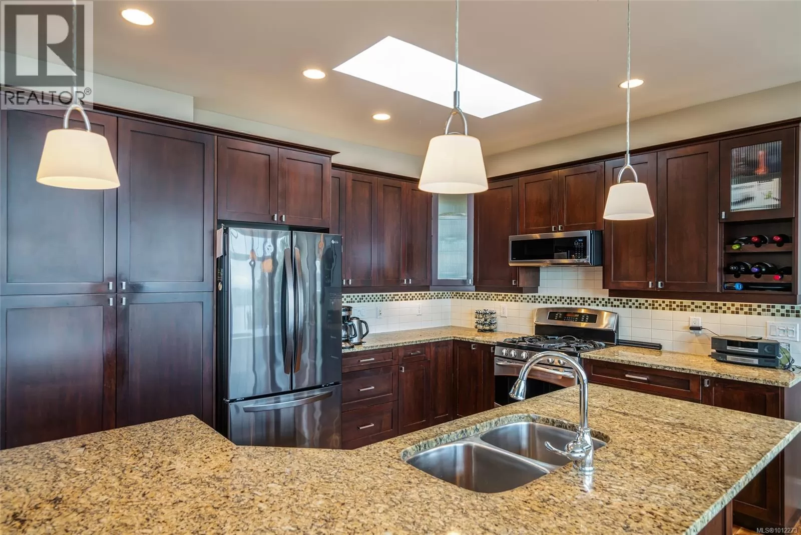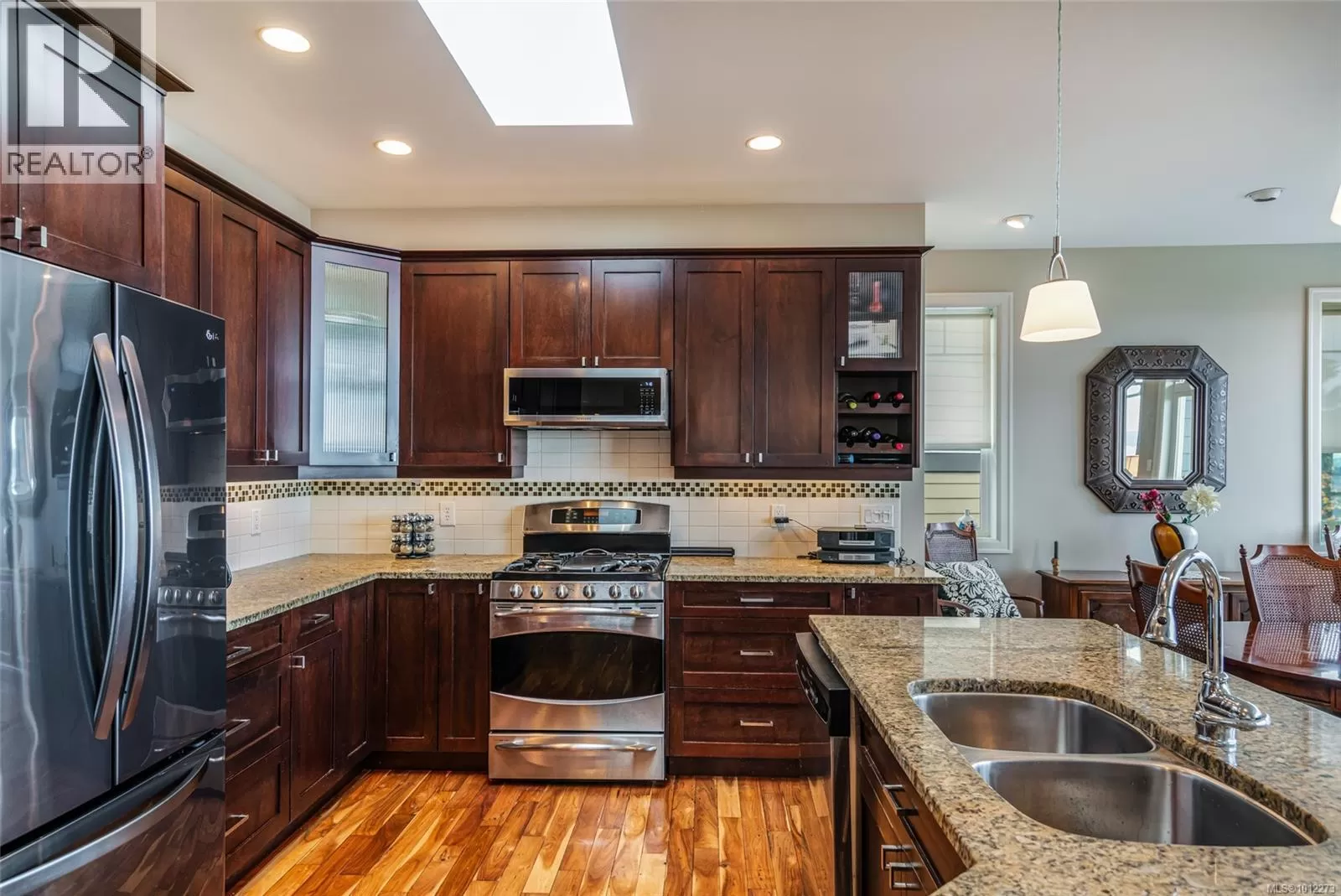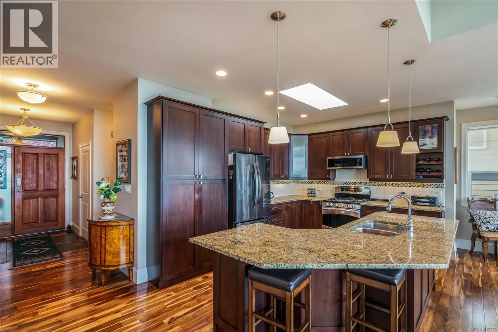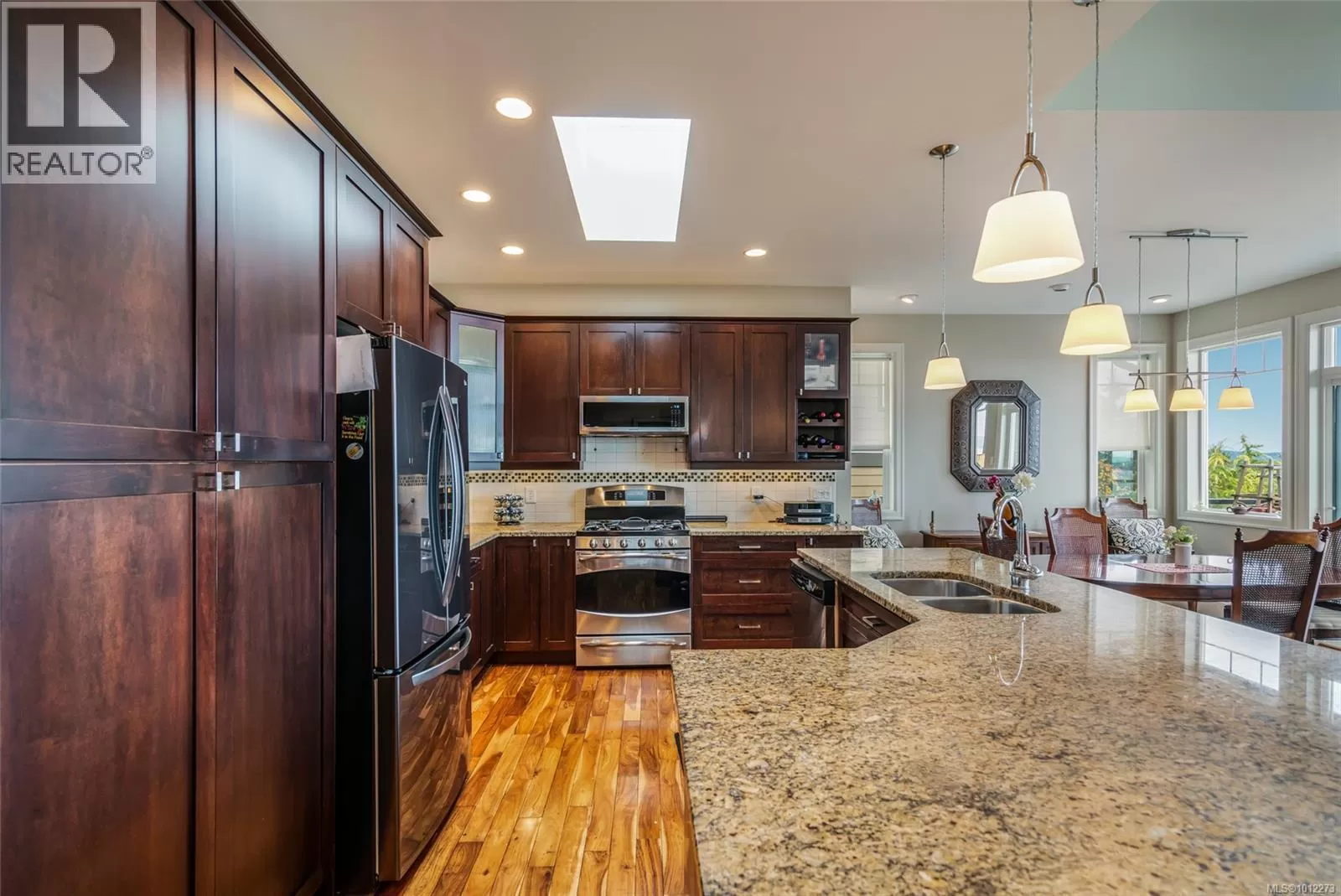Welcome to your dream retreat, where stunning ocean and coastal mountain views blend seamlessly with sophisticated living. This exceptional home features grand soaring ceilings and a beautiful gas fireplace feature wall, creating an inviting atmosphere perfect for relaxation and entertaining. The gourmet kitchen boasts granite countertops and a spacious island, ideal for culinary enthusiasts. With 2 bedrooms plus a den on main, this home offers versatility for guests or a home office. The expansive open family room provides a perfect gathering space, complemented by a spacious ocean view deck and patio that invites outdoor enjoyment. Additional highlights include a true full-size double garage, gas heat, hot water, and a heat pump for year-round comfort. Extensive hardwood floors add elegance throughout, while the luxurious 5-piece ensuite features heated floors, a separate shower, and a soaking tub for a spa-like experience. Situated in a picturesque town just 10 minutes from a marina, golf courses, a recreation center, and the airport, this property offers an incredible lifestyle for those who love the outdoors and community charm. Donât miss the opportunity to make this stunning coastal oasis your own! (id:27476)