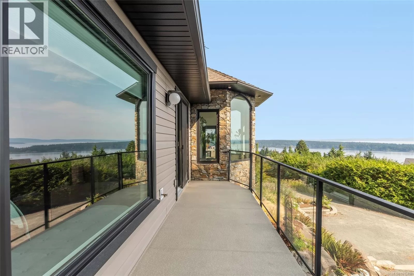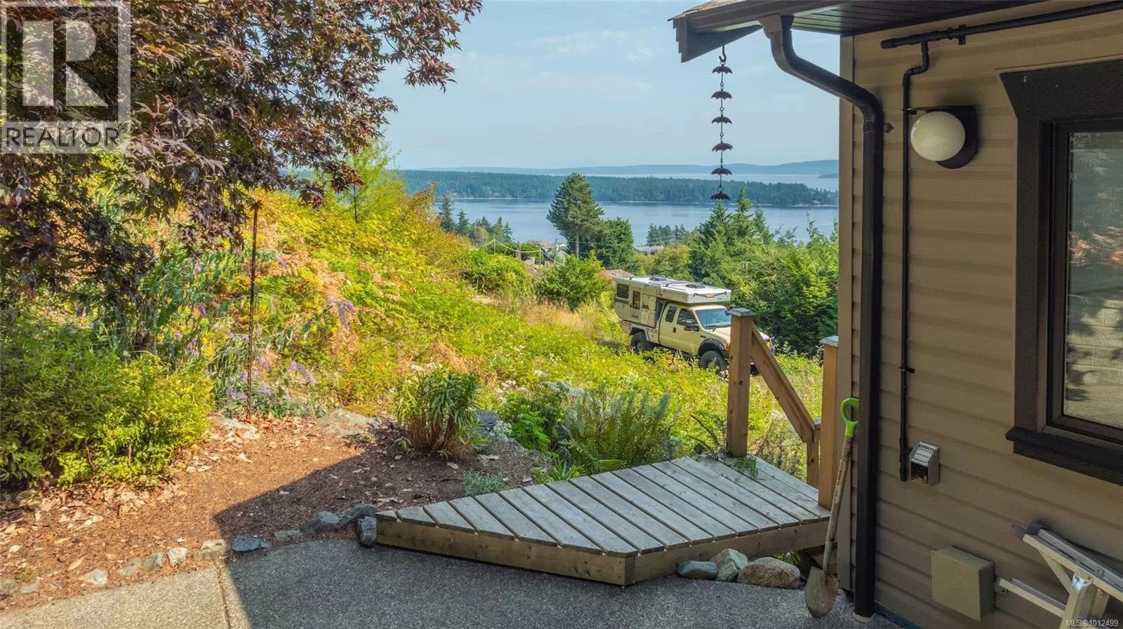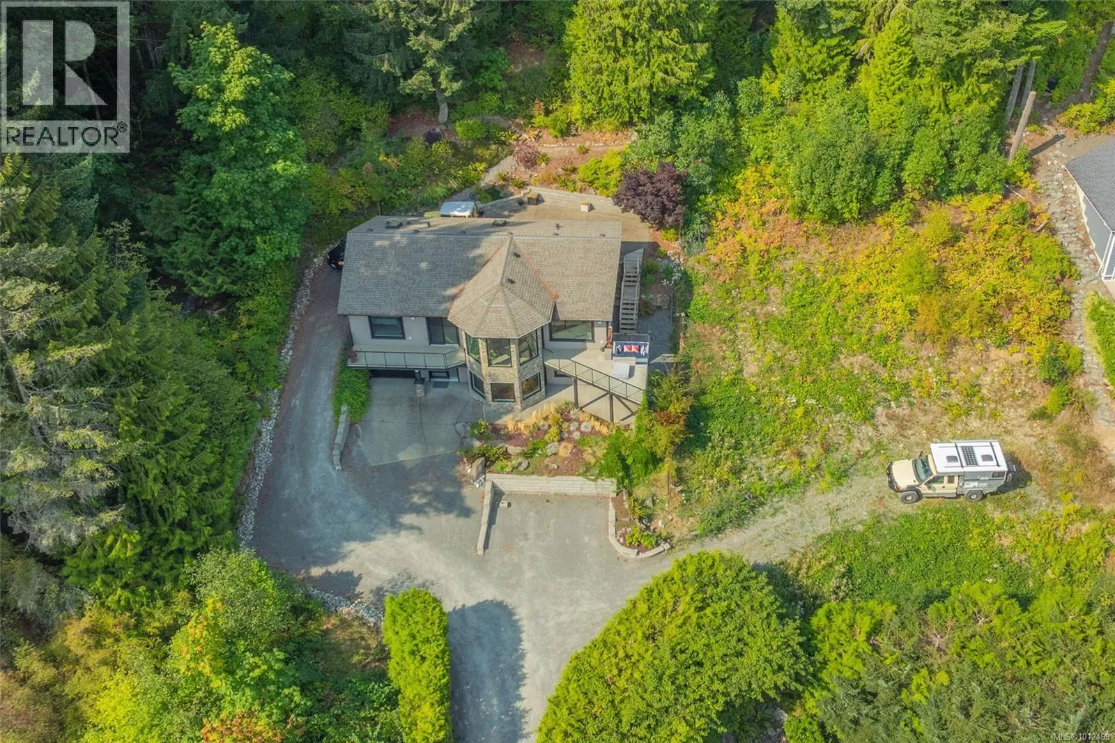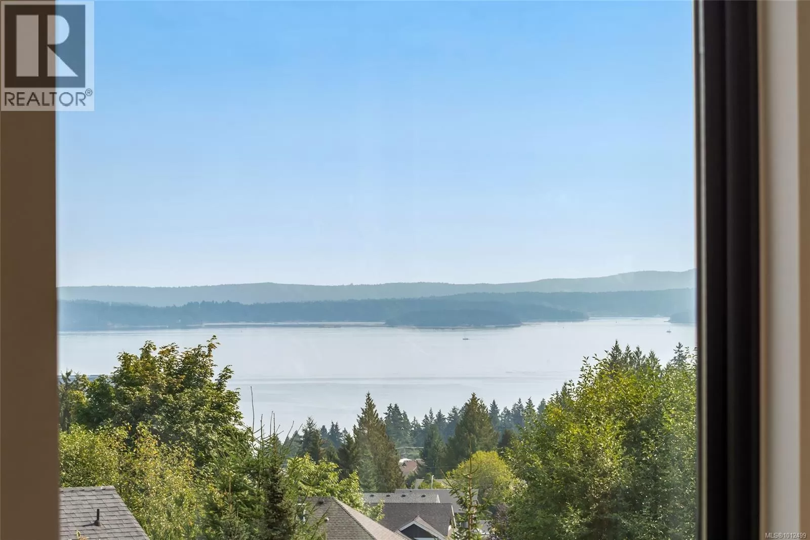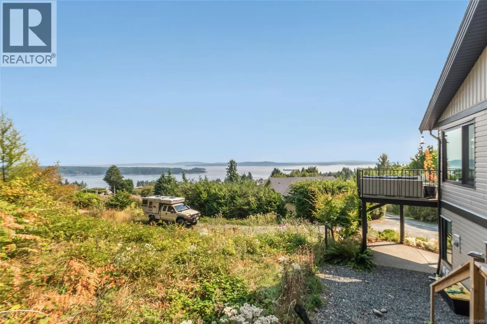 Sitting high above the town of Ladysmith, this beautifully refinished home with suite enjoys spectacular ocean views in an oasis-like setting. The 2 bed plus den, 2 bath main floor takes in the breathtaking vistas with an open concept layout and full wall of windows. The kitchen has jaw-dropping features with Italian marble and brass tile, Vicostone countertops, top of the line appliances and a massive entertainer's island. Both bathrooms are tiled in beautiful terrazzo, with spa-like soaker tub in the primary ensuite. Modern efficiency is prioritized with thick 3-mil windows, heat pump, and hot water on demand. The lower 1-bed suite is open and airy, with vehicle access to both the lower and upper floors allowing for level-entry living. The property is accessed by a private shared driveway winding up through the trees. The undeveloped neighboring property is separately available for purchase, offering an unmatched opportunity to create a stunning acre estate only minutes to the marina, golf and amenities. All data and measurements are approximate, please verify. (id:27476)