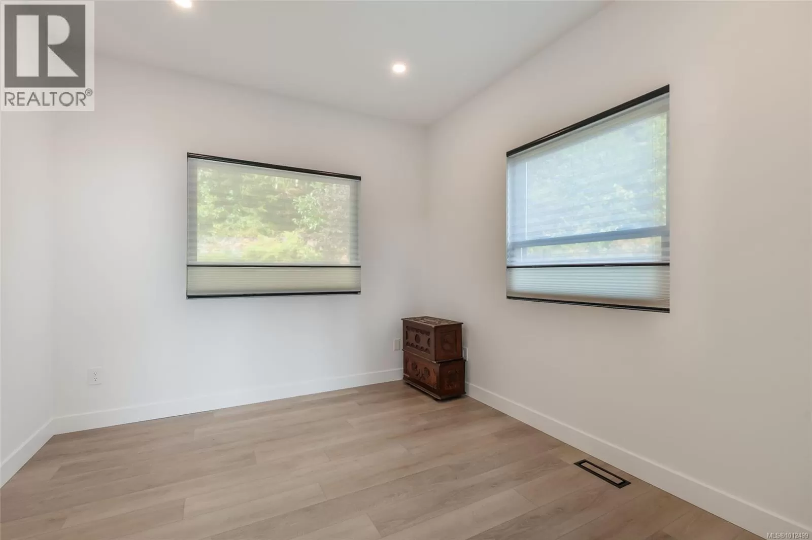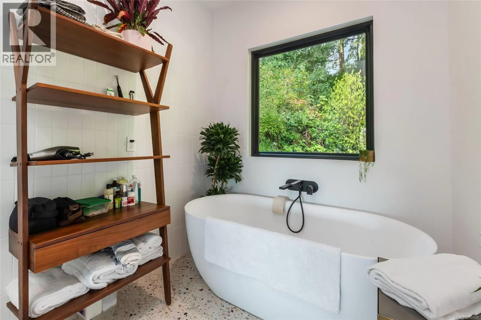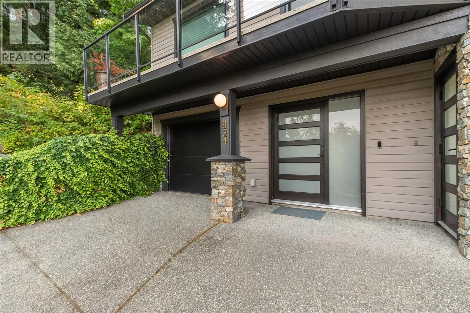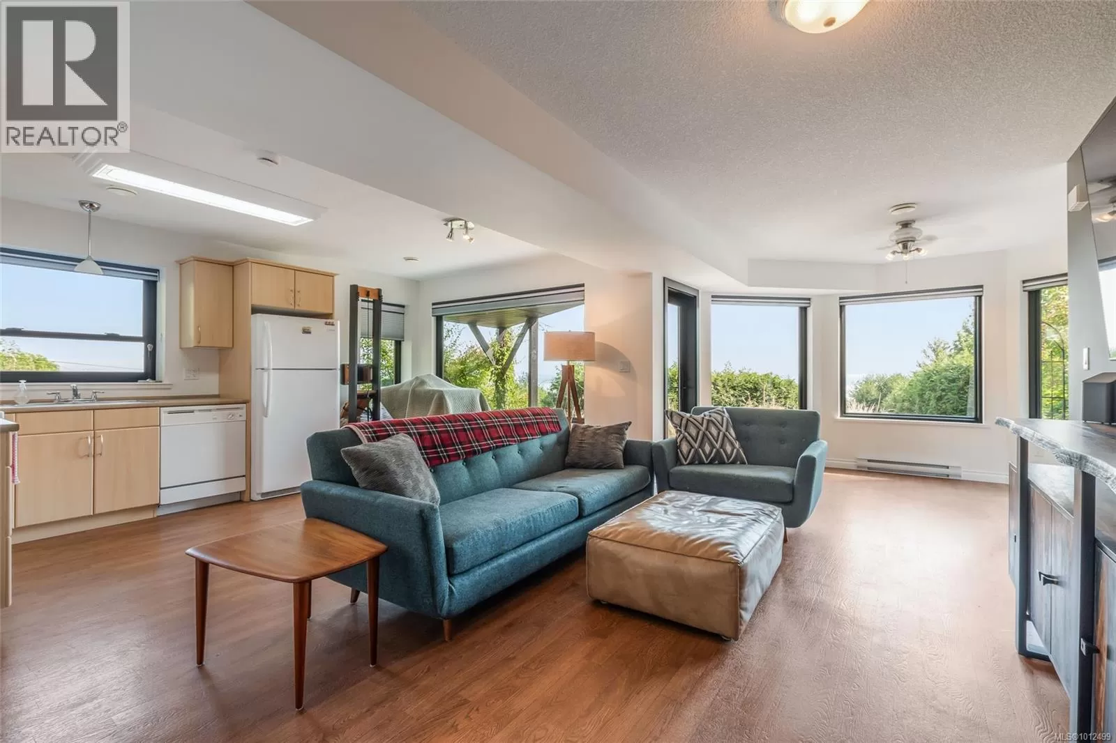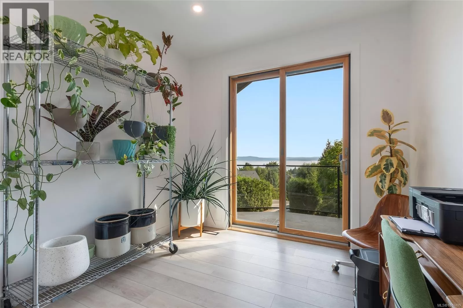 Sitting high above the town of Ladysmith, this beautifully refinished home with suite enjoys spectacular ocean views in an oasis-like setting. The 2 bed plus den, 2 bath main floor takes in the breathtaking vistas with an open concept layout and full wall of windows. The kitchen has jaw-dropping features with Italian marble and brass tile, Vicostone countertops, top of the line appliances and a massive entertainer's island. Both bathrooms are tiled in beautiful terrazzo, with spa-like soaker tub in the primary ensuite. Modern efficiency is prioritized with thick 3-mil windows, heat pump, and hot water on demand. The lower 1-bed suite is open and airy, with vehicle access to both the lower and upper floors allowing for level-entry living. The property is accessed by a private shared driveway winding up through the trees. The undeveloped neighboring property is separately available for purchase, offering an unmatched opportunity to create a stunning acre estate only minutes to the marina, golf and amenities. All data and measurements are approximate, please verify. (id:27476)