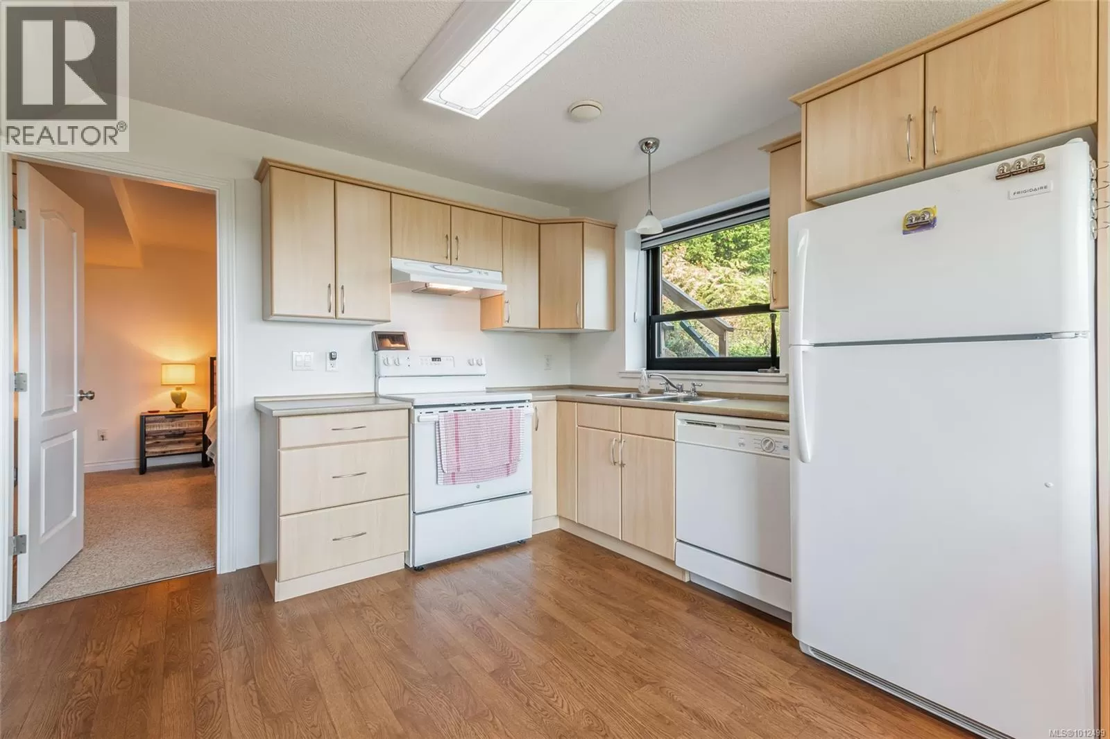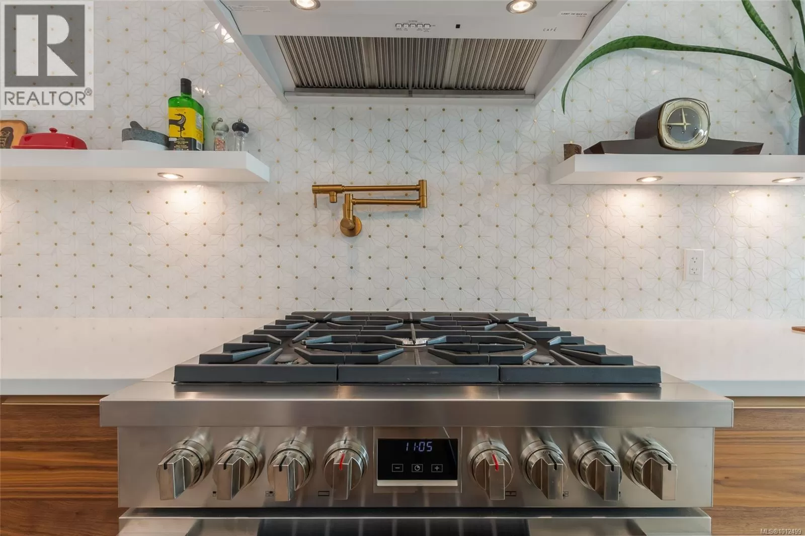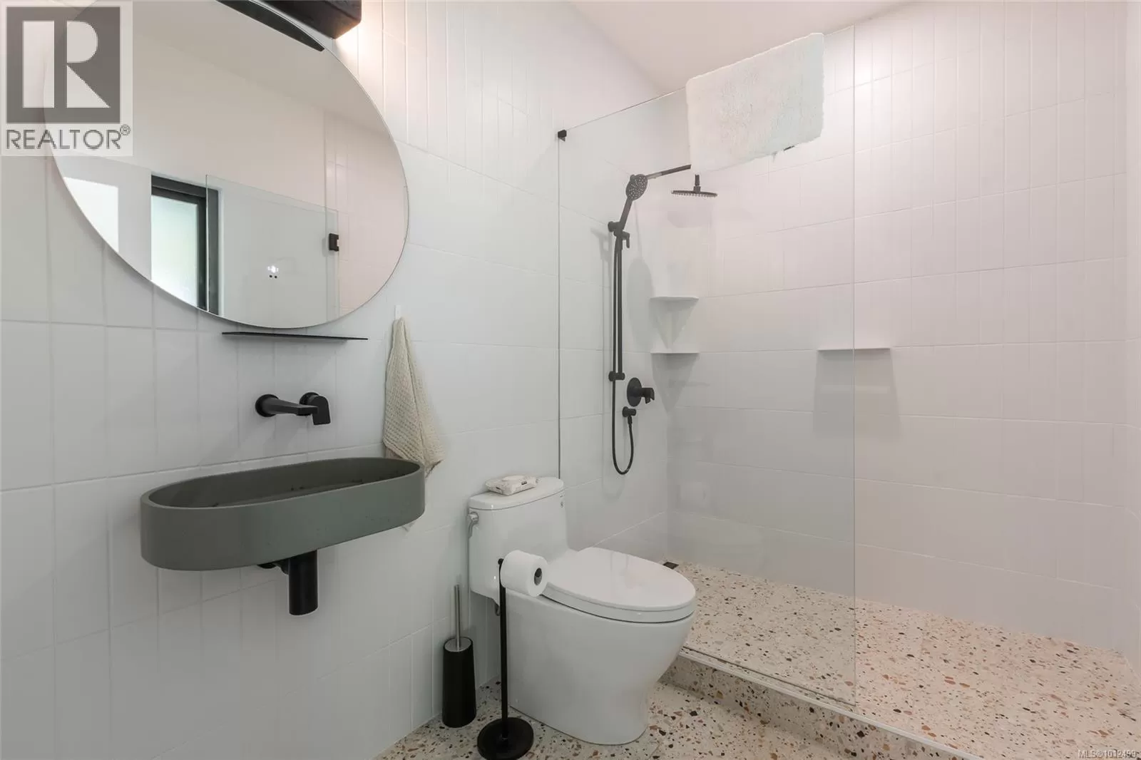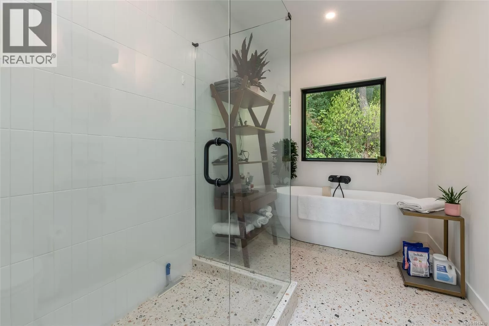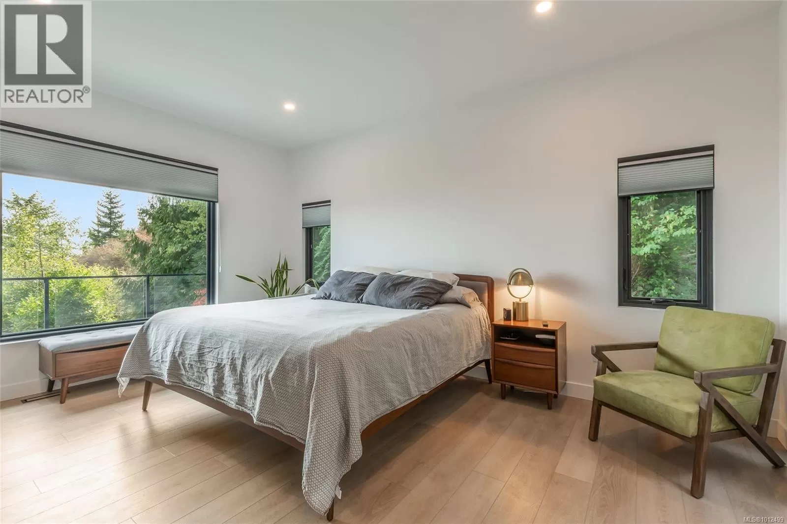 Sitting high above the town of Ladysmith, this beautifully refinished home with suite enjoys spectacular ocean views in an oasis-like setting. The 2 bed plus den, 2 bath main floor takes in the breathtaking vistas with an open concept layout and full wall of windows. The kitchen has jaw-dropping features with Italian marble and brass tile, Vicostone countertops, top of the line appliances and a massive entertainer's island. Both bathrooms are tiled in beautiful terrazzo, with spa-like soaker tub in the primary ensuite. Modern efficiency is prioritized with thick 3-mil windows, heat pump, and hot water on demand. The lower 1-bed suite is open and airy, with vehicle access to both the lower and upper floors allowing for level-entry living. The property is accessed by a private shared driveway winding up through the trees. The undeveloped neighboring property is separately available for purchase, offering an unmatched opportunity to create a stunning acre estate only minutes to the marina, golf and amenities. All data and measurements are approximate, please verify. (id:27476)