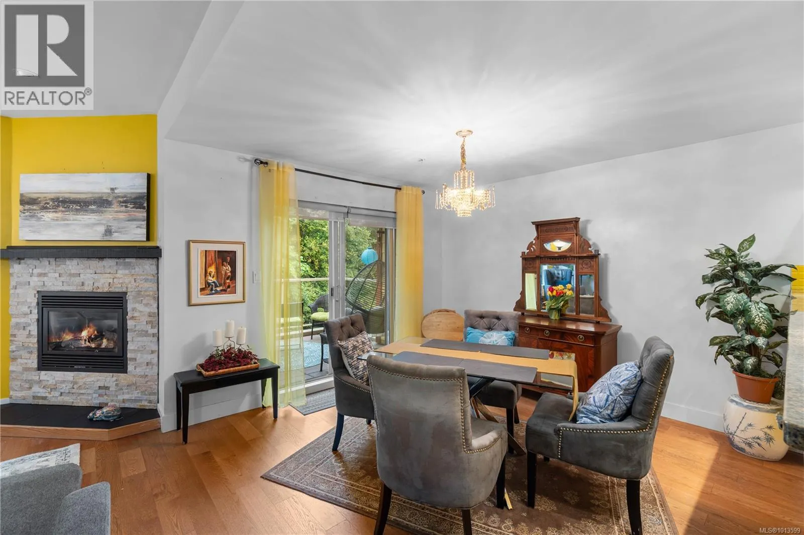 This beautiful 2 bed 2 bath townhome in north Ladysmith sits in a private and peaceful setting, surrounded by trees and backing onto Rocky Creek. 9ft ceilings and natural wood floors throughout the open concept main level create a sense of space and light. The modern kitchen is big enough for multiple cooks and includes a sit-up counter and space for a bar fridge. A gas fireplace in the living room invites you to settle in for cozy evenings in the winter, while the spacious dining room leads out to the deck for summer entertaining. The 550 sqft primary bedroom is expansive yet comfortable, with its own gas fireplace and another private deck for relaxing and listening to the creek babble by. The ensuite is huge and plumbing-ready for a luxurious soaker tub. The complex includes a fully equipped gym, indoor pool and hot tub, as well as bike/kayak storage and secure underground parking with elevator access. Enjoy tranquil West Coast living, only minutes away from shops, the marina, and Transfer Beach. All data and measurements are approximate, please verify. (id:27476)