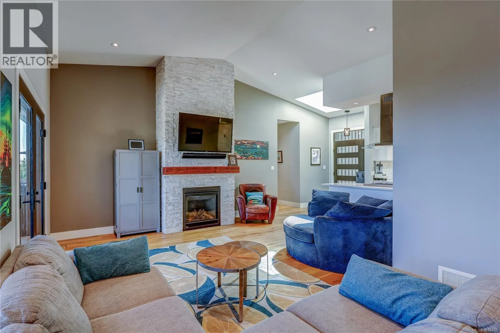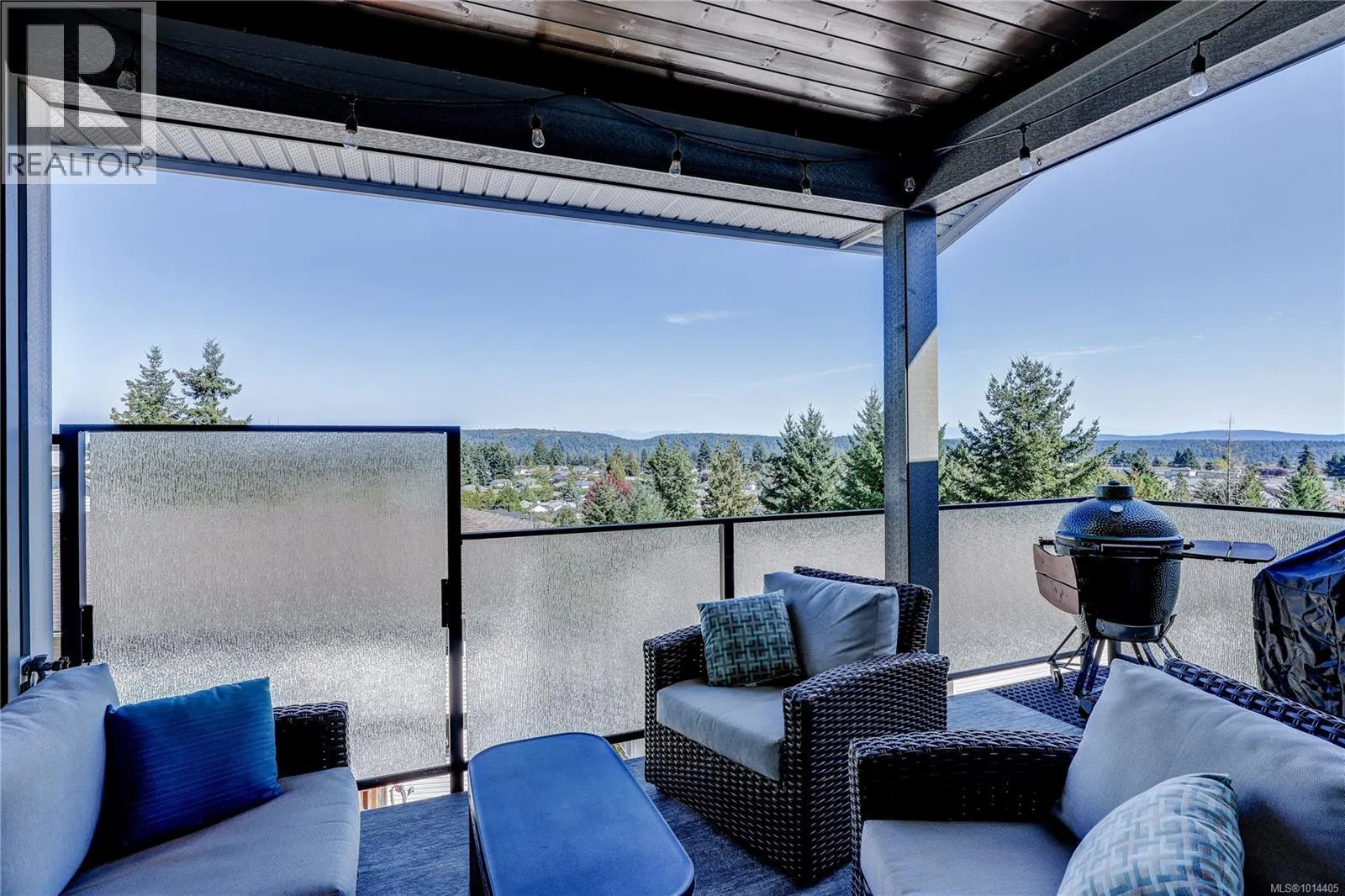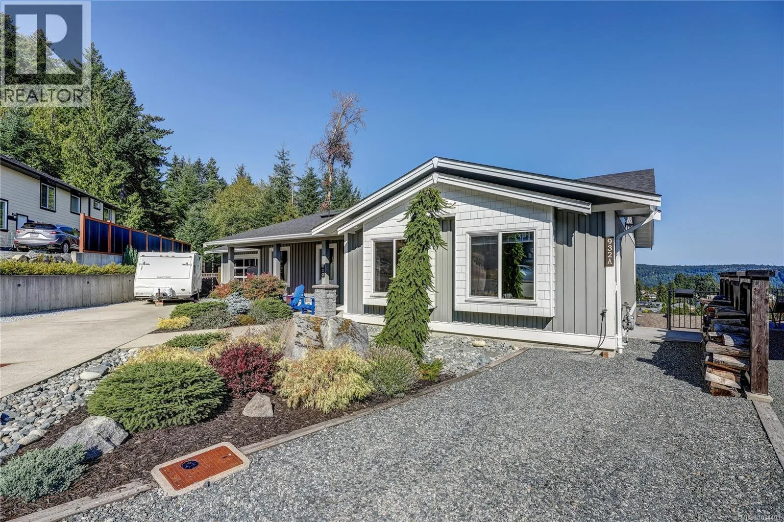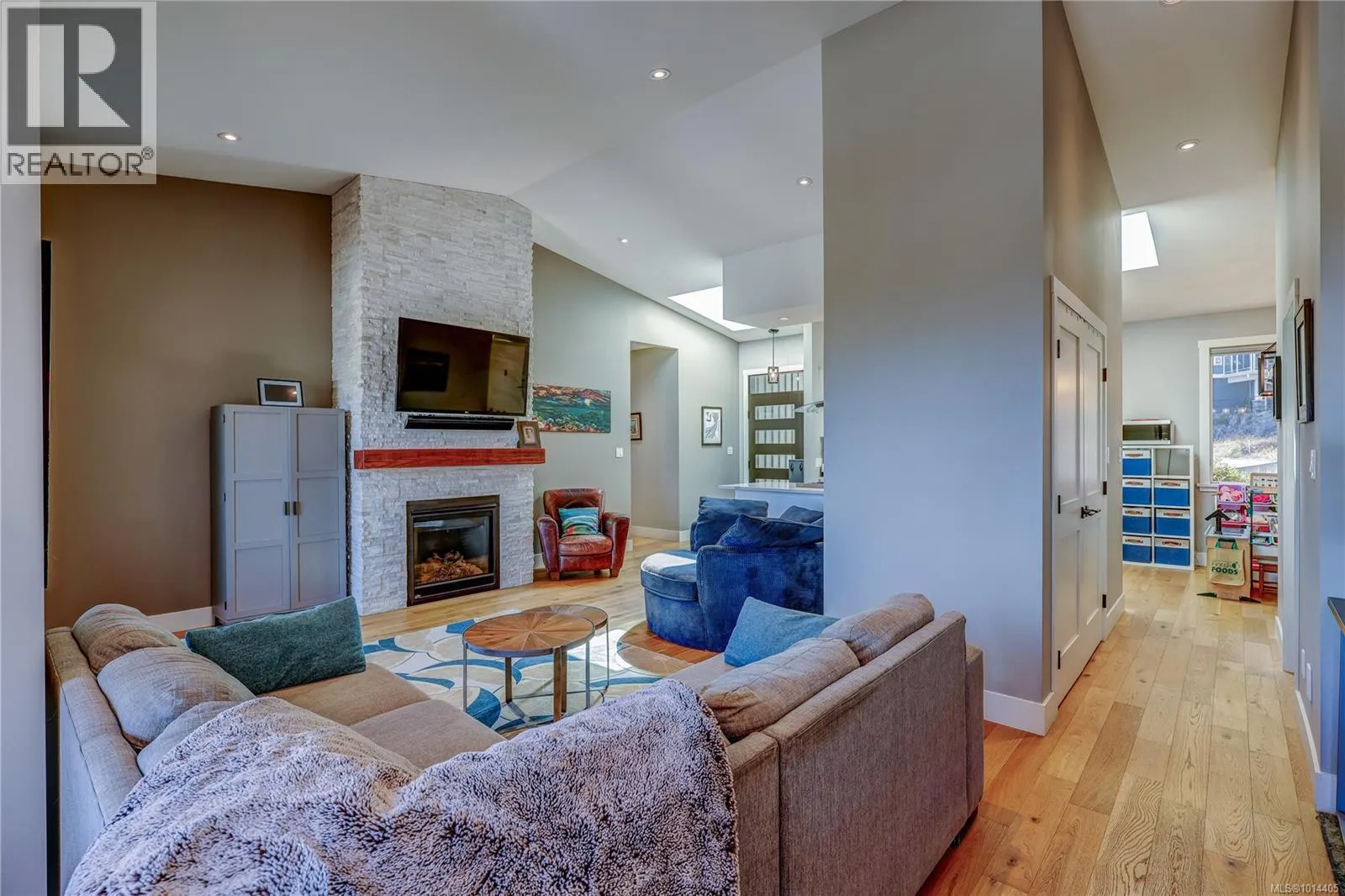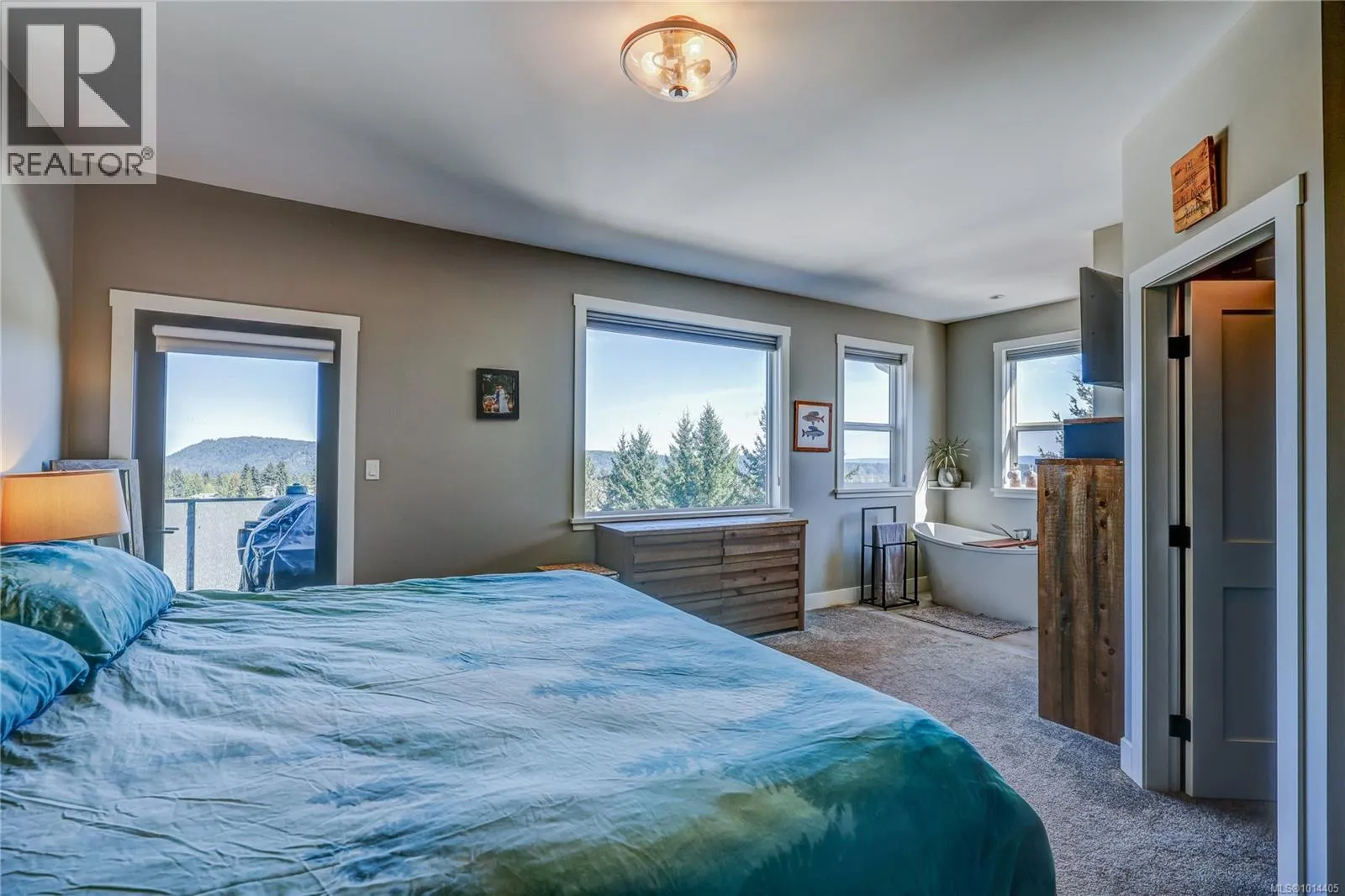 Panoramic mountain-view modern home located on a quiet cul-de-sac at the top of the hill ! This quality built home offers level entry open plan living on the main w exceptional finishing details including engineered hardwood, quartz counters & floor to ceiling stonework gas fireplace. Wood cabinetry & gas range in kitchen w ss appliances. Spacious primary w private ensuite w freestanding soaker tub & step in shower. Walkin closet. Vaulted ceilings & oversized skylights flood the space wth natural light. Covered balcony w gas hook out to BBQ year round. Downstairs is a legal light & bright move in ready 1-bed suite w 8â9â ceilings. Separate entrance, hwt, yard/deck space & hydro meter. Walkin storage down is 1084 sq ft. Main has itâs own private fenced yard backing onto treeline & includes hot tub & above ground pool. Plenty of parking including RV & 670 sq ft heated garage. Ideal location-just minutes to schooling, shopping & trails. Too many features to list - this home is a must-see! (id:27476)